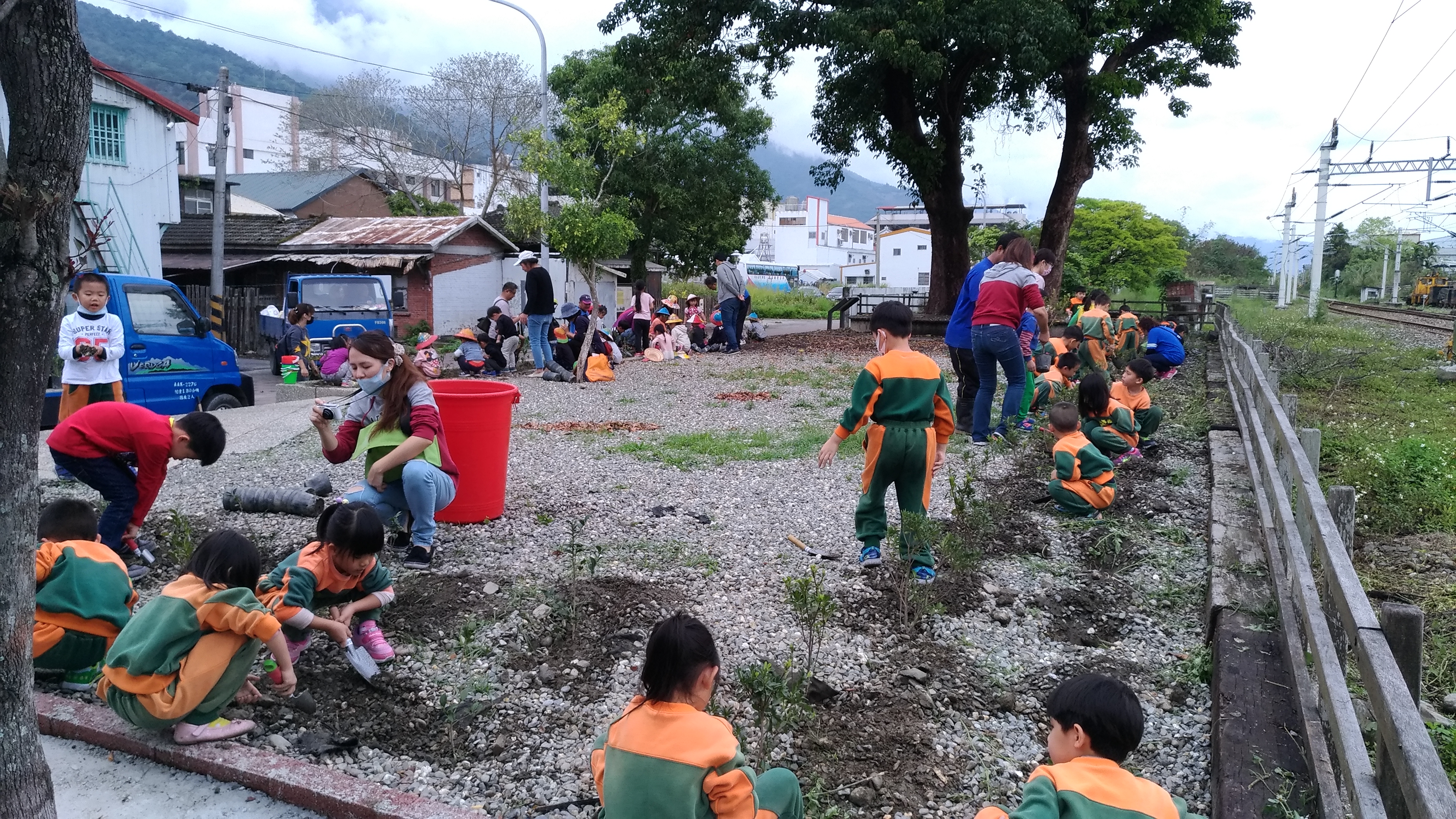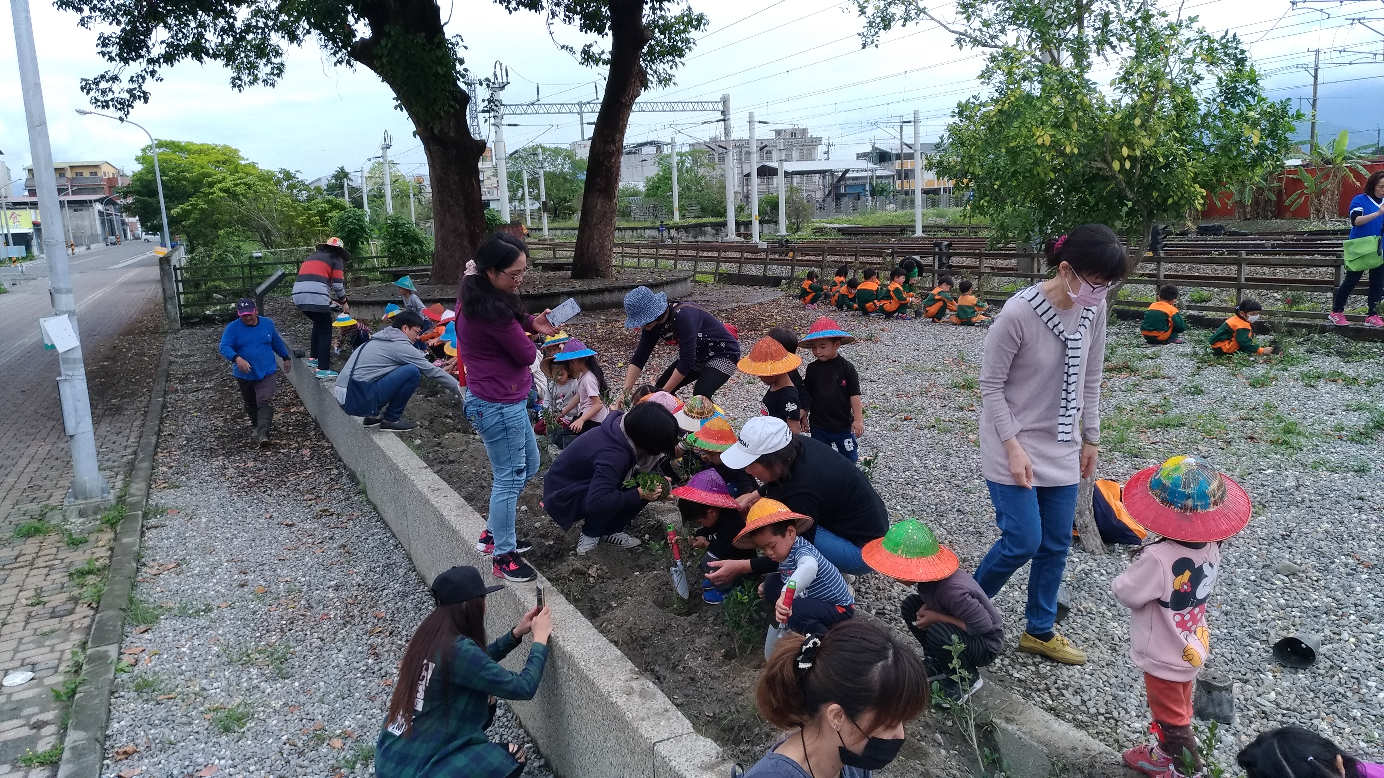 每年的3月為植樹月,林務局關山工作站、關山鎮公所於3月16日共同辦理植樹活動,上午10時與鎮內二所幼兒園約100位小朋友一起在關山舊火車站旁空地植樹,在老茄苳樹的周圍種下茶梅和杜鵑,希望明年開出鮮艷的花朵,與老建築、老樹相互輝映下,營造出關山舊火車站優美環境。 關山舊火車站是在民國25年落成啟用,為東部鐵路幹線僅存的日治時代歐風建築,舊火車站外觀造型獨特,吸引許多鐵道迷、遊客或拍結婚照的新人專程前來取景,更是昔日關山對外交通的樞紐。為配合舊火車站景觀環境,關山工作站特別選擇杜鵑及茶梅二種開花植物辦理植樹活動,這二種植物的都屬於常綠灌木並兼具可以觀賞審美的花卉植物,不只花色多樣而且花期長,生命力強容易照顧。植樹現場有一株老茄苳樹,臨近也有幾株,不適合再種植喬木類植物,為使周邊景觀更添新麗,才會選擇能開出鮮艷花朵的灌木來種植。 今天舊站的綠美化還有傳承的意義,特邀請關山鎮立幼兒園和鴻德幼兒園近百位小朋友參與,種下約200株的樹苗,國家未來的主人翁在老樹、老建築旁親自種下苗木,新苗木在老樹的庇蔭下長大開花,讓林務局植樹、護樹觀念深植小朋友心中,期盼所有的幼苗快快長大,為我們居住的環境供獻一份心力。