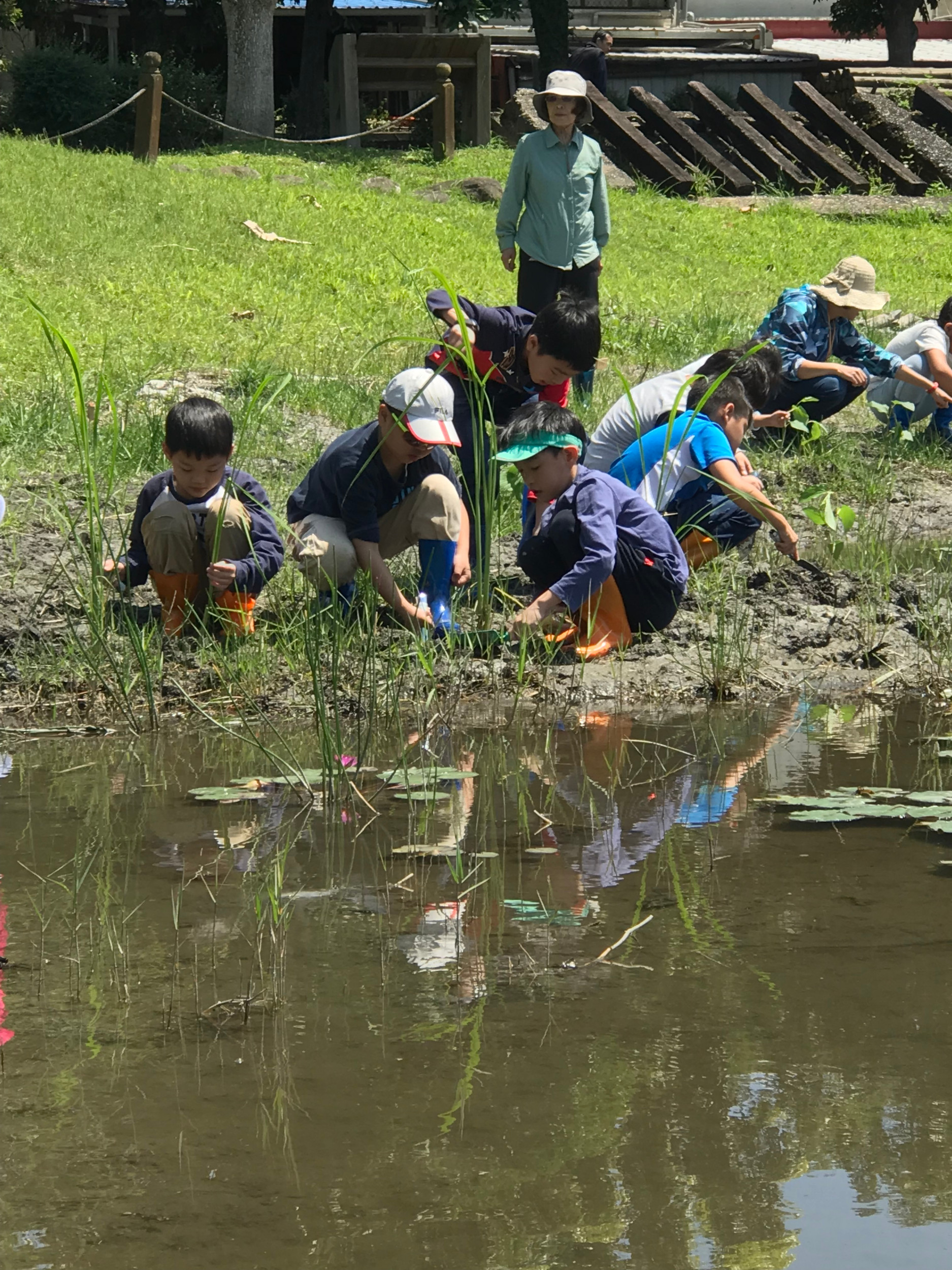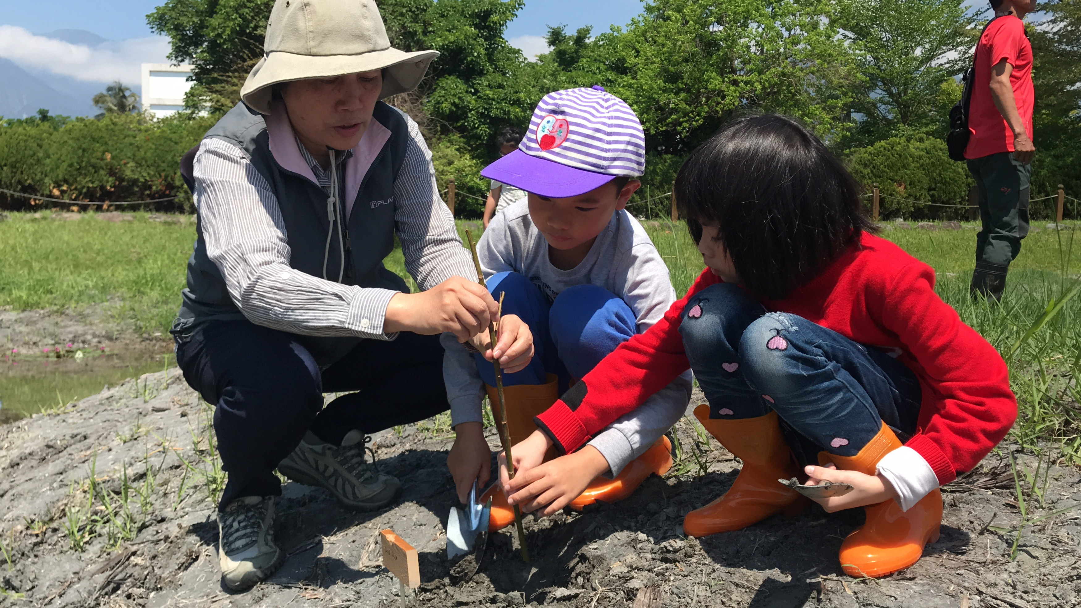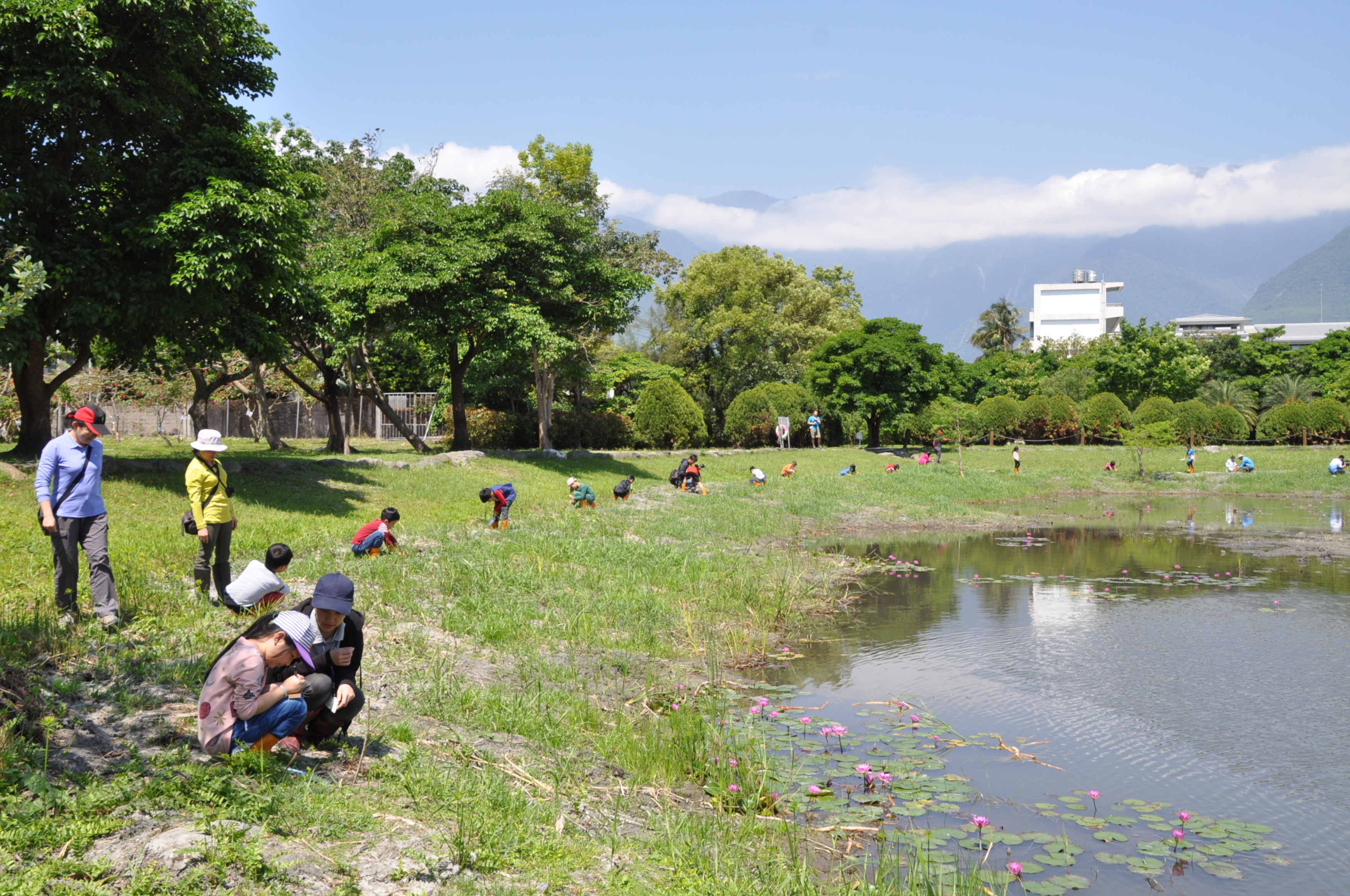 田埔生態池是花蓮市最大的濕地,更是眾多水鳥完美的生育棲地,為了讓園區內整體景觀更為細緻多元,一早由花蓮林區管理處秘書黃碧雲帶領花蓮林管處同仁、國家森林志工、忠孝國小二年級全體師生約90人進行生態池「水生植物栽植」活動,栽植水柳、大安水蓑衣、台灣萍蓬草、大葉田香、圓葉節節菜等多種台灣原生種水生植物。 活動一開始由荒野保護協會花蓮分會馬太鞍濕地教育中心吳永斌講師及彭瑞秀講師帶領小朋友認識各種水生植物的特性,接著由忠孝國小二年級小朋友每人親手扦插1株水柳枝條並在旁邊豎立名牌,最後用水生植物荸薺的莖編織頭環及手環。活動在講師們生動有趣的帶領之下,不只是小朋友、現場的老師及志工們都歡笑不斷,許多小朋友說,雖然忠孝國小就在旁邊,但是今天卻是第一次進來,原來是這麼舒服又好玩的園區,以後要常常帶爸爸媽媽來看自己種的樹! 田埔生態池由花蓮林區管理處於91年將貯木池營造為景觀濕地,併於池內栽植多種水生植物,形成自然豐富的生態棲地。但是因生態池水深逾1.5公尺,單以人力無法清理淤泥及有效管理水生植物,致池底淤泥逐年堆積,強勢水生植物如睡蓮、荸薺及開卡蘆大量生長覆蓋池面,進而使生態池濕地逐漸陸域化。 花蓮林管處表示,為了有效營造田埔生態池濕地型棲地,於106年度便開始規劃田埔生態池分區整建事宜,利用池底淤泥建置土堤、將池岸建置成緩坡、將池底整平並調低水位高度,希望改善過去管理遭遇的困境,讓作業人員能夠安全地進入生態池工作,而生態池沿岸原種植垂柳,考量垂柳為外來種且生長形質不良,現多已枯朽,為了持續改善田埔生態池棲地,於沿岸以間距5公尺栽植光葉水柳、水社柳、托葉水柳等台灣原生種水柳,利用水柳的棉花鬚根固定邊坡並逐漸淘汰固有垂柳,並規劃生態池內分區栽植不同花期的水生植物,如野薑花為花期5~11月,開白色花朵;大安水蓑衣花期9~2月,開紫色花朵;圓葉節節菜花期10~4月,花紫紅色;台灣萍蓬草花為鮮黃色,幾乎全年有花,呼應今年度植樹月主題「再現台灣原生綠」的同時,也希望營造出符合生態更能維持優美景觀的環境。