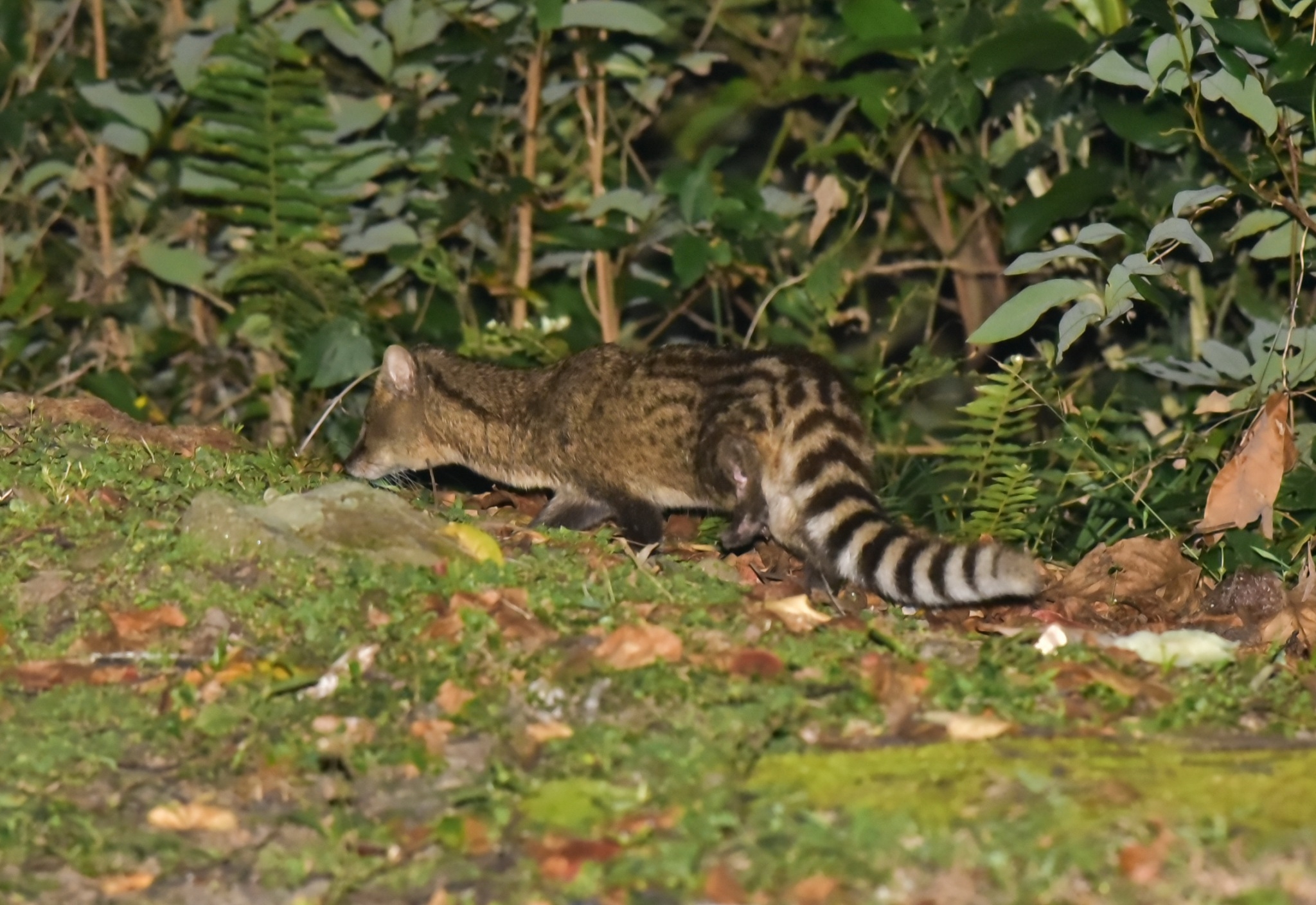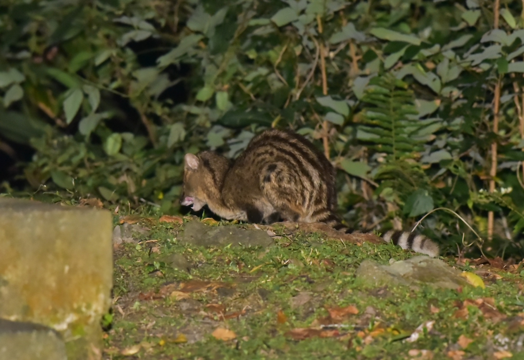 位於屏東縣獅子鄉的雙流國家森林遊樂區,為107年的遊樂區一系列的生態觀察活動進行了生物資源盤點,就在春初這個季節用肉眼及相機捕捉到夜行性動物麝香貓的蹤影,原來阿~園區的麝香貓那麼多,比起其它分布地區更容易觀察的到,在園區陽光草皮到森林教室300公尺不到的距離內就看到3隻不同的個體的麝香貓,還讓我們拍了幾張上相的照片後才離開,像貓一樣長長的尾巴,漂亮的毛色紋路,是雙流夜間最美麗的動物。 麝香貓是哺乳類靈貓科的動物,具有麝香腺體所以稱麝香貓,但和貓是不同類的生物,在分類上更接近白鼻心這種生物。雙流森林遊樂區屬於日間型的遊樂區,白天時開放遊客來步道踏青,吸收負離子、芬多精,欣賞溪流、魚、蝦、鳥類等豐富的生物資源,到了夜晚園區休園的時間就換成夜行性的動物的舞台了,由於園區夜間未開放,生物白天易受到驚嚇,到了夜晚就像全部活了過來一樣,黃嘴角鴞、飛鼠的叫聲此起彼落,森林底下傳來唏唏唆唆的聲音,麝香貓、白鼻心、穿山甲都開始出來覓食,溪流邊青竹絲、青蛙、過山蝦都能輕易地觀察到,整個園區就像在開一個自然派對。 為了能讓遊客能有不同的體驗,遊樂區在107年將規劃一系列的生態觀察體驗活動,適合親子偕同來到雙流國家森林遊樂區,上一堂在森林裡才能學到個課,相關活動資訊可關注雙流臉書粉絲專業(https://www.facebook.com/shuangliou.forest/)。