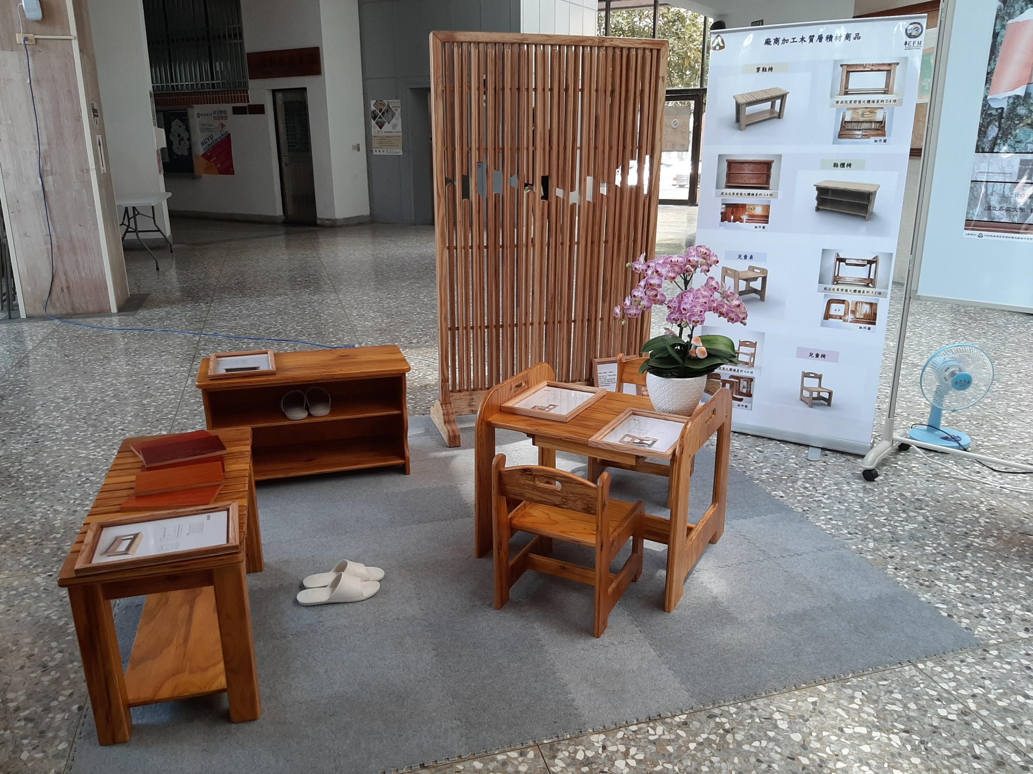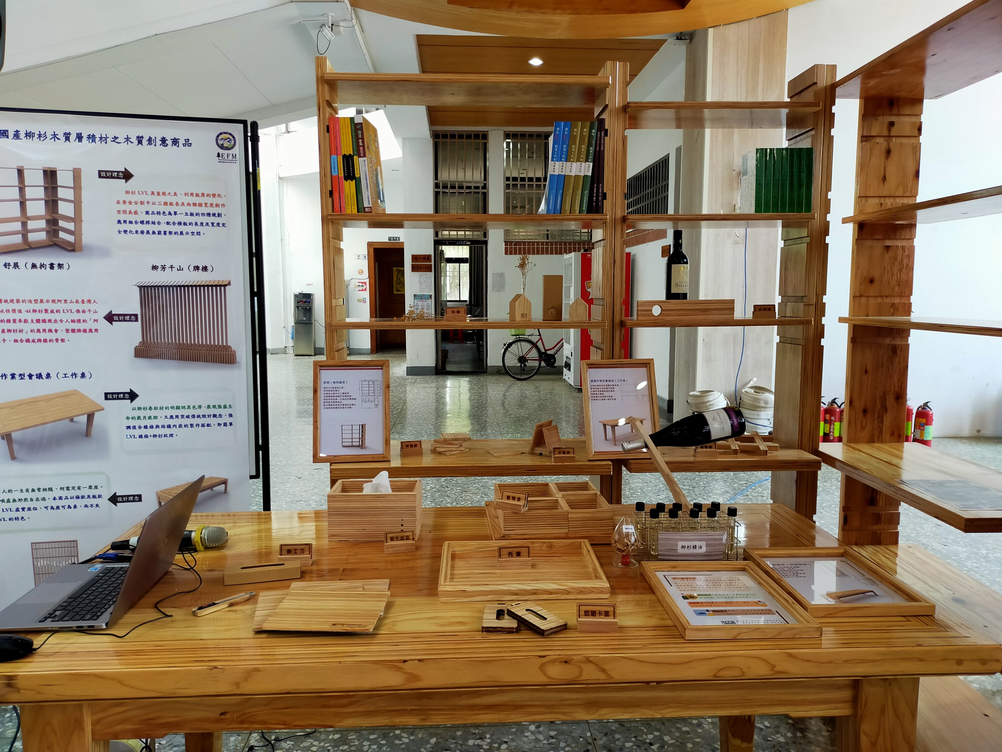 走入阿里山,印象最深的除了檜木外,就是阿里山公路沿線的人工林相-柳杉,為提高國產材自給率及讓國人能認識臺灣的木材多元利用,今(26)日上午於嘉義大學國際交流學園舉行「柳杉木質層積材創意商品推廣發表會」,由林務局嘉義林區管理處張岱處長與嘉義大學艾群校長共同主持,與會者對於有效利用柳杉中小徑木配合消費者需求,發展木質層積材(LVL)消除木材原本有節、裂等缺點,並可提高產值,均表大有商機可為。 林管處處長張岱表示,柳杉為台灣5、60年代重要的造林樹種,也是該處轄區最主要的針葉樹造林樹種,而疏伐是森林經營的方法之一,藉由疏伐作業調整林木,可使陽光穿透並避免林木彼此過度競爭,以獲取形質更好的木材,伐取之木材徑級較小,經適當處理仍可有效利用,有別以往利用原木去開發木製品,卻易受限於材積與缺點(諸如腐朽、節與裂等)的影響,造成賣相不佳,本次利用木質層積材(Laminated Veneer Lumber)依其特性應用旋切加工及層積膠合技術發展,不僅可改善木材原本的缺點且可作為樑柱結構等資材,以及型態多變的可行性,對木材加工業者商品設計與製造發展可成為國產材多元利用的重點。 本次推廣發表會是由嘉義林管處與嘉義大學木質設計系合作,開發出書架、會議桌、屏風、穿鞋椅等創意及可自行組裝產品各5組,每項產品都獨具特色,充份展現阿里山柳杉木質肌理,尤其推薦DIY產品可透由購買者自己組裝完成,除增加經濟價值外另加強產業鏈運作,結合產官學一條龍,柳杉LVL層積材可應用於家具、室內裝潢用材及結構樑柱使用,讓木材業者對國產材柳材產品生產有信心,未來將技術轉移給業界,開創國產材柳杉中小徑木利用的新契機。