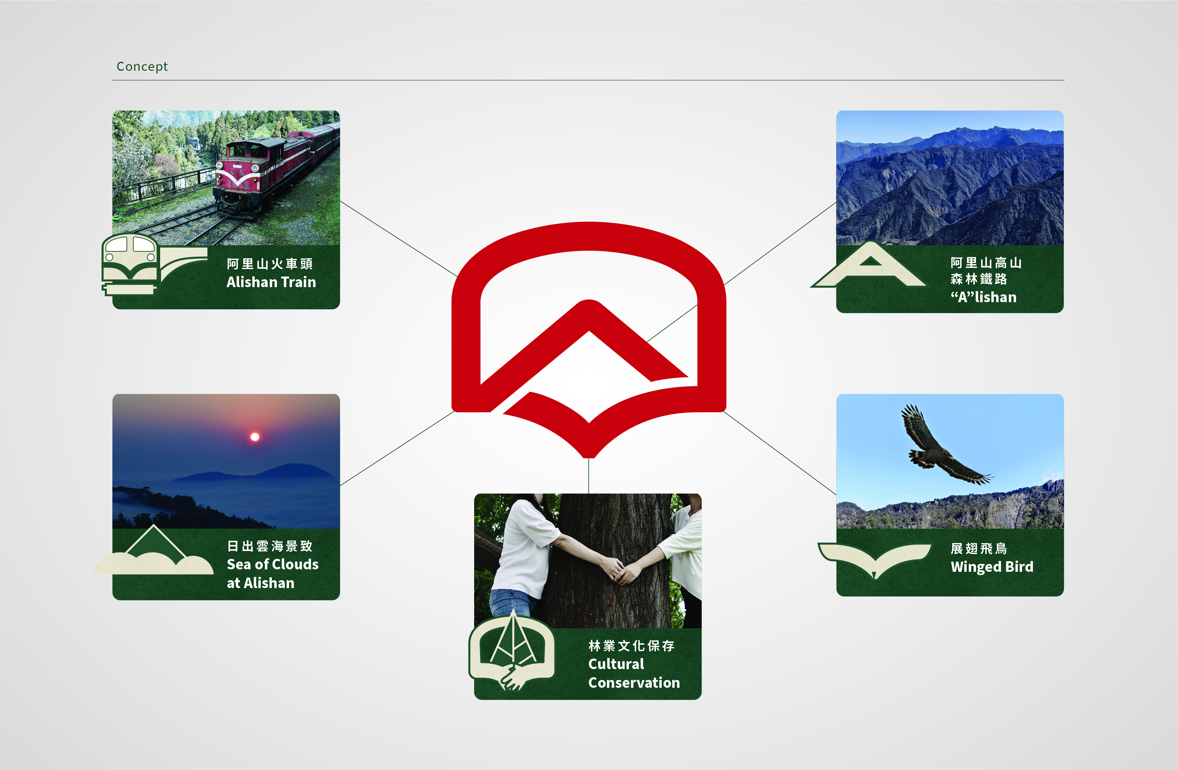 林務局阿里山林業鐵路及文化資產管理處(簡稱林鐵及文資處)成立滿3週年,於今日(9月3日)發表全新視覺識別系統與動態影片,一筆劃串起阿里山重要文化景觀,為百年林鐵老靈魂,挹注品牌新活力。 小火車窗景 展望大未來 阿里山林業暨鐵道兼具林業、觀光、文史等多元內涵,擁有豐富的有形無形文化資產,是臺灣享譽國際的百年鐵道品牌。林鐵及文資處自107年7月1日成立以來,肩負營運阿里山林鐵、文化資產保存及推動林鐵國際化等任務;為突破傳統形象,塑造文化旅運新品牌,林鐵及文資處委託專業設計團隊,耗時1年時間,量身打造林鐵專屬視覺識別系統,從盤點林鐵元素開始,以LOGO、標準字體、品牌色彩、延伸應用物與動畫,一步步打造百年林鐵品牌新形象。 速寫旅人心中的阿里山記憶 林鐵及文資處黃妙修處長表示,新LOGO以「穿梭山林歷史,細賞窗中景致風光」為概念,展現林鐵在鐵道運輸、林業文化及山林資源的三大特色。LOGO線條靈感源於隨著火車行駛而變化的窗景,所見之高山、雲海與飛鳥,吸引民眾目光。另一方面,LOGO透由經典款紅色機關車頭外型隱藏環抱高山、雲海及飛鳥之姿態,展現守護林業文化與鐵路沿線生態之決心。 鐵路安全、舒適與穩定以及文化資產的保存,向來是林鐵及文資處最重視的堅持,如何將阿里山林鐵多元元素簡約成象徵符碼,是本案設計的最大挑戰!甚至連 LOGO中的「V」形弧度,都是經過與各領域專家學者往返激盪討論,不斷調整與票選才終於底定,力求讓LOGO兼具美學、穩健又活潑的視覺感。 標準中英字體展現林鐵工藝之美 LOGO除了外形擁有諸多巧思外,標準字經過田野調查與考究擷取機關車銘板字型元素,轉化演繹其穩重筆直的特色,設計標準字體。同時,為了將林鐵推廣至國際,特別延伸設計阿里山林鐵專屬的英文字型。 中文標準字的肚圍寬、字面大,英文則以Myriad為原型微調字體,兩者搭配不僅具有視覺辨識度,更達到一致的平穩感,突顯專屬阿里山林鐵的工藝技術與性格。 彩繪阿里山林鐵的顏色 阿里山的自然山林,成就阿里山林鐵的獨一無二。在色彩系統的規劃上,以阿里山森林間最為醒目的紅色火車頭,帶出火車紅,加上高山幽靜沉穩的森林綠、山頂溫暖晨光的米白,集結出阿里山獨特元素的色彩識別,創造阿里山林鐵豐富生命力的鮮明形象,為品牌挹注多元發展的力量。 林鐵心旅行 動態短片讓您秒懂新林鐵 為呼應數位時代的需求,特別製作「林鐵心旅行」形象動畫一部,以火車帶領大家透由風景流動,穿梭過去、現在到未來;從昔日製材廠員工、蒸汽運材、撿拾鐵軌殘炭的人們、鐵路特色到沿線生態、雲海與飛鳥,藉由動態影像串聯林鐵logo元素與搭配色彩系統,讓您透過林鐵心旅行秒懂新林鐵。「林鐵心旅行」動畫連結:https://www.youtube.com/watch?v=e5X0he115C0。 LOGO多元應用 深化林鐵新定位 林鐵及文資處新LOGO今日(9月3日)發表,並同步推出45秒LOGO動畫1部,以火車、高山、林業、雲海和飛鳥等林鐵核心元素構成,讓民眾從動態影像重新認識阿里山林鐵,體驗這座國際級百年高山鐵道的獨特魅力。歡迎鎖定林鐵及文資處FB https://www.facebook.com/AlishanForestRailway.Taiwan,掌握第一手訊息。 林鐵及文資處黃妙修處長表示,隨著新LOGO的正式發表,強化全新定位的相關事務用品、旅運商品也將完整公開,包含名片、識別證票卡夾、餐具餐墊組、餅乾禮盒以及氣泡水等。刻正規劃開放品牌授權合作,期待透過聯名合作,集結各式創意,為林鐵文化旅行增色,相關授權機制可注意林鐵及文資處官網https://afrch.forest.gov.tw。