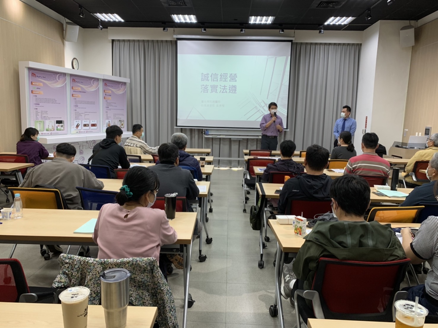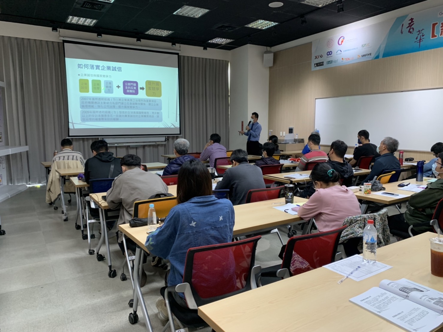 林務局新竹林區管理處4月14日(四)下午1時假國立清華大學創新育成大樓舉辦「誠信經營˙落實法遵」企業誠信座談會,邀請臺北榮民總醫院政風室彭彥程主任講授企業誠信守則與法規,分享國際視野及立法趨勢,由本處吳學平秘書率與本處具有承攬關係之廠商,以及本處承辦工程採購業務之同仁共同參與,現場反應熱烈,活動圓滿結束。 「誠信」是企業最重要的核心價值,而「法令遵循」則是企業打入市場的根本基石,因此企業應本著誠信經營,確實遵循法令,以建立良好商譽及口碑,提升競爭優勢。本次座談會計有約8家廠商參加,廠商代表、本處人員及學校職員共約50人次與會,彭主任針對國際趨勢、我國廉政情勢、政府採購法、公職人員利益衝突迴避法、公務員廉政倫理規範等面向進行分析與講解,分享我國目前研議推動企業誠信標章之情形,並與廠商代表們一同探討如何強化公司治理與落實企業誠信。課程結束後,由本處吳秘書、彭主任聯合頒發廉潔護照予與會廠商,展現並落實誠信經營的決心。 廉政工作的推動,需要民間社會力量的共同參與,本處期能透過本次企業誠信座談會,增進承攬廠商對誠信經營的關注、重視商譽並善盡社會責任,營造公、私部門共同廉潔文化,提升國家競爭力,才能共創雙贏。