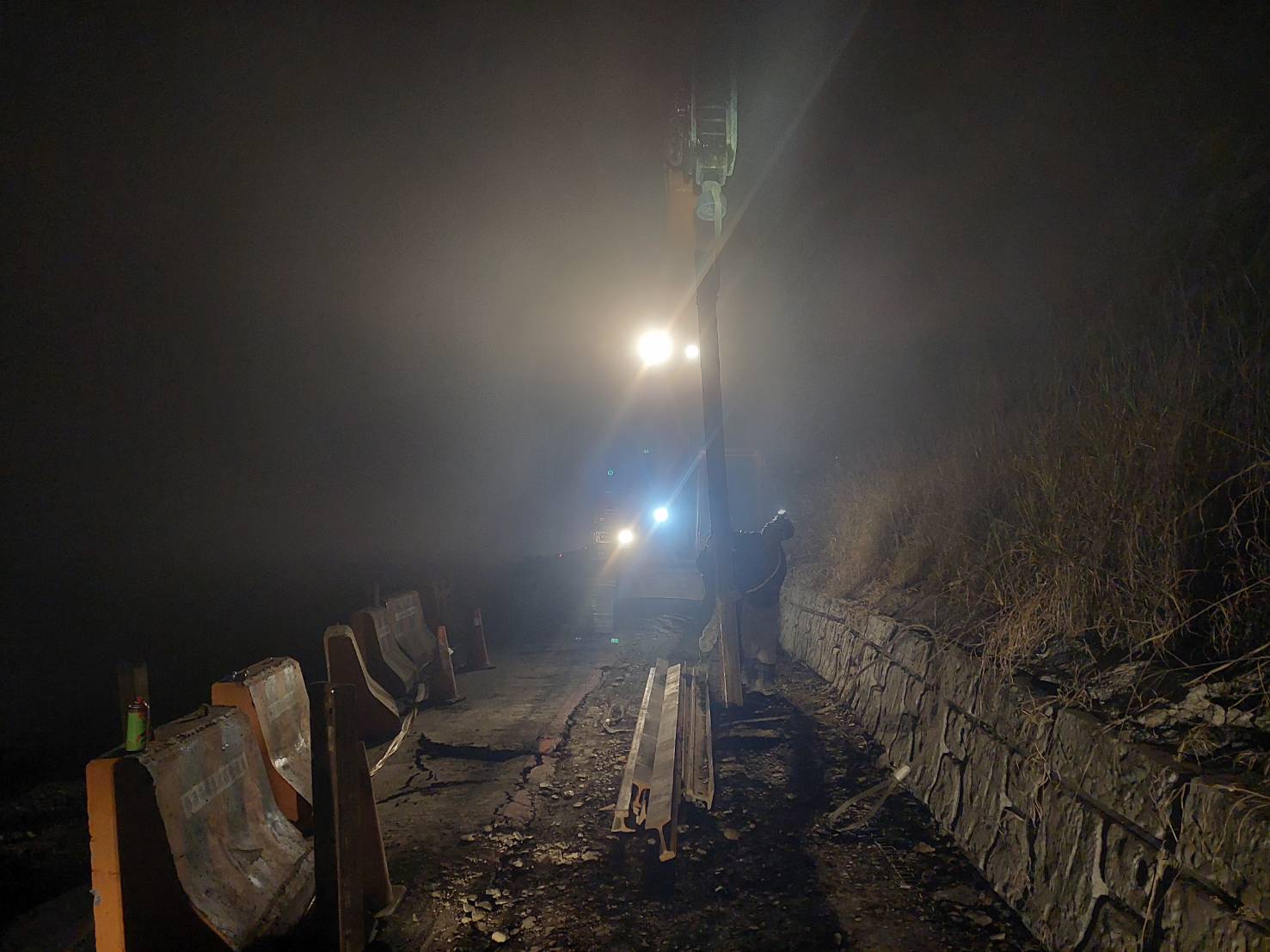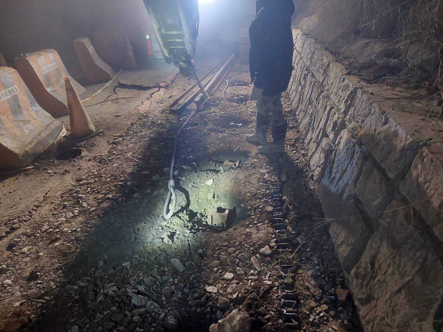 藤枝聯外道路第一期災修工程18k+440~460路段於今日傍晚疑因道路邊溝滲漏及既有地質破碎,造成路面嚴重裂縫情形,為避裂縫持續擴大,目前施工廠商已緊急調運機具材料,將漏夜完成鋼軌椿打設搶修作業,相關訊息已通知森濤派出所及當地民眾。 屏東林管處將於明日再會同監造單位現勘研商後續穩定措施,預定4月15日前完成搶修工作,因該路段為施工便道目前已管制通行,不影響遊客進出林下步道及遊樂區營運接駁作業,將於明日同步於18k及高繞路段設置告示周知。