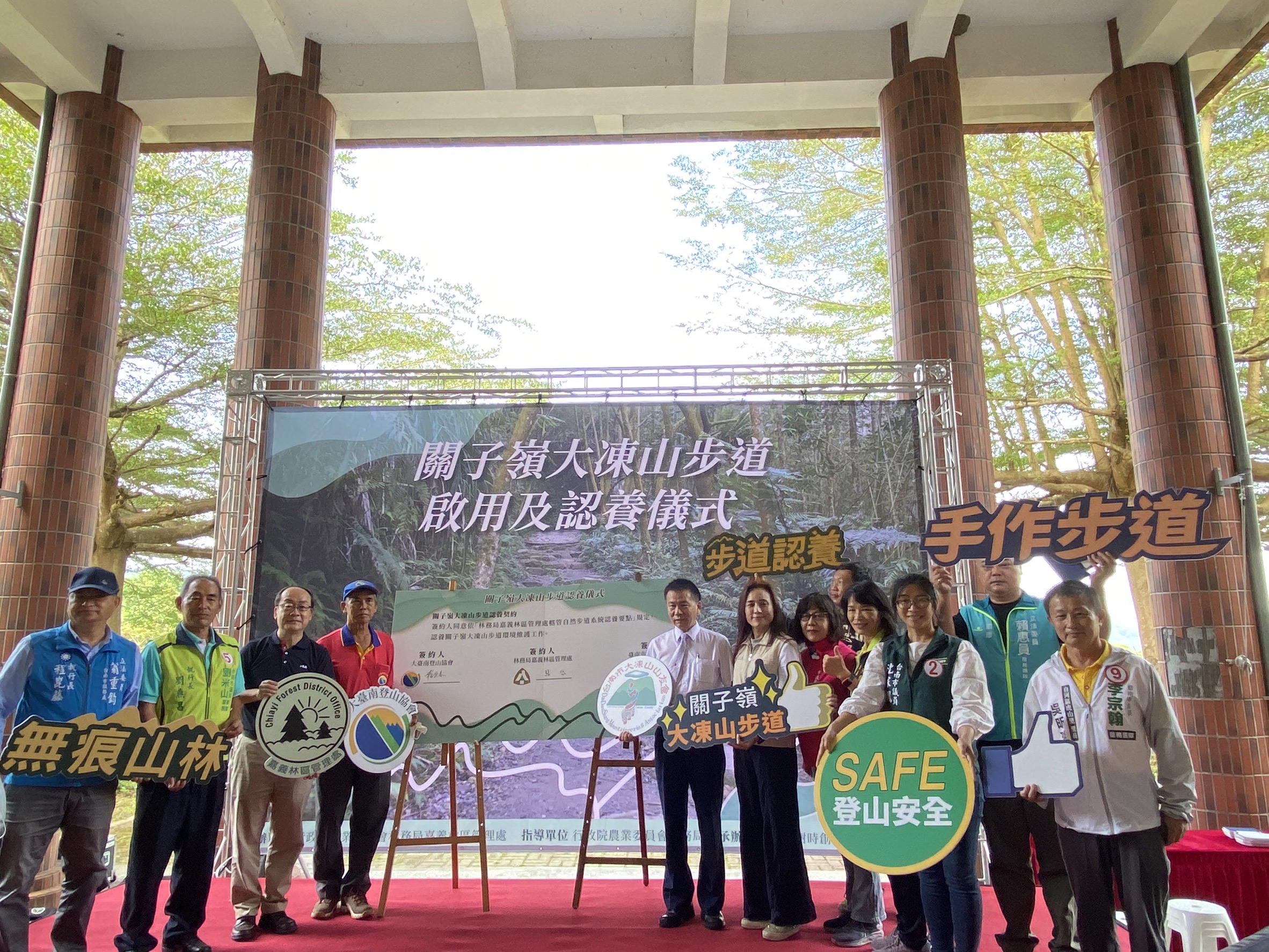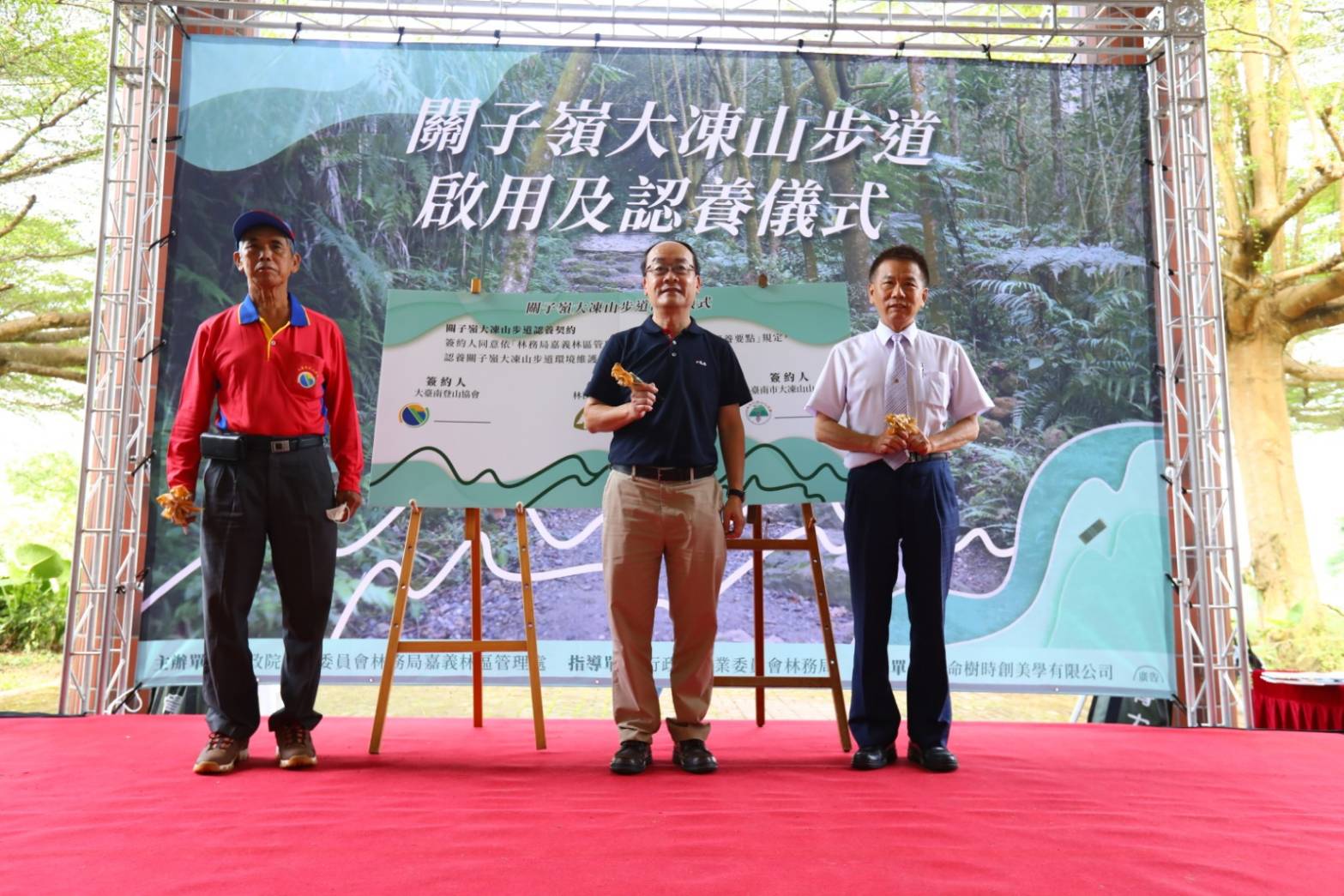 關子嶺大凍山海拔1241公尺為臺南市第一高峰,是臺灣山岳界的「小百岳」之一,陡峭的山勢讓大凍山成為山友造訪百岳前的最佳訓練基地,也因位於臺南市郊而成為人氣指數極高的登山步道。惟地勢陡峭部分路段遭雨水沖蝕,導致岩石裸露、路面不平整,整建工程在兼顧山友使用需求下,施工過程未封閉,隨時接受民眾檢驗及回饋,並以手作步道方式隨時調整,讓民眾走得更舒適安全,嘉義林管處並適時訪談山友使用心得,山友皆表示改善後步道的方便性、安全性提升很大,造福山友甚多,也肯定嘉義林管處的用心。工程甫於111年10月完工,11月7日辦理啟用儀式,臺南地區登山團體、國家森林志工及臺南市政府、地方民意代表出席參與活動,並由大臺南登山協會及臺南市大凍山山友會代表簽署認養關子嶺大凍山步道,展現公私協力共同維護步道的決心。啟用儀式後,參加人員也一同健走步道,紛紛讚許改善後的步道,兼顧山友的需求,以手作步道方式整建也讓步道更自然美麗。