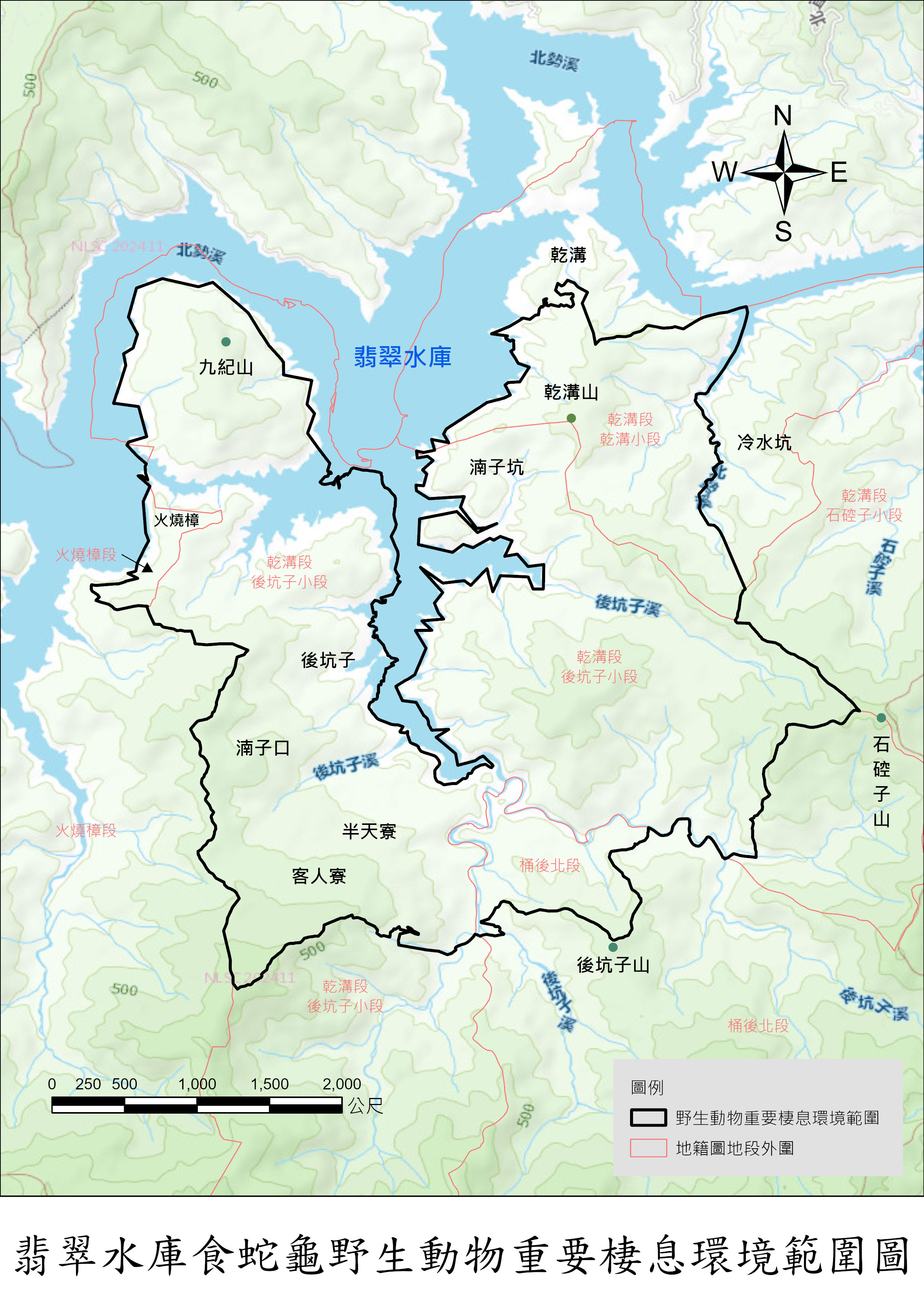 農業部 公告 發文日期:中華民國114年2月7日 發文字號:農林業字第1132402143號 主旨:修正「翡翠水庫食蛇龜野生動物重要棲息環境之類別及範圍」,並自即日生效。 依據:野生動物保育法第八條第四項。 公告事項:修正「翡翠水庫食蛇龜野生動物重要棲息環境之類別及範圍」。 部 長 陳駿季