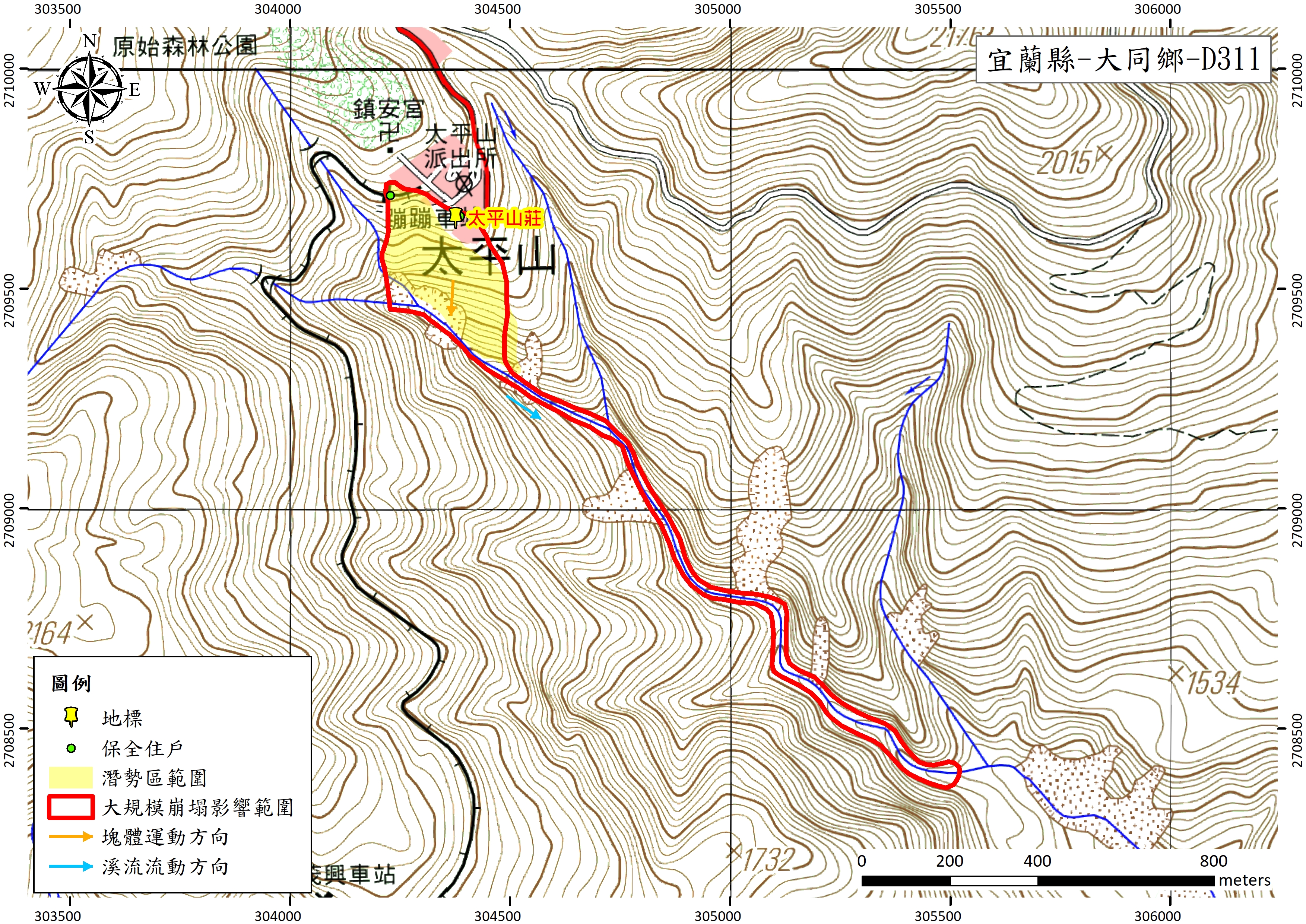 宜縣LL003(宜蘭縣-大同鄉-D311)大規模崩塌潛勢區影響範圍