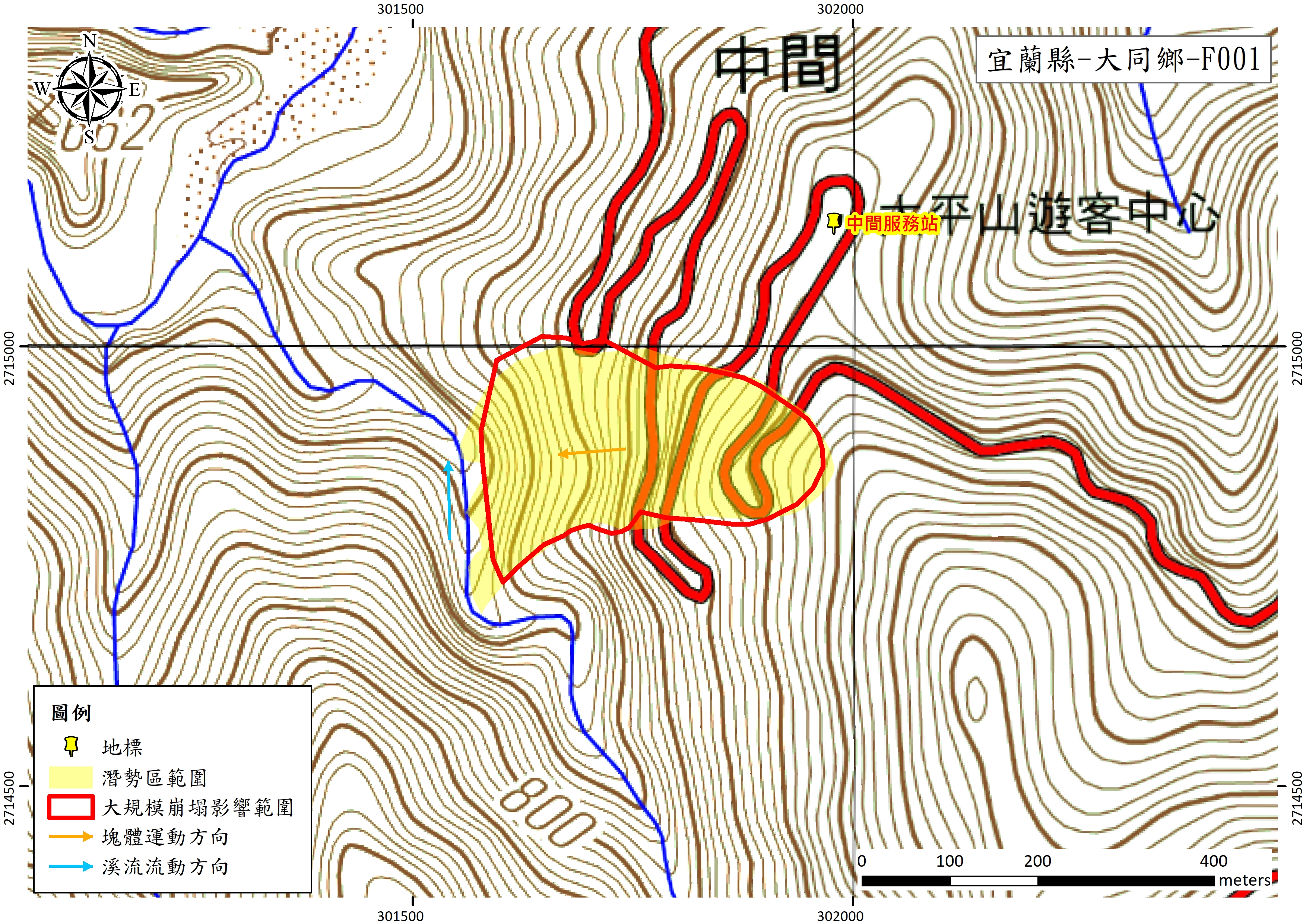 宜縣LL002(宜蘭縣-大同鄉-F001)大規模崩塌潛勢區影響範圍