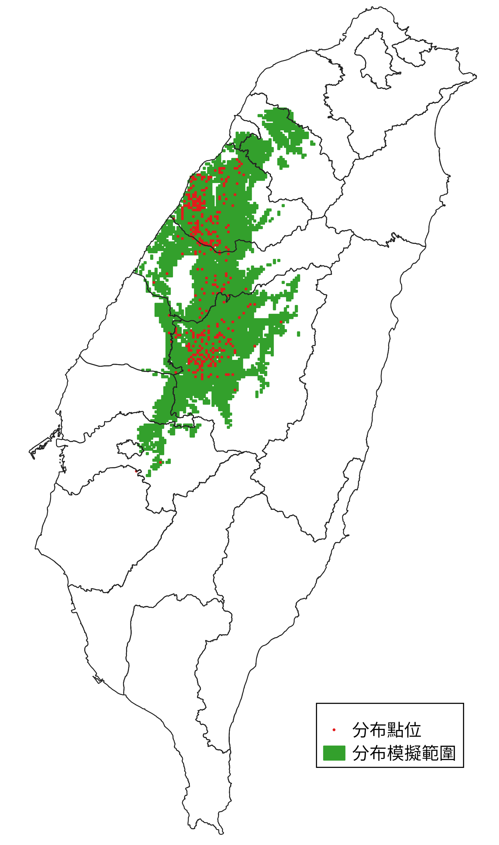 109年_石虎分布模擬圖(建議引用方式:特有生物研究保育中心。2020。109年石虎分布模擬圖。下載自:林務局自然保育網https://conservation.forest.gov.tw/0002035。(下載時間:YYYY/MM/DD))