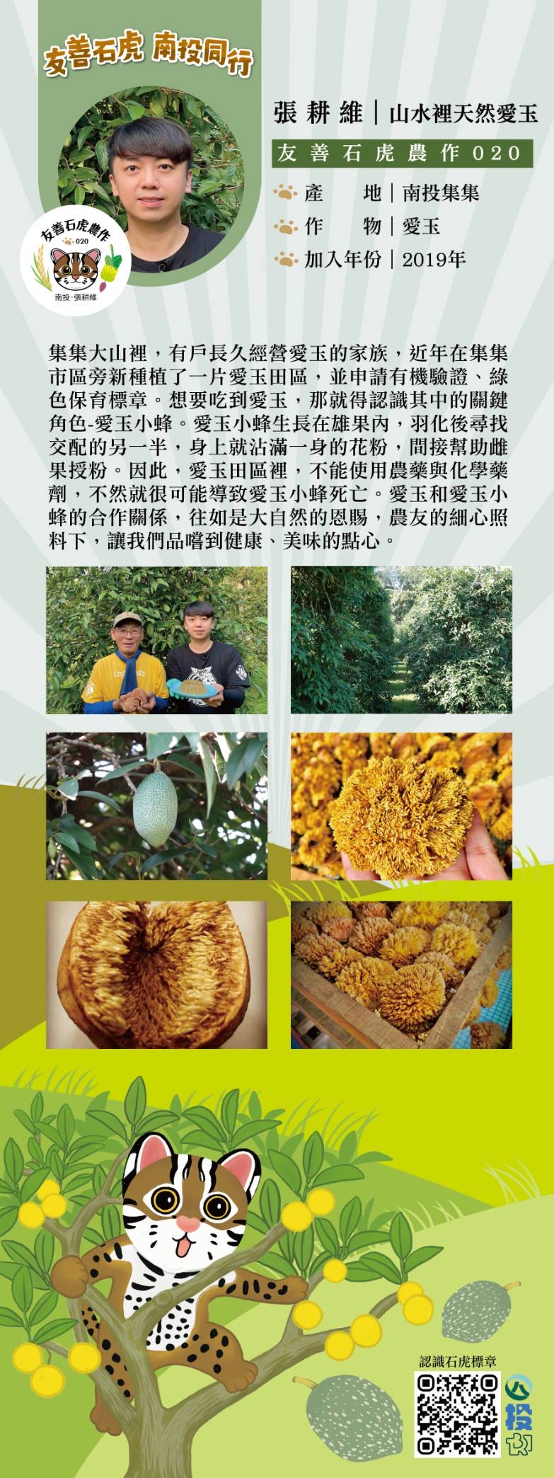 核心理念結合「文化傳承、物種保育、環境永續」,採用日本六級化產業模式,堅持不使用除草劑與化學農藥,並透過草生栽培與保留生態廊道。負責人曾獲選模範農民及社會優秀青年,致力於推動人與土地和諧共生的友善農業典範