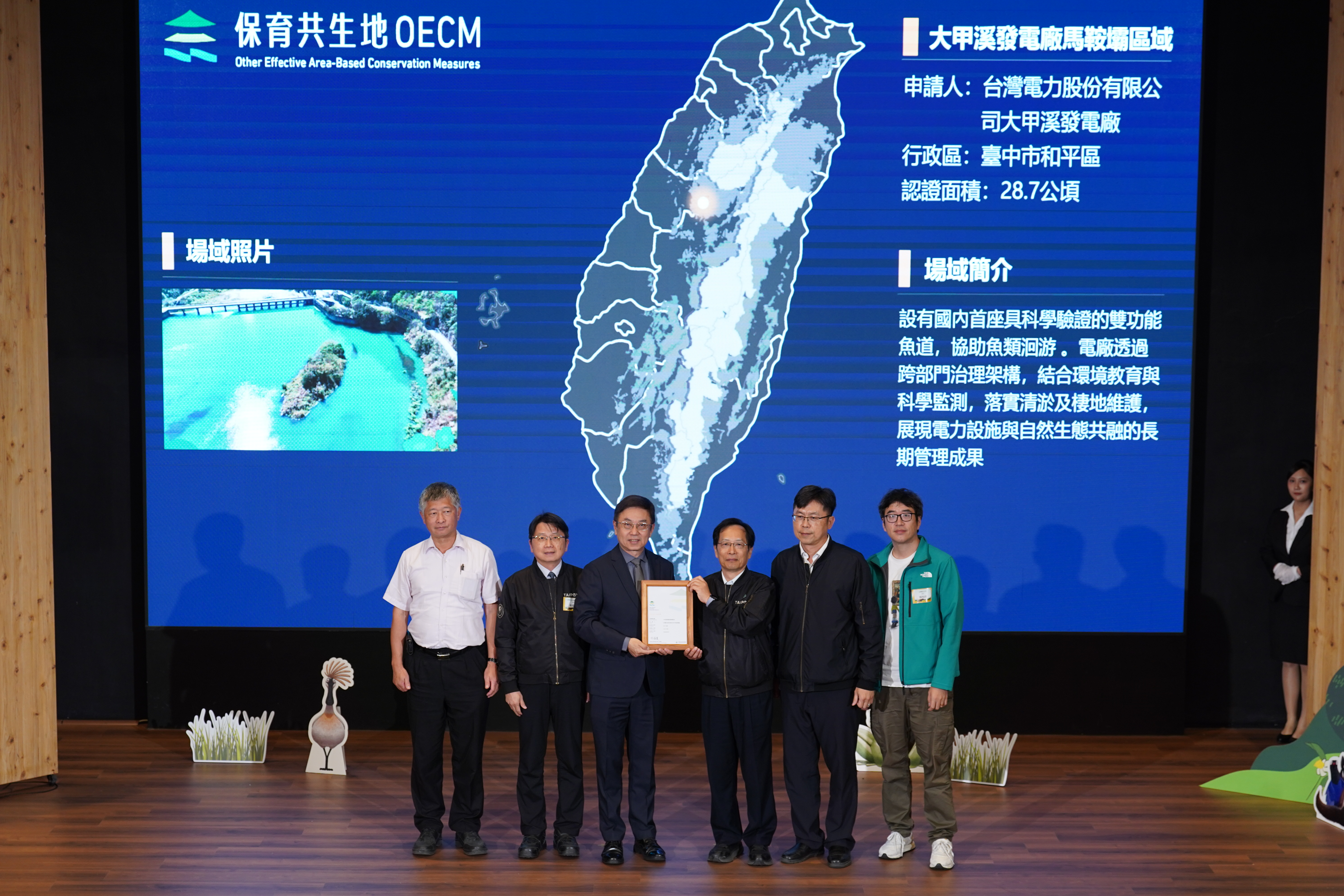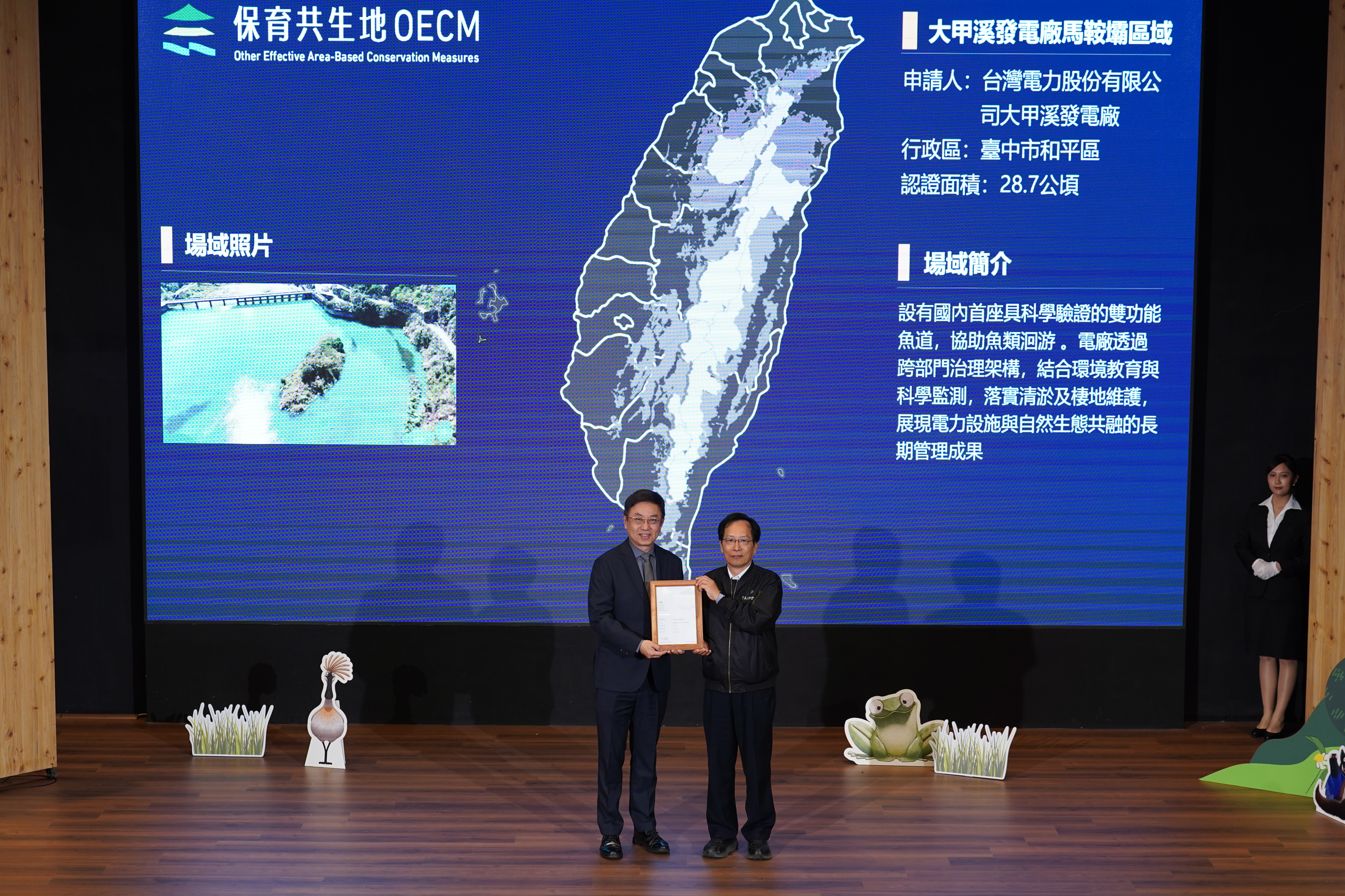 基本資料 認證分級 保育共生地 認證年度 114年 認證字號 114-1-004 申請人 台灣電力股份有限公司大甲溪發電廠 行政區 臺中市和平區 認證面積 28.7 公頃 生物多樣性價值 價值二 依賴特殊環境之物種或狹域分布物種之現存、潛在棲息及生長範圍價值三 物種生活史之關鍵棲地價值五 具生態連結或緩衝功能之區域 場域簡介 設有國內首座具科學驗證的雙功能魚道,協助魚類洄游 。電廠透過跨部門治理架構,結合環境教育與科學監測,落實清淤及棲地維護,展現電力設施與自然生態共融的長期管理成果 。