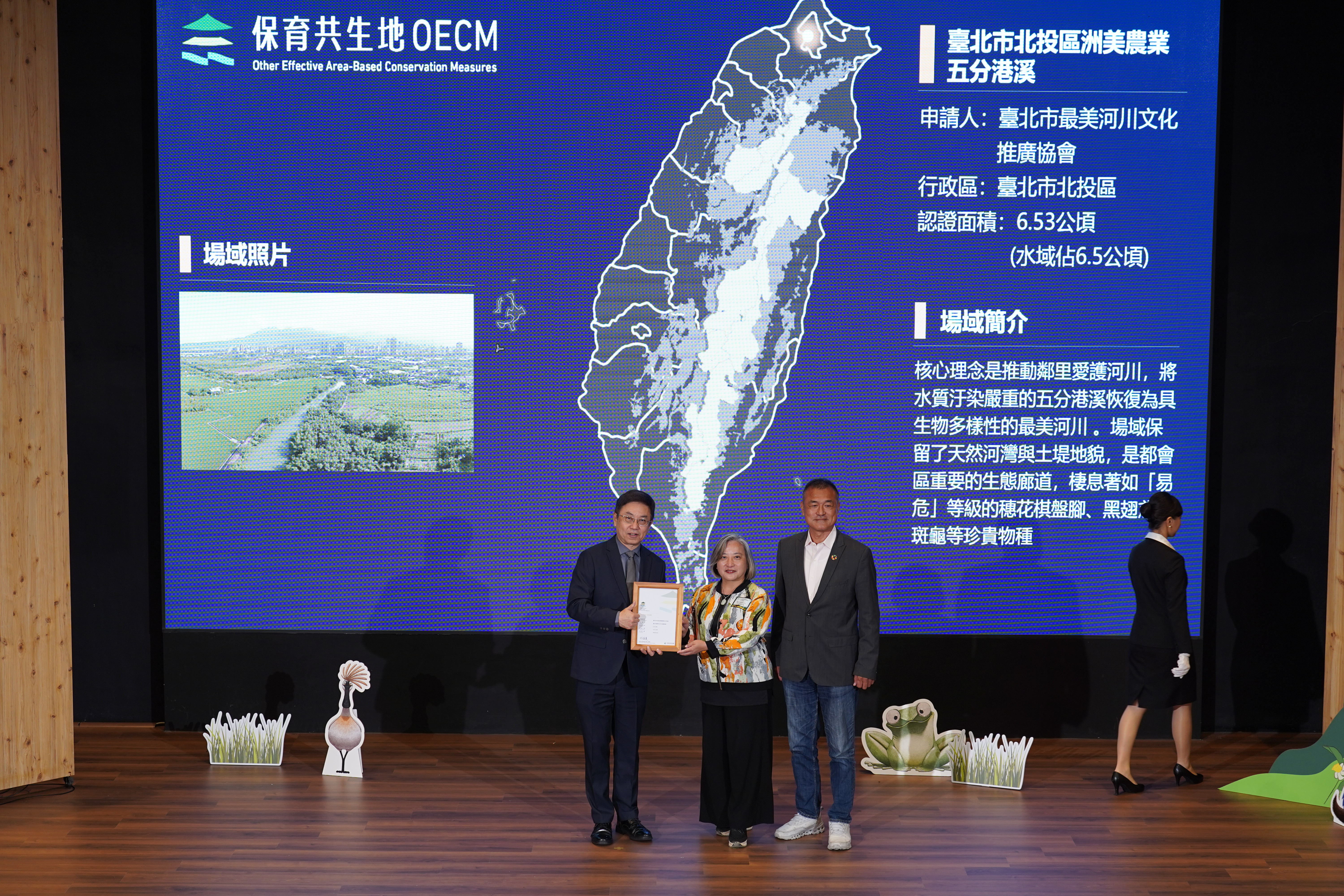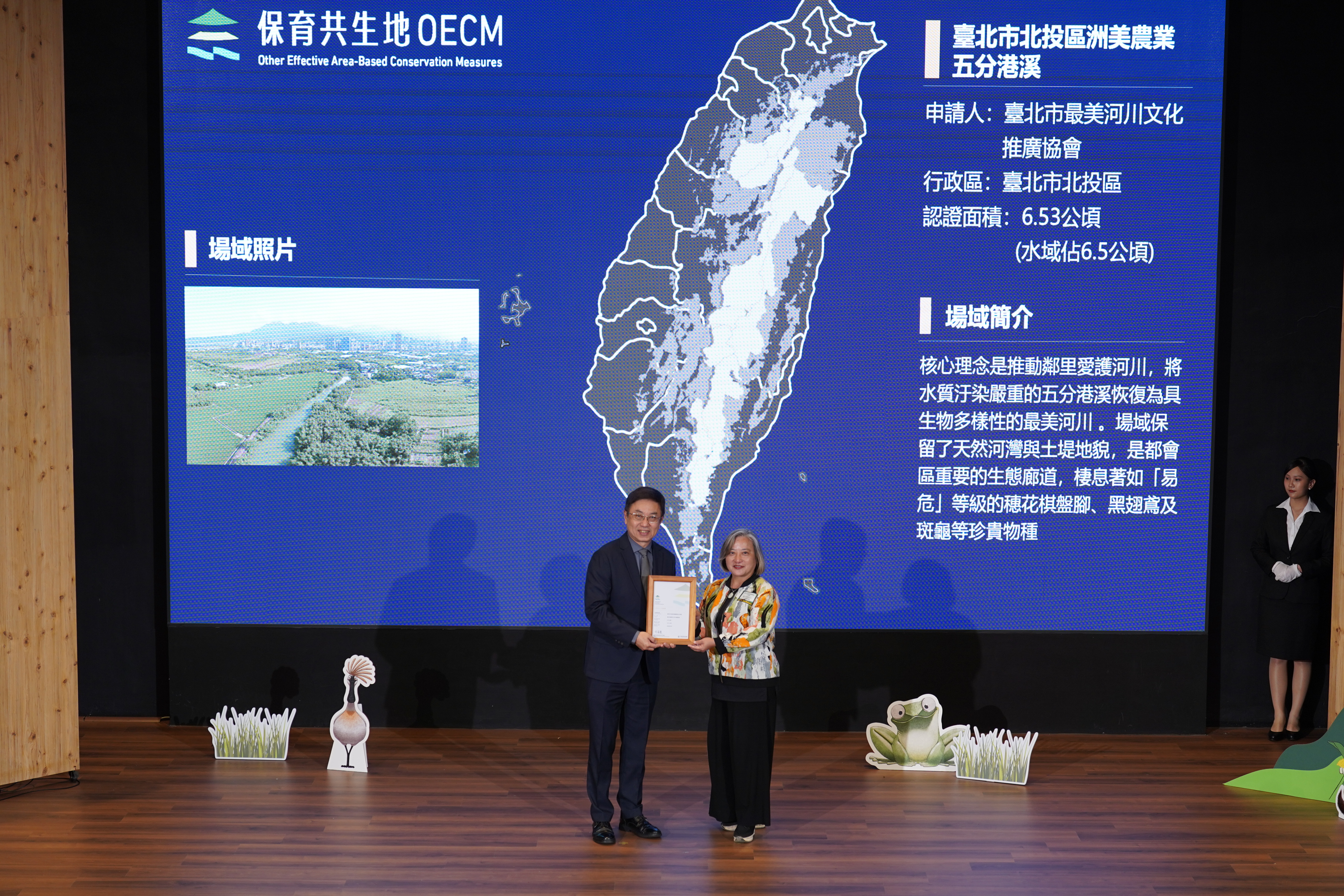 基本資料 認證分級 保育共生地 認證年度 114年 認證字號 114-1-039 申請人 臺北市最美河川文化推廣協會 行政區 臺北市北投區 認證面積 6.53 公頃 (水域面積占 6.5 公頃) 生物多樣性價值 價值一 瀕危動植物之現存、潛在棲息及生長範圍或其復育場域價值二 依賴特殊環境之物種或狹域分布物種之現存、潛在棲息及生長範圍價值五 具生態連結或緩衝功能之區域 場域簡介 核心理念是推動鄰里愛護河川,將水質汙染嚴重的五分港溪恢復為具生物多樣性的最美河川 。場域保留了天然河灣與土堤地貌,是都會區重要的生態廊道,棲息著如「易危」等級的穗花棋盤腳、黑翅鳶及斑龜等珍貴物種 。