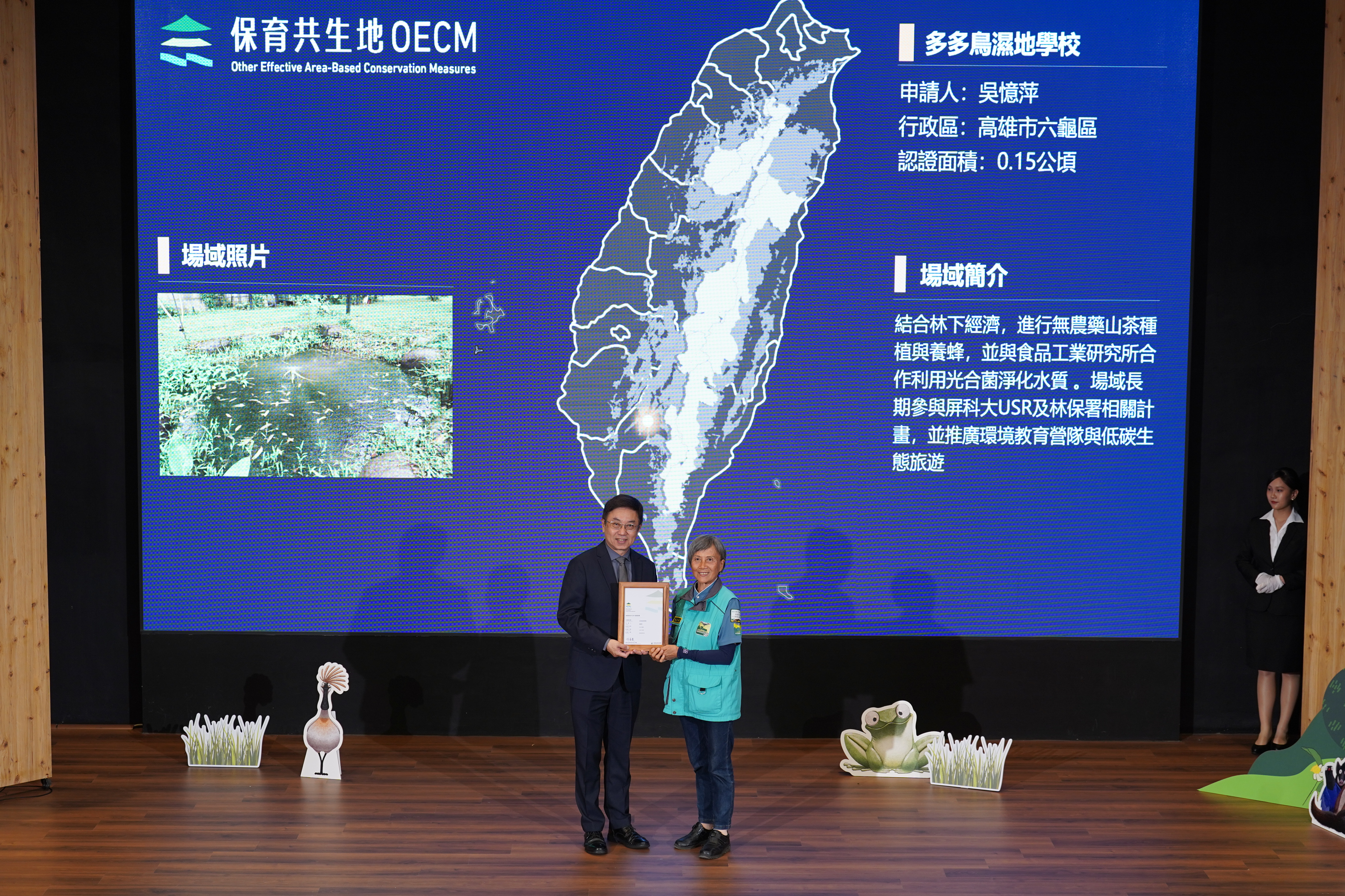 基本資料 認證分級 候選保育共生地 認證年度 114年 認證字號 114-2-001 申請人 吳憶萍 行政區 高雄市六龜區 認證面積 0.15 公頃 場域簡介 結合林下經濟,進行無農藥山茶種植與養蜂,並與食品工業研究所合作利用光合菌淨化水質 。場域長期參與屏科大USR及林保署相關計畫,並推廣環境教育營隊與低碳生態旅遊 。