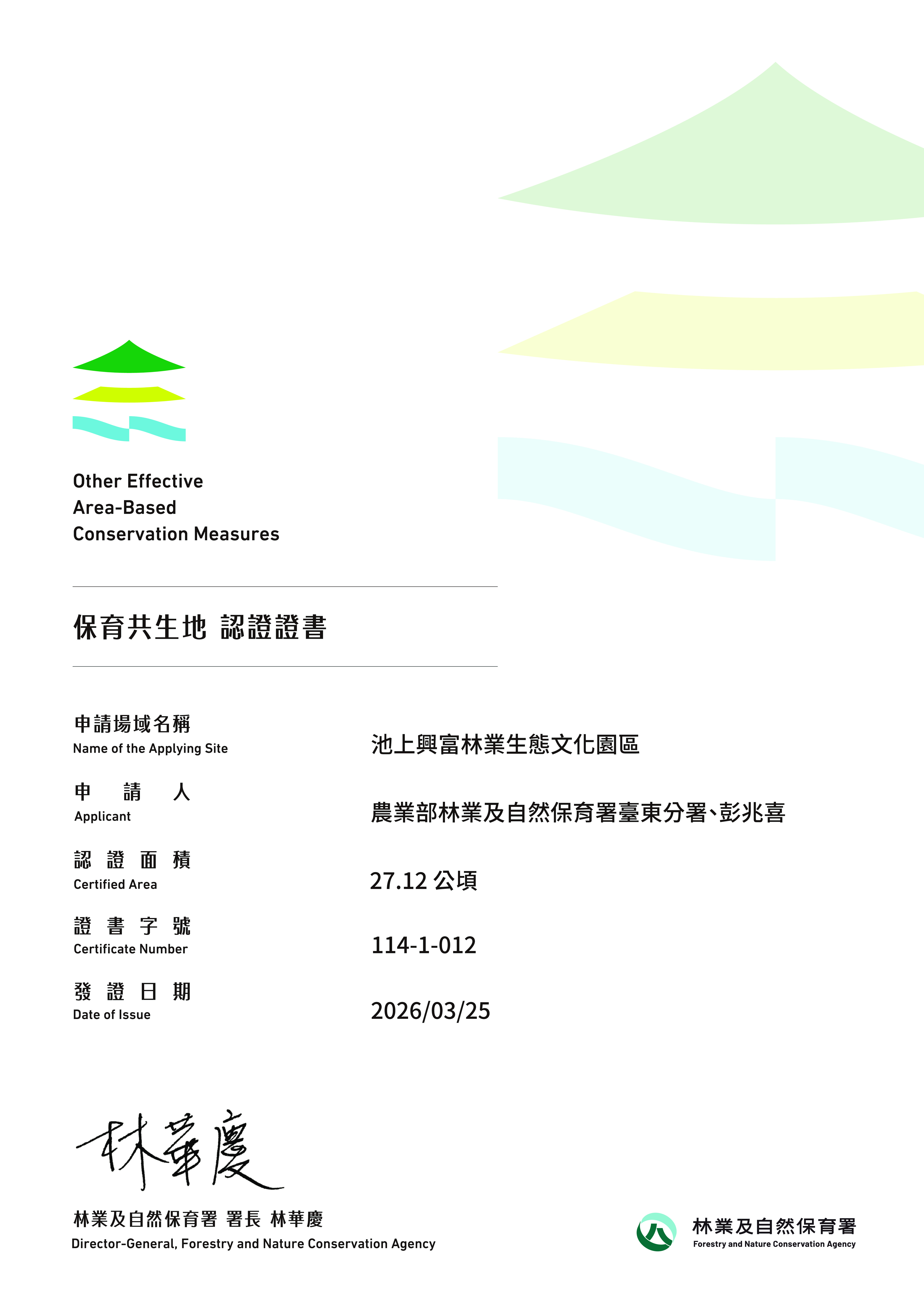 農業部林業及自然保育署臺東分署、彭兆喜 |
