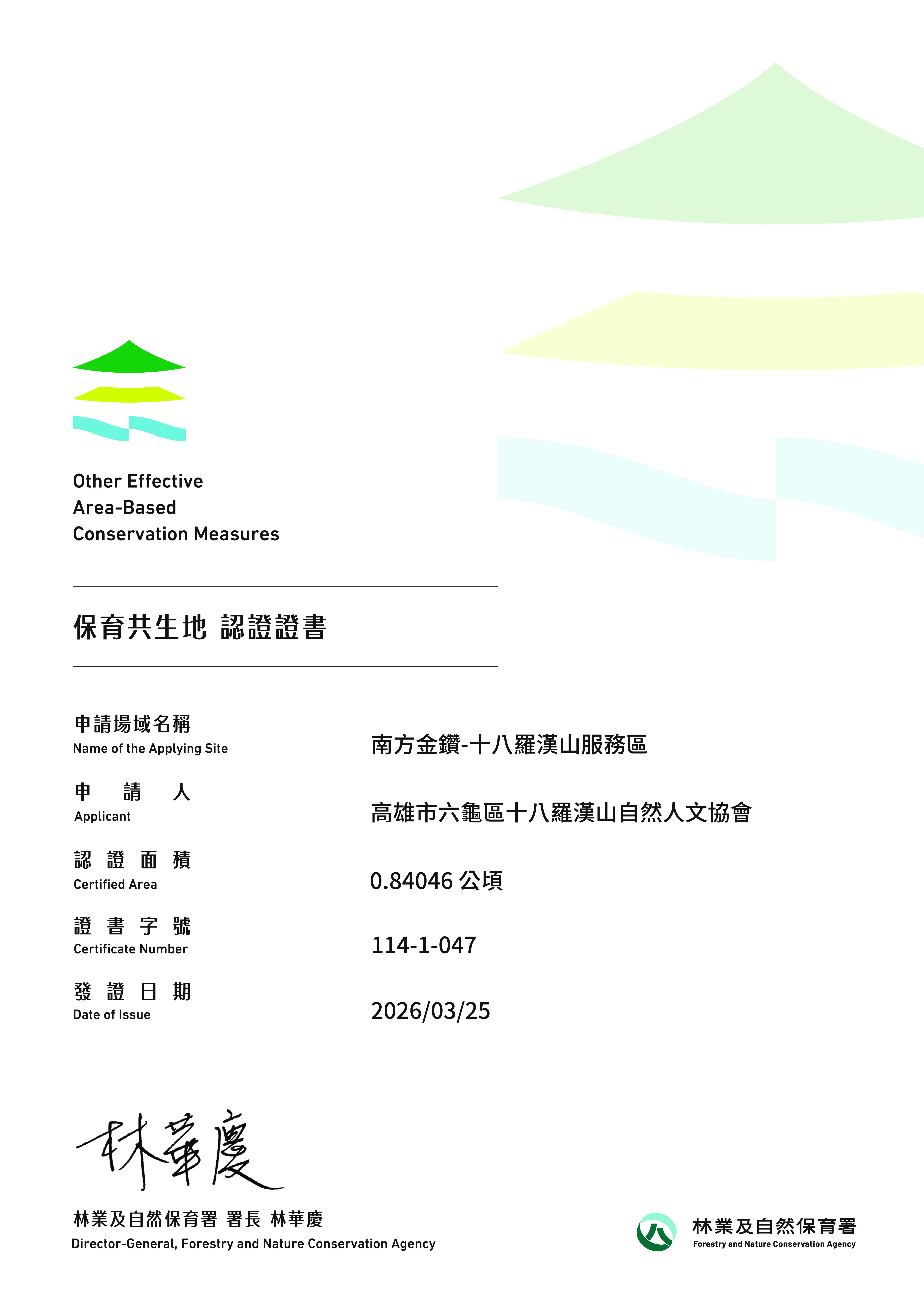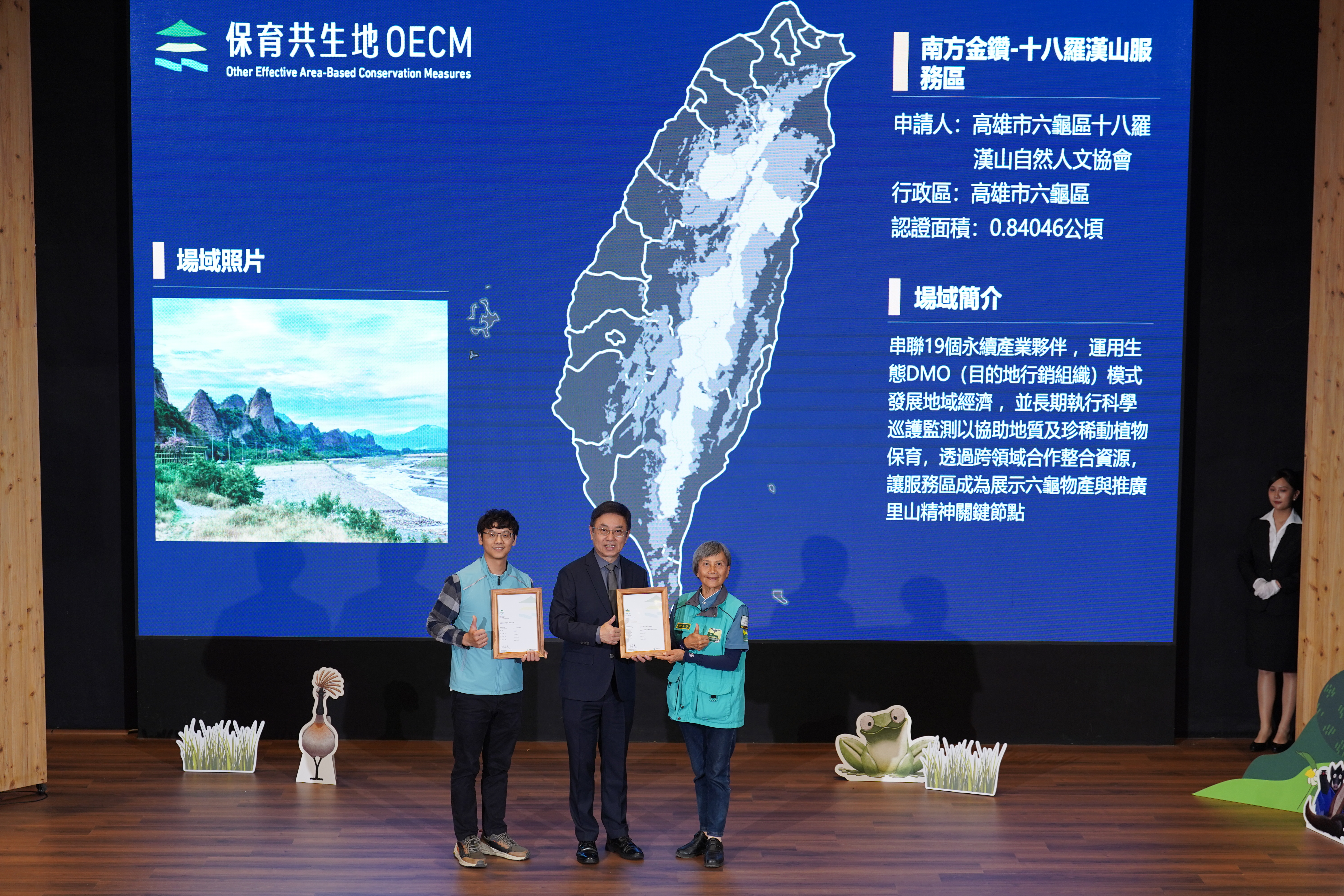 基本資料 認證分級 保育共生地 認證年度 114年 認證字號 114-1-047 申請人 高雄市六龜區十八羅漢山自然人文協會 行政區 高雄市六龜區 認證面積 0.84046 公頃 生物多樣性價值 價值五 具生態連結或緩衝功能之區域 場域簡介 串聯19個永續產業夥伴 ,運用生態DMO(目的地行銷組織)模式發展地域經濟 ,並長期執行科學巡護監測以協助地質及珍稀動植物保育,透過跨領域合作整合資源,使服務區成為展示六龜物產及推廣里山精神之關鍵節點。