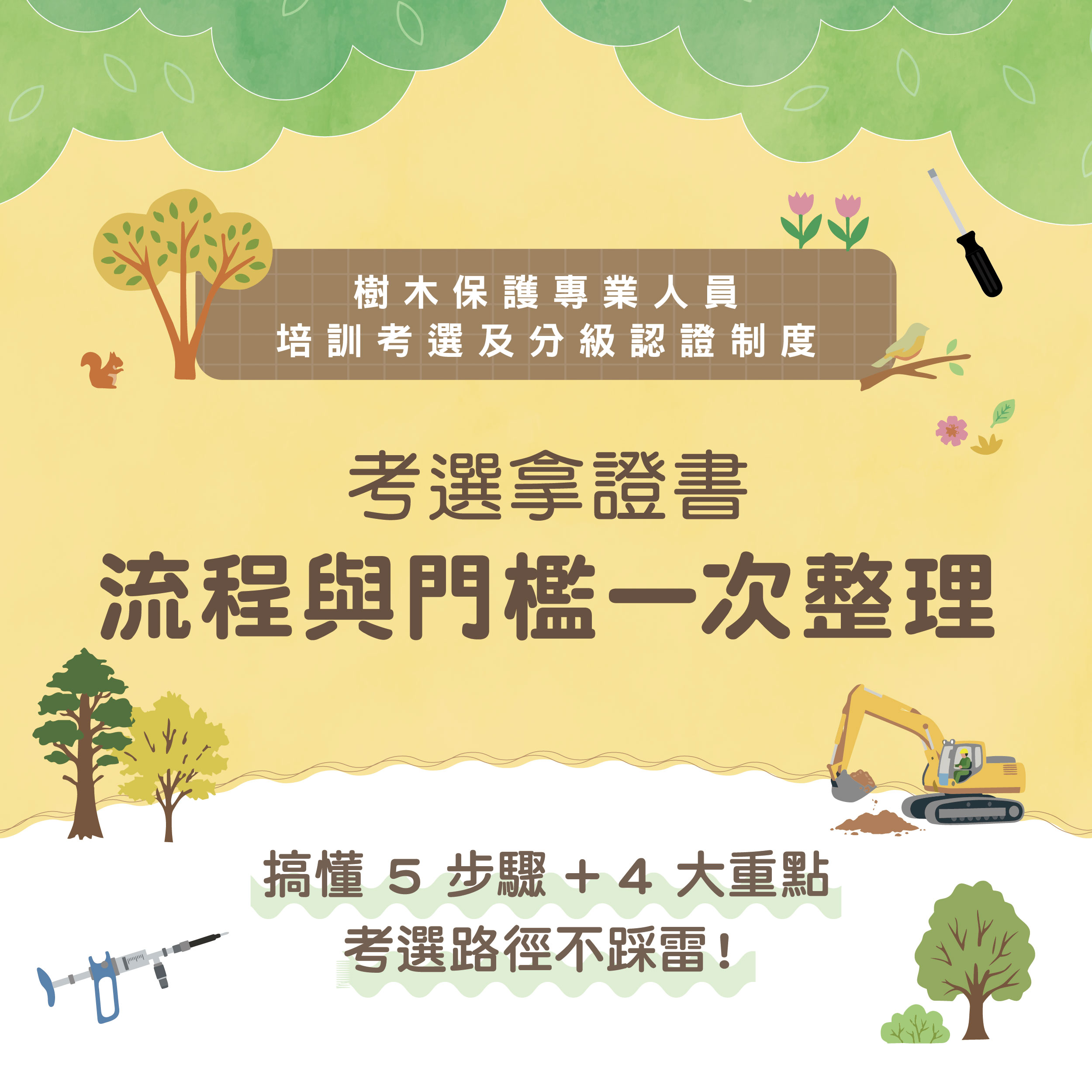 「考選」係提供現有樹保相關從業人員、高農或專科以上樹木保護相關科系畢業者參加;