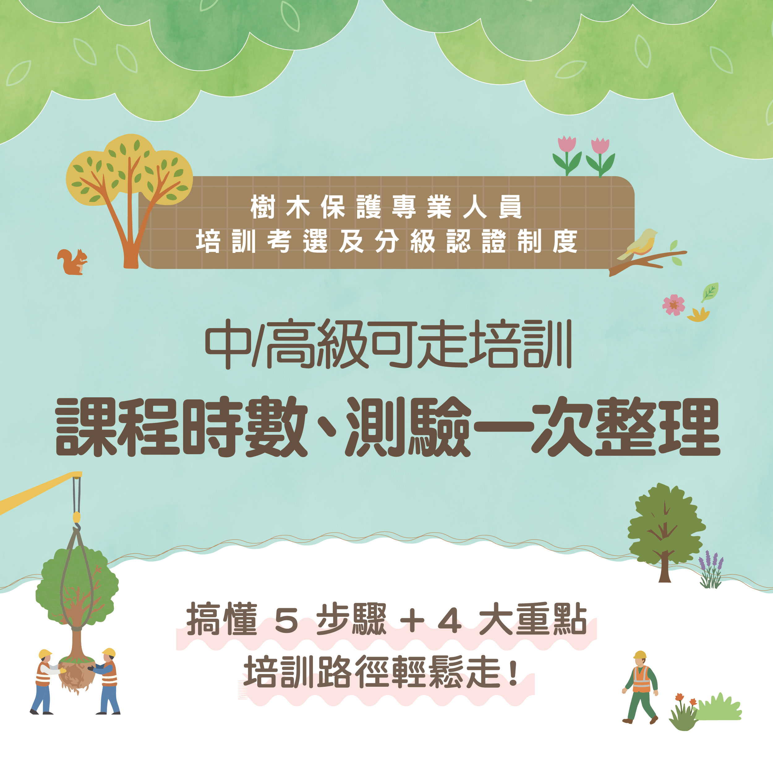 初級樹保人員:具備現場執行樹木保護相關之施工操作之能力;