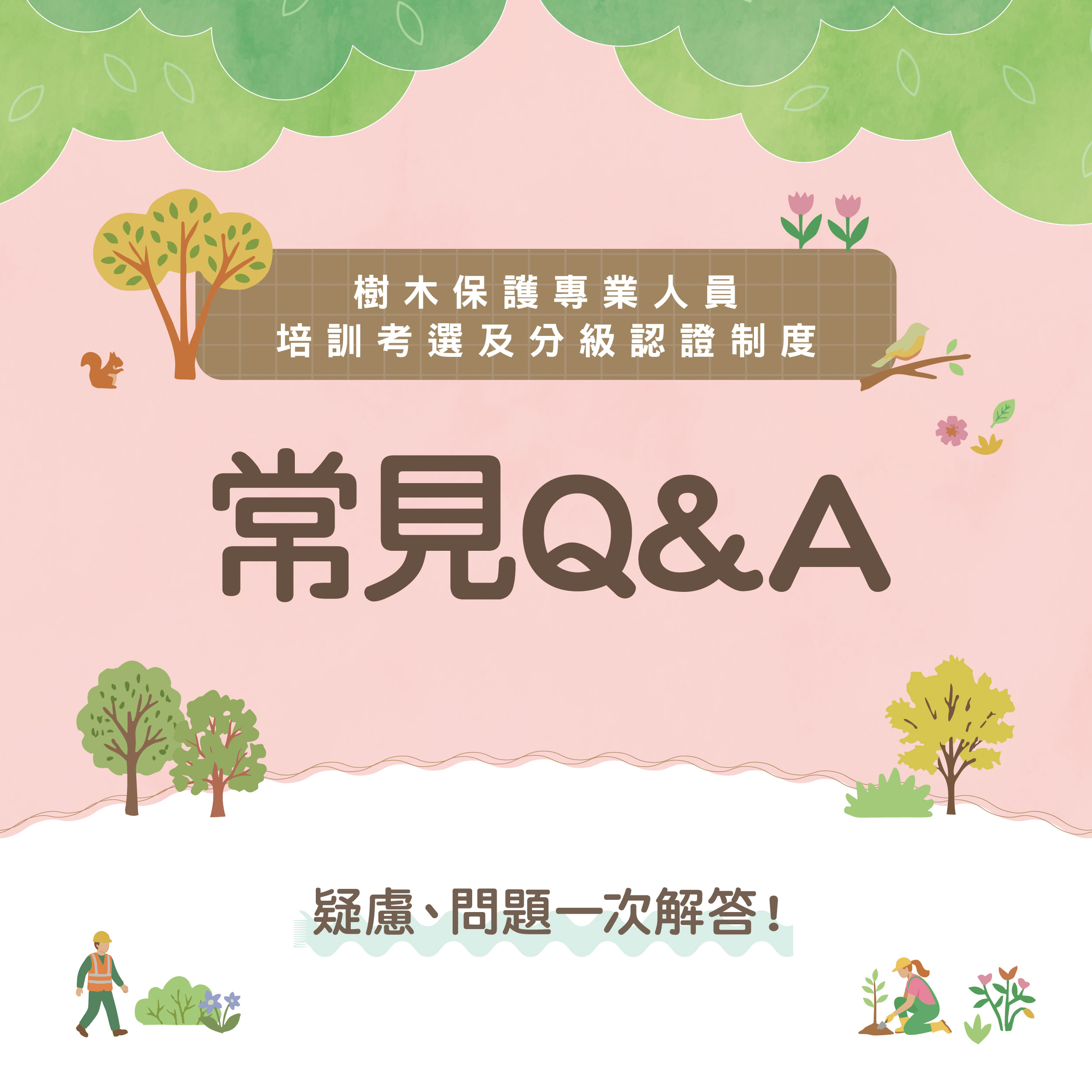 樹保人員認證採考選(先測驗後實習)與培訓(先培訓上課後測驗)雙軌並行。