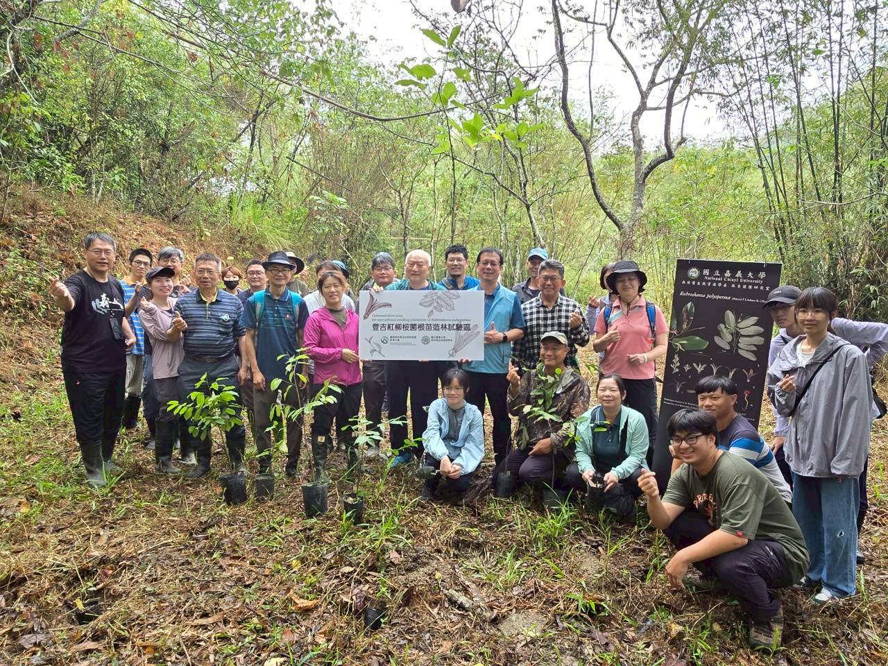 在全球熱帶森林中占有重要地位的「龍腦香科」植物,不僅是重要木材來源,更是強大的碳匯資源。林業及自然保育署屏東分署經營之雙溪熱帶樹木園於1935年設立,當時日本植物學者佐佐木舜一即自熱帶地區引種登吉紅柳桉( Rubroshorea polysperma )至高雄美濃「雙溪熱帶樹木園」栽植。退休教授楊勝任老師指出,該樹種已完全適應臺灣環境,並確認為歸化種,2023年發表於American Journal of Plant Sciences期刊,其在臺灣的適應與更新情形以雙溪熱帶樹木園為起點,歷經90年生長,目前胸徑已達100公分,林下已出現自然更新小苗,展現良好繁衍能力,可為探索固碳潛力之造林樹種。 屏東分署指出,登吉紅柳桉生長快速、木材細緻,極具商用與熱帶雨林環境保育價值。為建立完善的育苗與造林標準作業規範,分署114年起,委託國立嘉義大學林瑞進老師實驗室進行專案研究。研究重點除釐清母樹分布外,更深入探討支撐其在臺生存的微生物系統。 在嘉大研究團隊努力下,純化出對苗木生長具明顯效益的菌株(如SpSTA4、SpSTA6),希望藉了解登吉紅柳桉共生菌根菌,來增加造林成效。今日於高雄市美濃山區旗山事業區第52林班地,舉辦菌根苗造林示範區說明會與教學活動,由林瑞進與楊勝任老師,向美濃在地居民分享登吉紅柳桉的重要性及育苗技術,共計35人參與,合力栽植80株菌根苗。嘉大團隊將持續監測,詳細記錄菌根苗在野地的適應數據,作為未來推廣造林的科學依據。屏東分署表示,未來將透過在地社區參與,讓居民化身為森林守護者,推廣登吉紅柳桉為美濃在地具造林及保育價值的特殊亮點。
