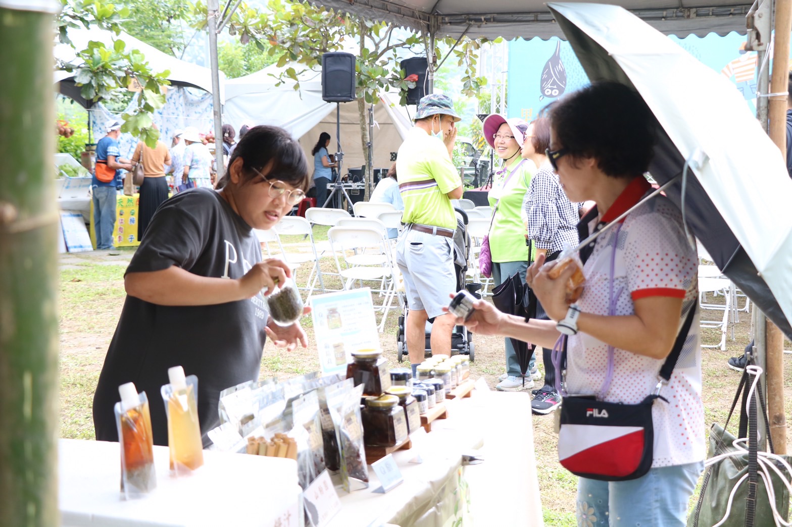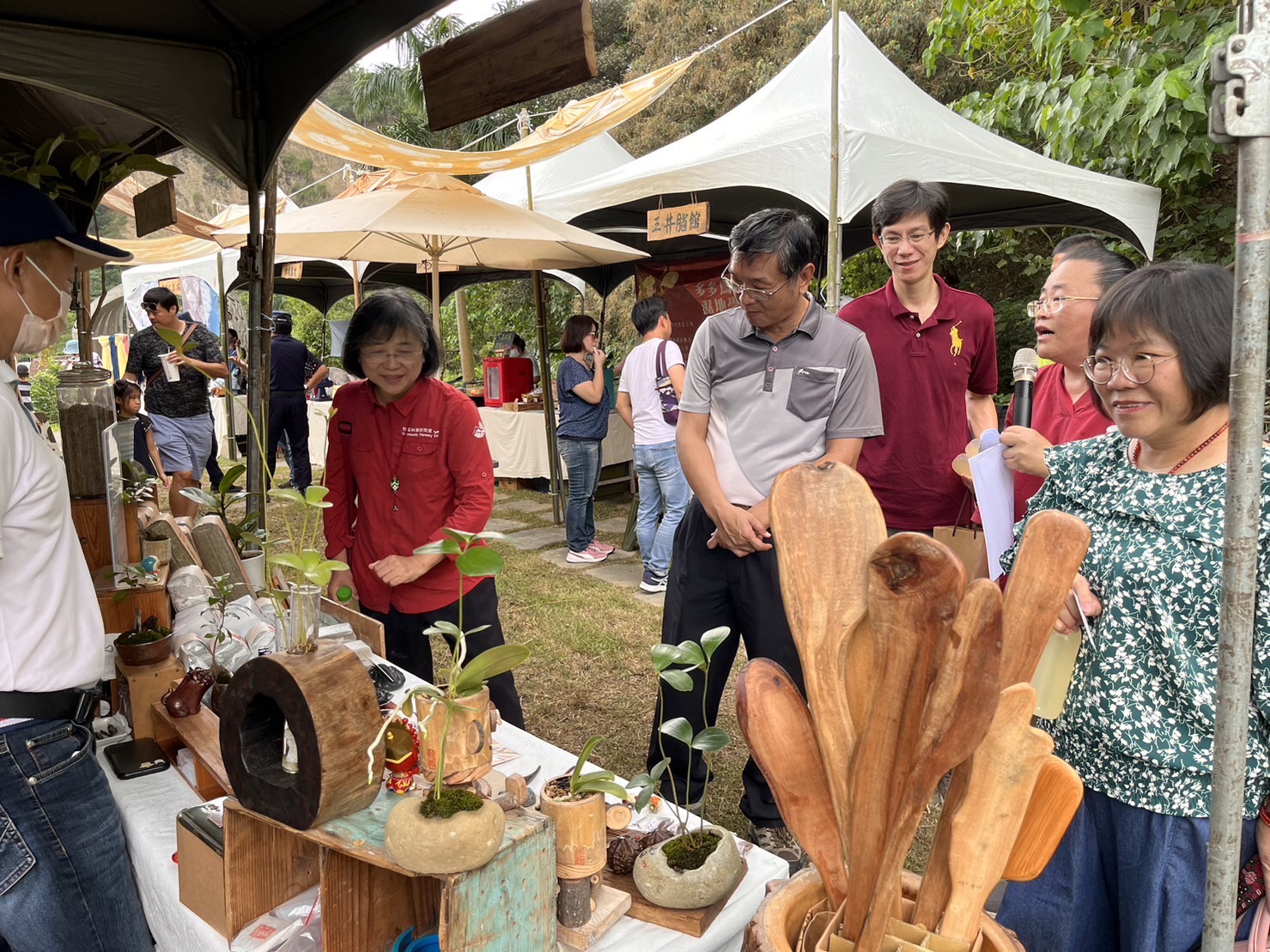 林業保育署屏東分署楊瑞芬分署長致詞表示,十八羅漢山自然保護區經營,呼應國際保育趨勢,睿智的使用自然資源,將生態系服務價值分享給在地社區及前來的遊客,透過市集串連六龜在地美好的生態、人文、產業,也感謝茂管處提供場地,發揮共好的精神。而在地夥伴的向心力一起遵照陳美惠老師所提的里山根經濟的指導,把六龜居民串連一起,讓美好永續發展下去,希望大家用消費支持友善耕作,讓小農繼續為環境貢獻。