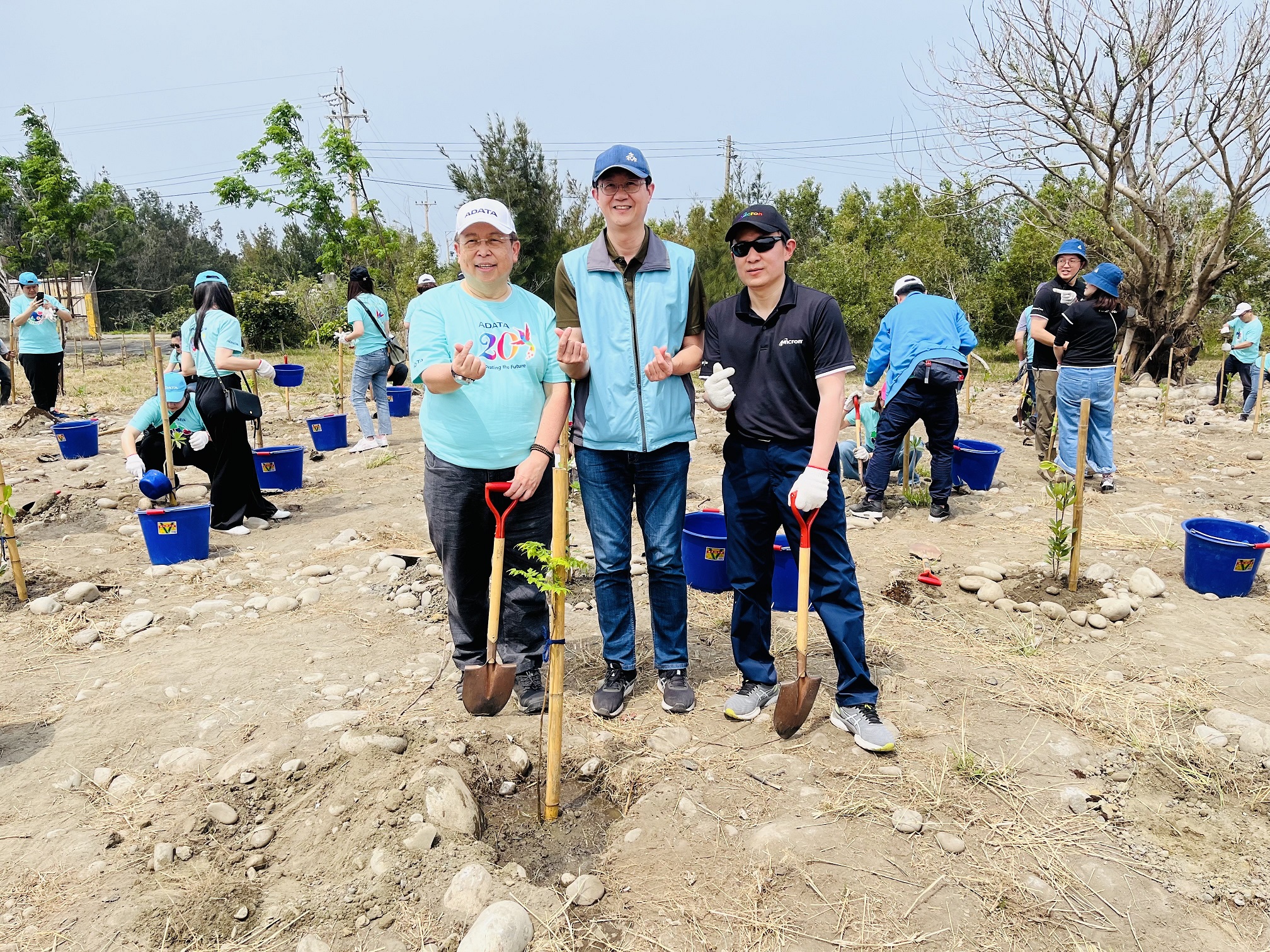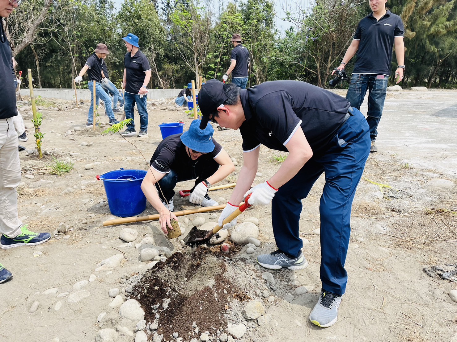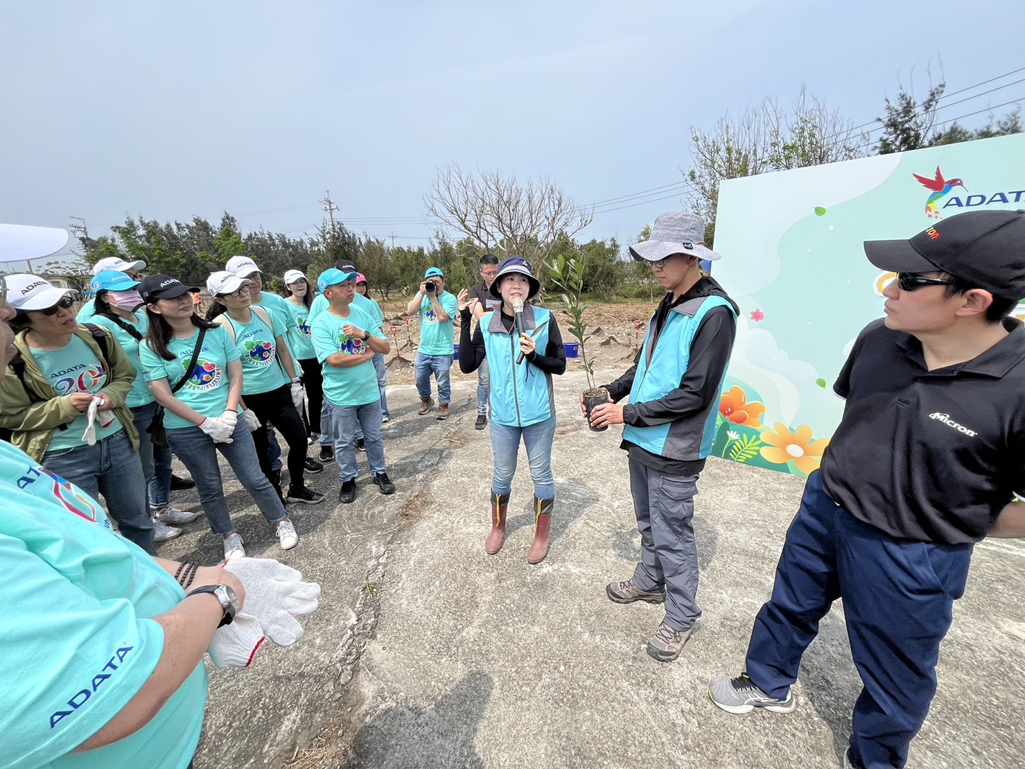 林業保育署臺中分署表示,為結合民間企業力量,紮根生態造林及海岸保育之環境教育,自110年起即與臺灣美光記憶體股份有限公司合作造林,今(113)年更攜手威剛科技股份有限公司共同捐款認養海岸造林地,已累計植樹1.29公頃,種下約2,800株樹苗,今日更號召員工70餘人響應「一起集點樹」系列植樹活動,一同植下200餘株的海岸原生樹種,為縫合臺中海岸濕地保育軸帶種下希望的樹苗。