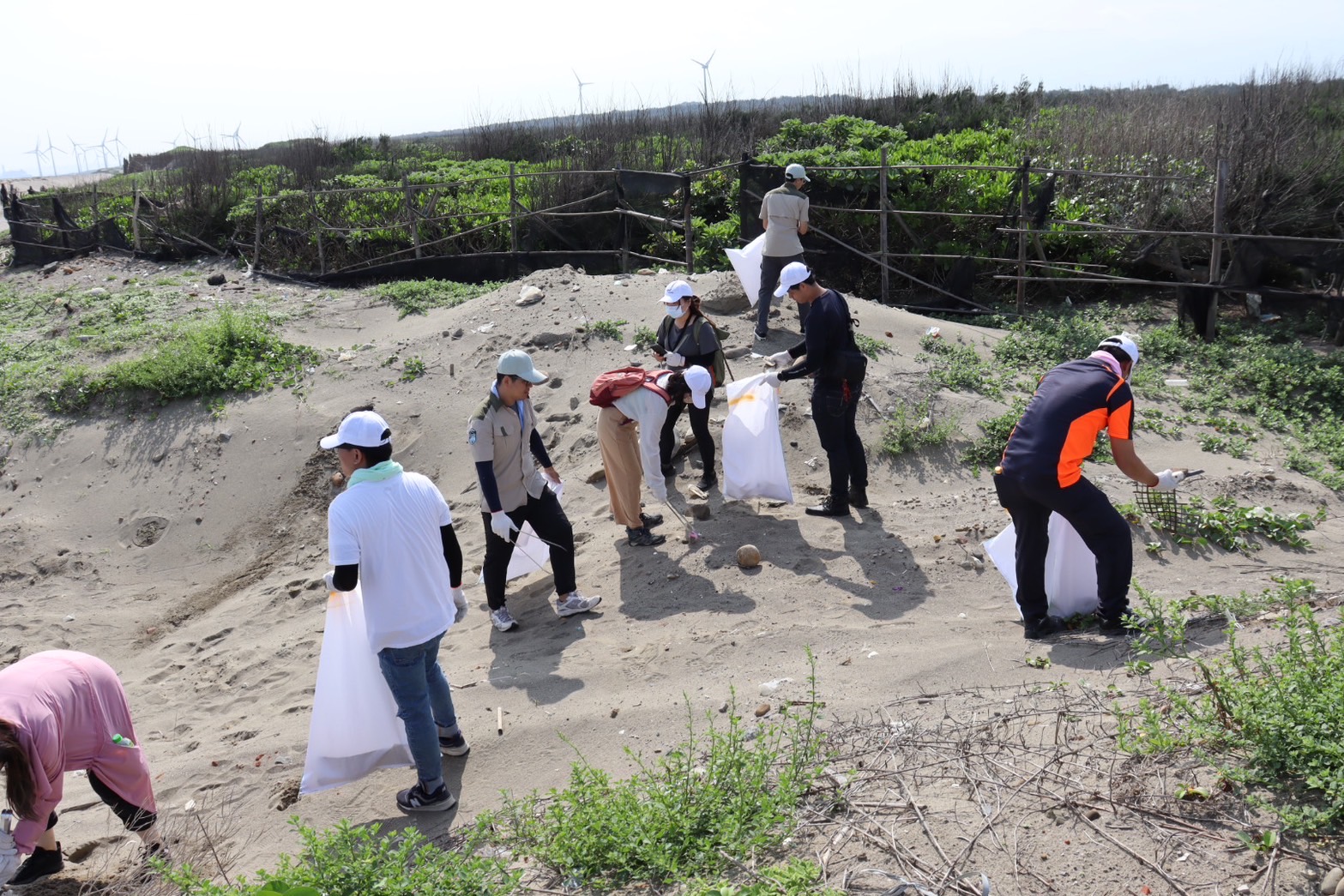 攜手護海洋 林業保育署新竹分署結合苗栗縣後龍鎮社區及風電公司 淨灘愛地球! 林業及自然保育署新竹分署為響應行政院「向海致敬」海岸環境維護政策,在「422世界地球日」前夕[今(20)日],在苗栗縣後龍鎮合興段編號1312海岸保安林與苗栗縣後龍鎮外埔社區發展協會、海埔社區發展協會及龍威風力發電股份有限公司合辦淨灘活動,邀請在地里民、企業夥伴踴躍參加共襄盛舉,以結合在地社區、企業的方式,一同辦理此次淨灘活動,大家攜手進行海岸環境清潔工作,以實際行動來展現愛護環境的精神。總計參與人數101人、總計清除廢棄物計250公斤,讓海岸保安林展現美麗潔淨的清新面貌。 新竹分署大湖工作站主任譚運籌表示,本次活動結合在地社區及企業力量,透過大家共同協力,在苗栗縣後龍鎮編號1312號保安林清理海岸保安林廢棄物,恢復原有環境的同時也讓保安林防風、定砂、防止潮害等公益功能得以發揮。良好的海岸環境才能提供民眾優質的休憩場域,更希望未來能夠持續透過共同努力,守護海岸生態環境。 共同參與的後龍鎮在地社區里民及企業夥伴亦紛紛表示,透過與政府單位的合作淨灘,讓故鄉周遭的生活環境更加美好與整潔,同時發揮風電企業的社會責任,是相當好的親身體驗,希望大家都能夠對於守護故鄉環境、維護生活周遭景觀,能有更深刻的認知與體會。 臺灣島四面環海,西岸大多與聚落相鄰,是民眾假日休憩的好去處,因此清潔與維護海岸環境相當重要。本次淨灘地點苗栗縣後龍鎮編號1312號保安林,林業保育署新竹分署多年來投入相當的資源,在海岸第一線建構堆砂籬固砂,讓靠內陸的第二線防風林逐漸成林,形成海岸外緣特殊的砂丘地景,海岸內陸則是鬱鬱蔥蔥的防風林景觀,壯闊的沙丘與防風林涇渭分明的景觀,吸引假日遊客造訪。