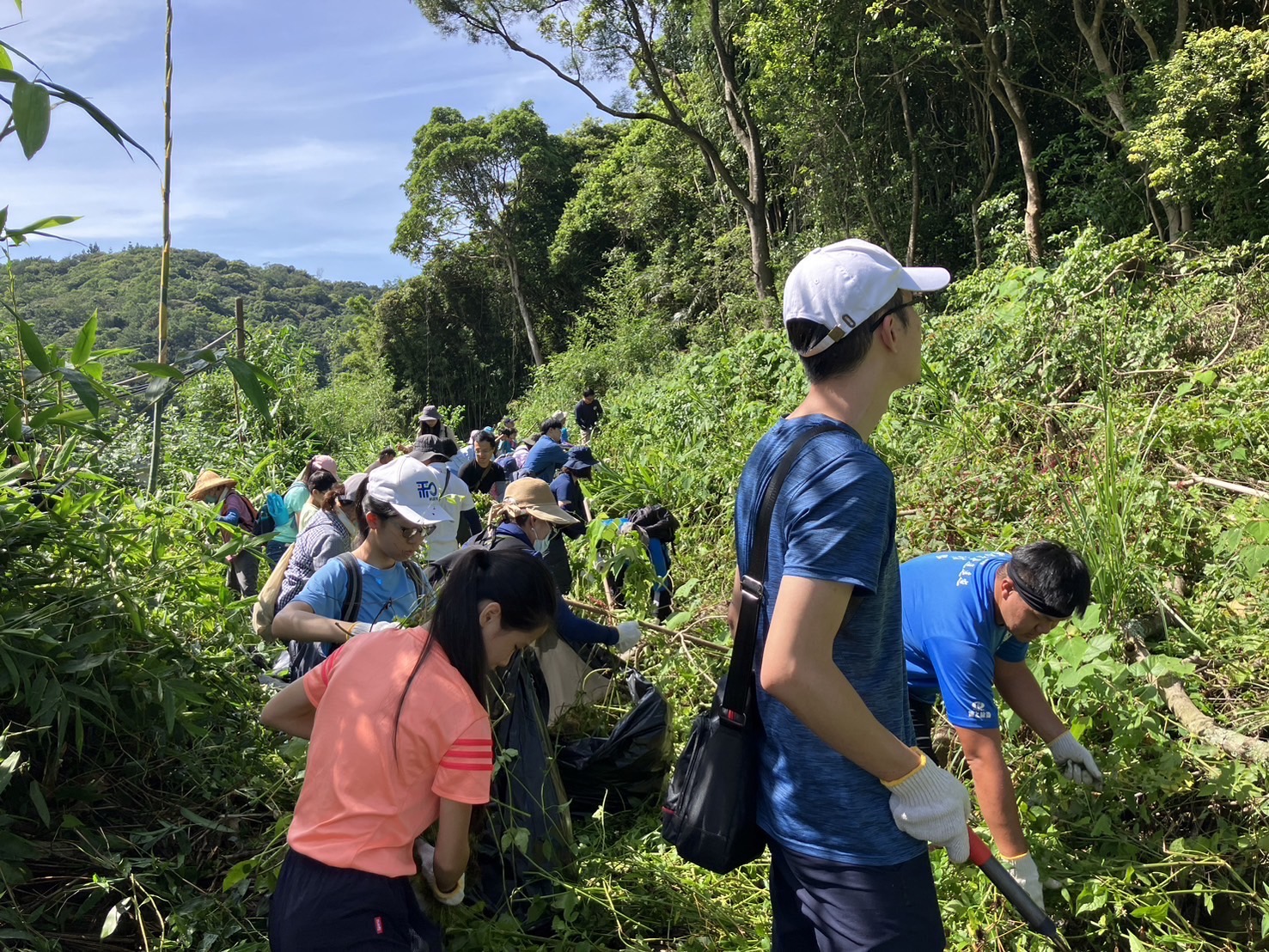 林業及自然保育署新竹分署大溪工作站今(15)日與桃園市三洽水環境教育中心在三元宮周邊辦理清除小花蔓澤蘭活動,結合三和國小、社區居民老少一起動手,共約150名人員參與。活動從上午開始,大家分組進行除蔓作業,9月份秋老虎發威,大家的賣力付出從濕透了的衣服就可以見證,但炎熱的天氣仍不減大家除蔓的決心,經過全力的拉、拔、砍蔓後,原本受壓的樹木枝條、土壤漸漸的重見天日。本活動合計移除1,342公斤的小花蔓澤蘭,成果非常豐碩,所移除的藤蔓由本分署收購後,製成相關衍生性製品等,強化應用及推廣。