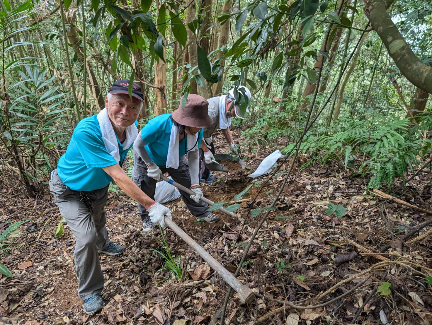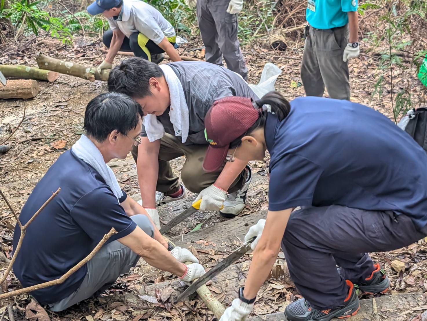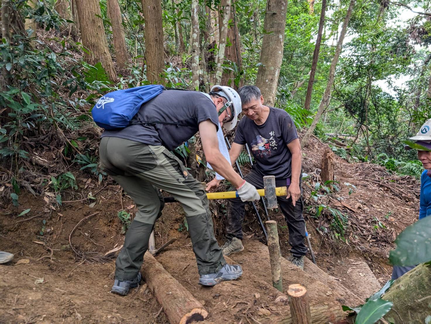 林業及自然保育署臺中分署為推廣手作步道的概念與價值,於10月18日在橫嶺山步道舉辦了手作步道活動,運用現地材料,以友善環境工法處理步道上樹根裸露的問題,將橫嶺山步道300公尺的浮根步道,打造成自然、安全且平緩之步道,為橫嶺山步道的山林原始樣貌再添新氣象。 林業保育署臺中分署表示,雨水沖蝕如果發生在樹木根部,加上人為頻繁踩踏,表土流失後樹根就會裸露於步道上,產生深淺不一之凹陷現象,造成步道行走面不平整,影響舒適度及容易被絆倒,是常見的步道浮根課題。這次臺中分署特別邀請手作步道專家-伍玉龍老師,指導該分署同仁及志工共26人,使用現地既有材料,解決橫嶺山步道浮根問題,整理成紮實、友善山友行走的土木階梯步道。 為改善橫嶺山步道上樹根裸露的狀況,志工們尋找合適的枯、倒木,裁切成合適的尺寸,於浮根步道上構築成階梯,以保護裸露的樹根,再搜集土壤填滿夯實,過程就像蜜蜂般來回不停地穿梭在森林裡,流的都不知是汗還是淚了,但轉念一想平常都是走別人做好的步道,這次可以做步道讓更多人走,內心真的是滿滿成就及感恩,也讓志工們從手作過程中學習並體驗到與自然生態和諧共存的工法,共築優質的森林步道。 林業保育署臺中分署指出,將持續以手作步道理念優化步道品質,更推廣無痕山林準則,呼籲民眾可以先從進入山林做好事前準備、不走捷徑、行走在既有步道上等無痕山林原則開始做起。更歡迎熱愛山林、想要投入山林環境維護的團體,洽詢臺中分署(04-25150855轉335)了解合作方式等資訊,一起「手」護台灣山林環境。