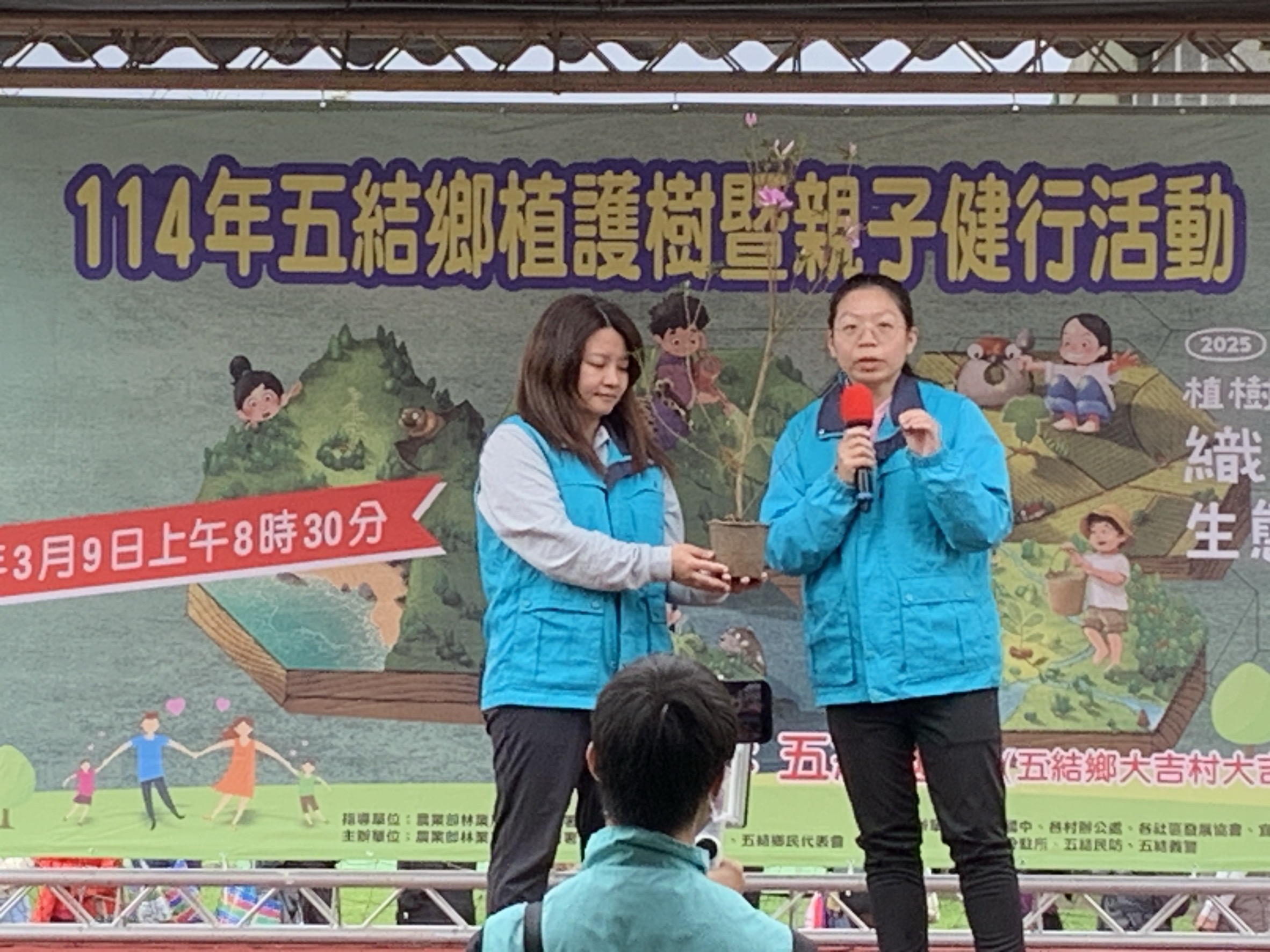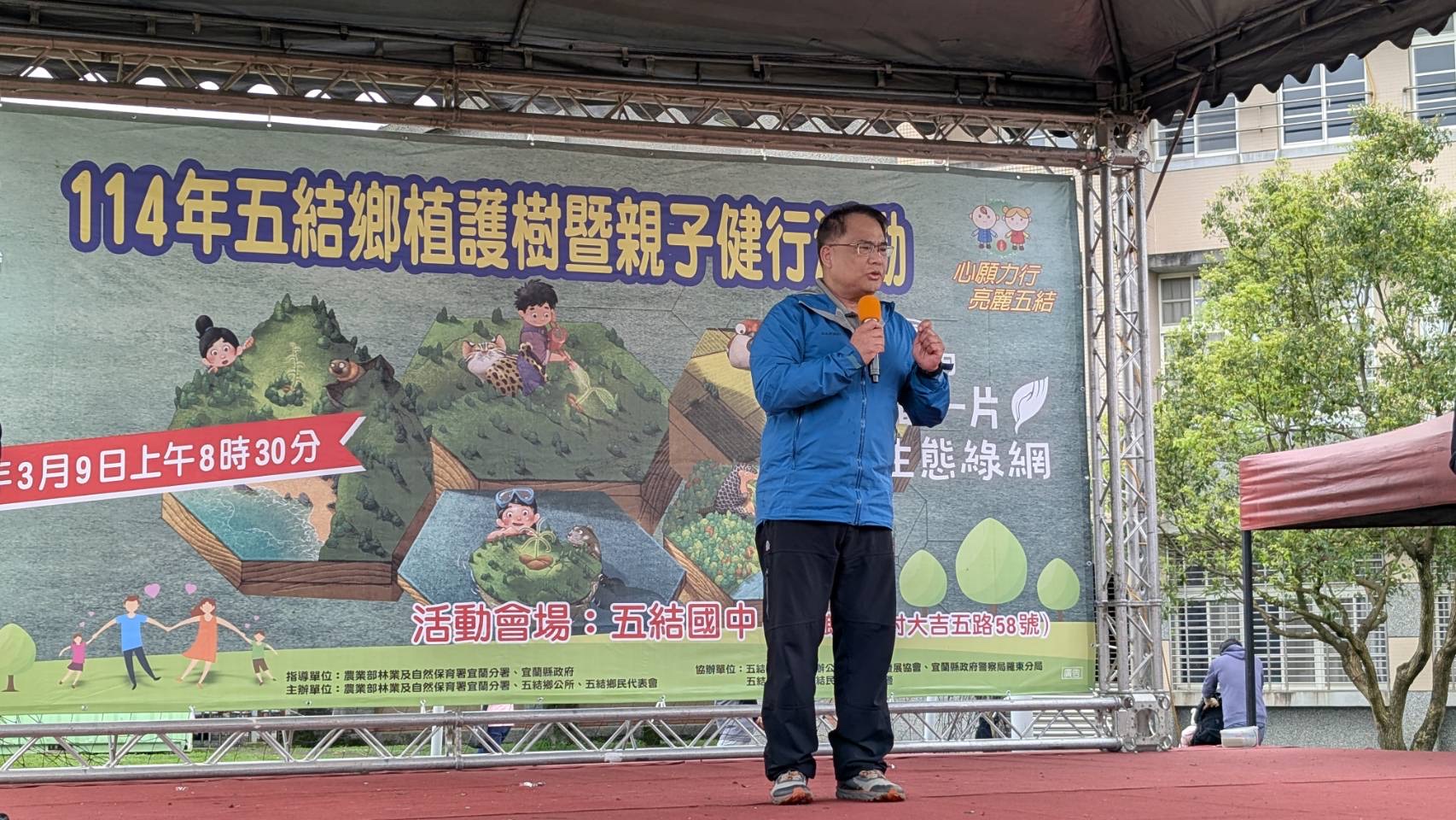 林業及自然保育署宜蘭分署與五結鄉公所於今(9)日在五結國中及排水堤岸旁道路共同辦理「織一片生態綠網」114年五結鄉植護樹暨親子健行活動。現場由五結鄉鄉長沈德茂、宜蘭縣政府代表人游美蘭、立法委員陳俊宇特助陳思昌、代表會副主席林益風、宜蘭分署副分署長鄧江山、多位議員代表及在地村長、社區與鄉民1,500餘人共同參與,在校園內及排水堤岸種下山櫻花及紫楝樹苗,另也提供民眾以發票兌換苗木方式,將烏來杜鵑、細葉山茶、石斑木等帶回家,共織生態綠網。今日植樹加換苗數量近達2000株,民眾熱烈響應,共同減碳、愛惜環境、關懷地球。 宜蘭分署表示,每年的植樹月活動,都有五結鄉公所共同響應,隨著年年在排水堤岸持續種樹,除了有景緻上的整體規劃,更是共織完整的生態綠網,促進環境友善的循環。