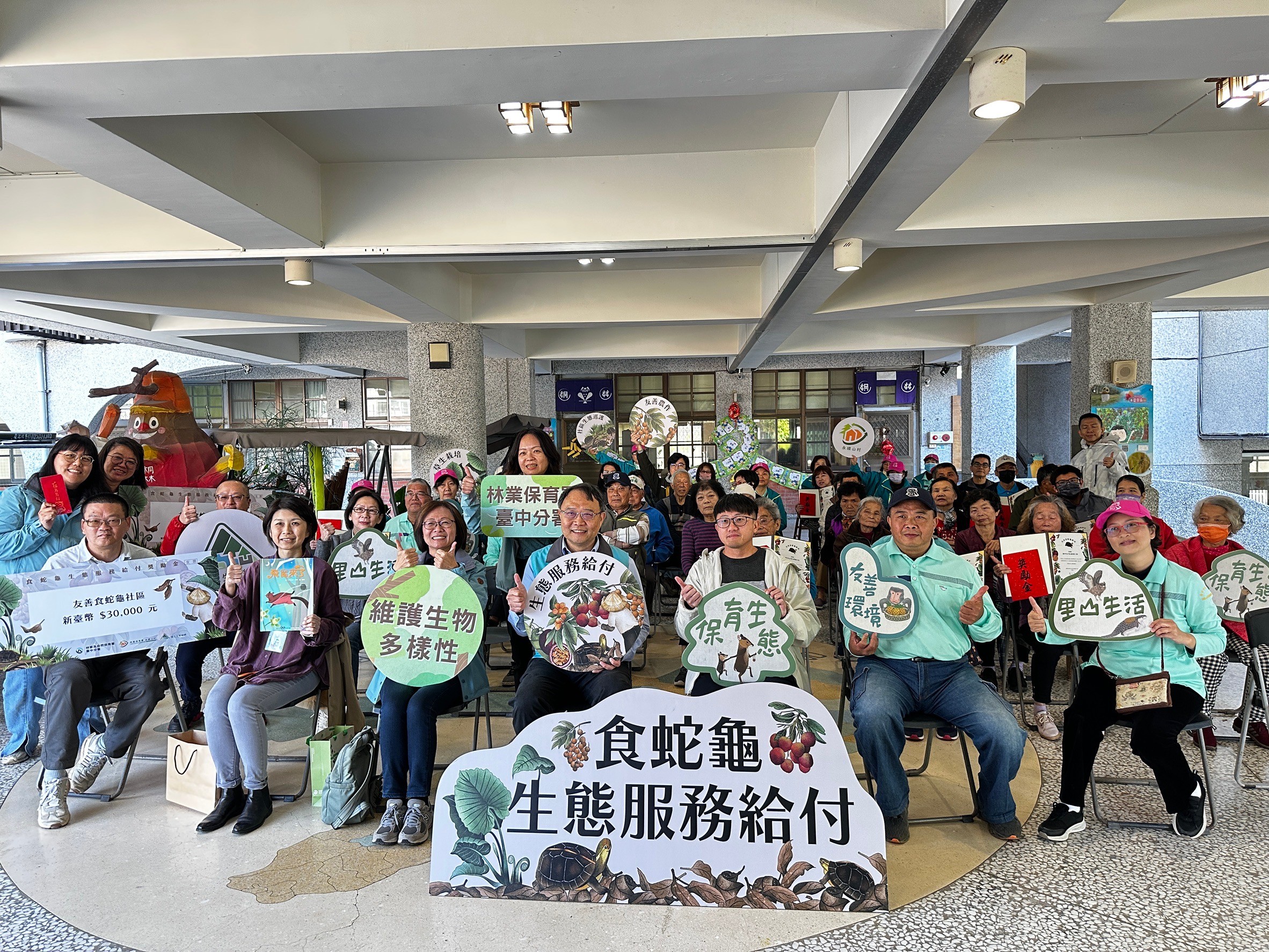 林業及自然保育署臺中分署今(10)日在臺中市霧峰區萬豐社區發展協會辦理「食蛇龜生態服務給付示範計畫」地方說明會,超過30位農友與社區代表參與,說明會上除了推廣114年度生態服務給付計畫,邀請在地民眾共同為食蛇龜保育盡一份心力,也進一步和農友及社區夥伴交流農地友善管理、棲地營造等保育工作推動心得。 林業保育署臺中分署113年度在臺中市太平區與霧峰區首次推動「食蛇龜生態服務給付示範計畫」,提供「友善農地給付」及「巡護監測給付」兩項獎勵機制,鼓勵農民與社區投入友善棲地營造,首年即有19位農友與1個社區響應,友善農地面積達17公頃,發放「生態薪水」總額約80萬元,成果豐碩。該分署今年擴大辦理該項計畫,持續招募太平與霧峰地區的農友與社區參與,預計至少招募25位農友與2個社區共襄盛舉,曾參與計畫的對象也可再次申請;今年更加碼在該地區的國小辦理至少4場校園推廣活動,帶領當地孩子們一起認識及保育食蛇龜。 林業保育署臺中分署表示,食蛇龜是臺灣原生的陸棲性淡水龜類,主要棲息於低海拔闊葉林及淺山地區的農地、果園,與人類生活空間高度重疊,長期以來,牠們面臨棲地開發、盜獵及非法走私等威脅,導致野外族群急遽減少,目前已被列為瀕臨絕種的一級保育類野生動物,亟需透過在地力量協力保育。 為減緩食蛇龜生存壓力,林業保育署臺中分署積極盤點潛在棲地,發現臺中市太平、霧峰地區大面積種植龍眼、荔枝、枇杷等果園,是食蛇龜偏好的棲地類型,去年參與計畫的農友們不僅採行友善農法,更透過鋪設枯枝落葉、設置淺水池與掛設巢箱等方式,營造適合食蛇龜與其他野生動物棲息的環境;霧峰區桐林社區則組成食蛇龜巡守隊,定期巡護社區生態環境、清除捕捉裝置與流浪犬貓餵食點,將保育行動融入在地居民生活。 「食蛇龜生態服務給付示範計畫」包括「友善農地給付」、「巡護監測給付」兩種給付項目,「友善農地給付」針對農地友善管理與棲地營造措施予以補助,例如:不使用除草劑與刀片型除草機,避免在除草過程中誤傷龜類,營造農地草相,構築友善棲地環境,獎勵金額度依農地面積與實際配合營造項目計算。「巡護監測給付」則是由在地社區團體成立巡守隊,每月執行巡守及保育工作,每年最高可核發6萬元獎勵金。 林業保育署臺中分署表示,在地居民的認同與支持,是推動保育工作能否成功的關鍵。透過「生態服務給付計畫」,發放「生態薪水」鼓勵農民與社區友善管理土地,建立農業生產、社區發展與生態保育間的良性循環,該分署也呼籲更多民眾一起關注及參與保育工作,用行動守護我們的生活環境,共同打造人與自然和諧共存的永續家園。農友與社區如有意願參與食蛇龜生態服務給付計畫,詳細計畫內容與給付規定可參考農業部林業及自然保育署自然保育網(網址:https://conservation.forest.gov.tw/0002186),亦可洽詢臺中分署委辦團隊(許小姐0910-739395)協助。