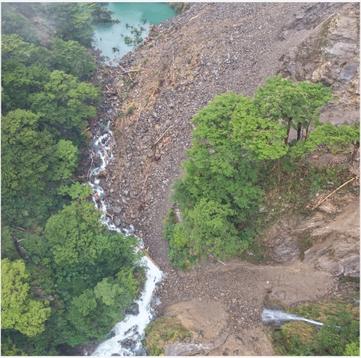 1. 經臺中分署今日上午針對壩體局部進行空拍調查,初步判釋結果顯示壩體體積約2,500立方公尺,堰塞湖面積約0.6公頃,蓄水量約6萬立方公尺,相較於立霧溪燕子口堰塞湖(約270萬立方公尺)、馬太鞍溪堰塞湖(約9100萬立方公尺),合歡溪上游堰塞湖規模不大。