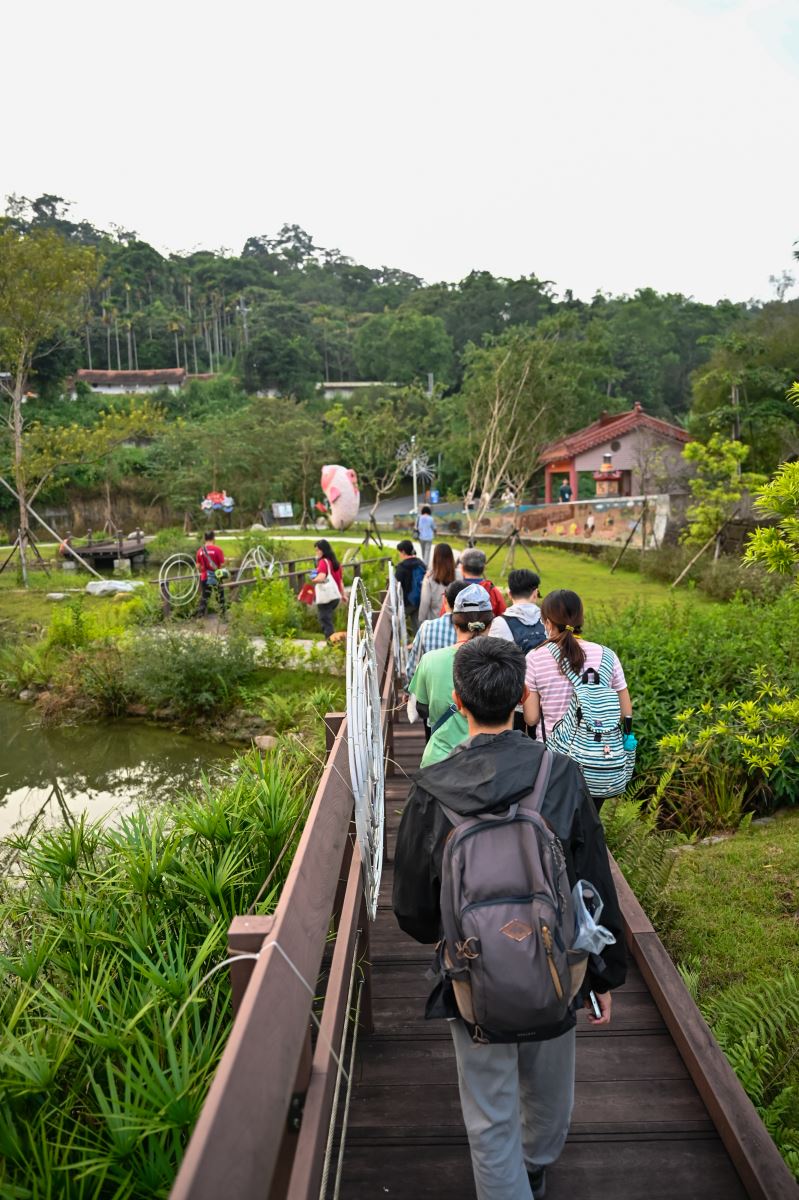 The morning of the second day of the workshop was held indoors. Professor Kuang-Chung Lee from National Dong Hwa University shared his experience of visiting and learning from the Satoyama sites in Japan. Nantou and Taichung District Offices of the Forestry and Nature Conservation Agency were invited to explain about the planning and implementation of Taiwan Ecological Network in the western and central parts of Taiwan. Six local partners from TPSI-W (Yangquan Charity Foundation, Shihu Friendly Farming, Hushan Community, Fuzhou Community, Experimental Forest Management Office Shuili Forestry Area, and Mabihao Tribal Development Association) shared their experiences in maintaining traditional culture and promoting eco-friendly farming. In the afternoon, the participants visited Hushan Community in Douliu City, Yunlin County. It was originally a small settlement in the Douliu Hills and after the completion of the Hushan Reservoir, has been actively participating in local forest restoration (including eco-tree climbing) and Snake-eating Turtle conservation.