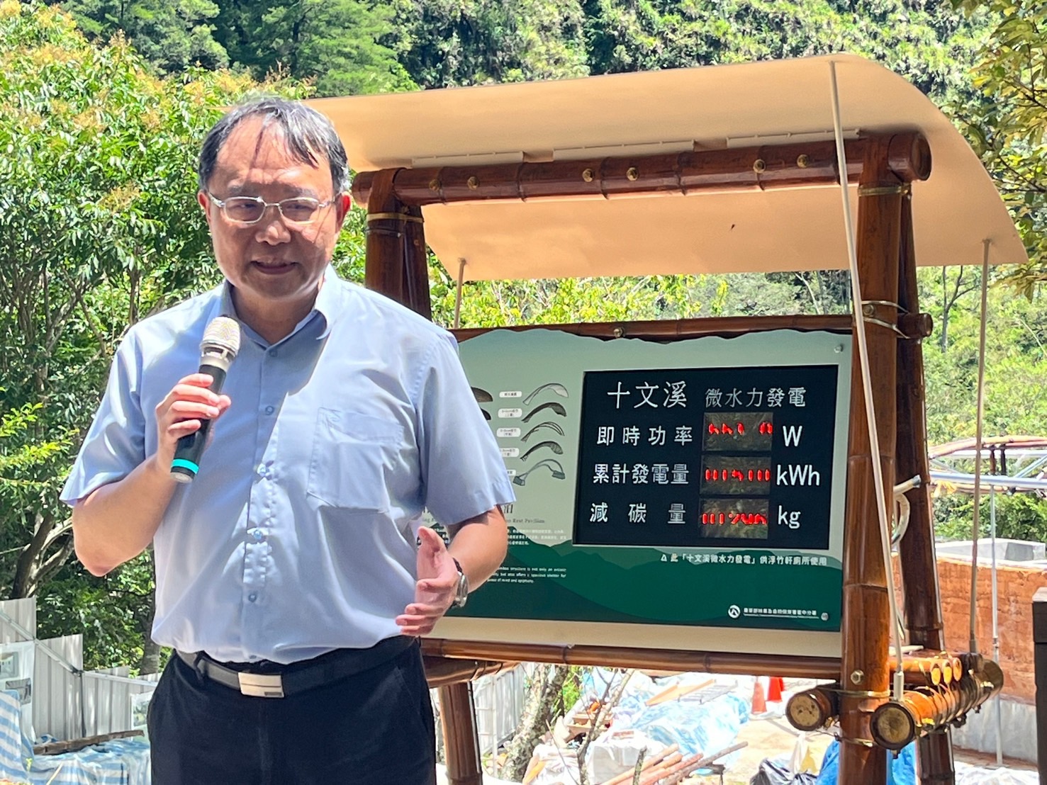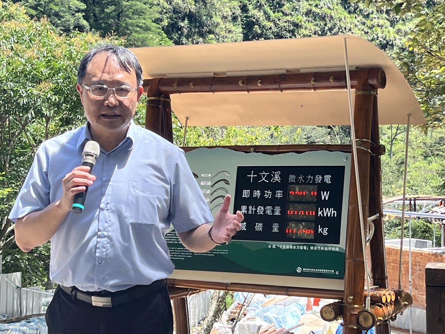 Chang Hung-Yi, Director of the Taichung Branch of the FANCA, said that this micro-hydroelectric power generation facility in the Basianshan Forest Recreation Area not only minimized the disturbance to the environment and reduced the impact on the surrounding habitats during its construction process, but also provides a stable supply of electricity according to the water flow and allocation mechanism, independent of the weather. This not only saves energy and is environmentally friendly, but also showcases the resilience of contemporary sustainable green energy. The Taichung Branch further stated that already in the 10th year of the Taisho era (1921) during the Japanese colonial period, a power plant was set up next to the Shiwen River, which has abundant water, to supply electricity for the operation and lighting of the three timber tramways and timber factories in Basianshan. After a century, the water in Shiwen River is still abundant with uninterrupted flow throughout the year, which makes it an optimal site for the construction of a hydroelectric power plant. To effectively utilize renewable energy, a small, decentralized, and environmentally friendly micro-hydroelectric power plant is used, with a generating unit capacity of 2.4kW, while the power generation efficiency is estimated to reach a maximum of 5,500 kWh per year. The power generation process is zero-waste and zero-carbon emission, which, when calculated based on the carbon dioxide emissions coefficient, can reduce carbon emissions by approximately 2.7 tons per year, truly achieving the goal of net-zero carbon emissions.