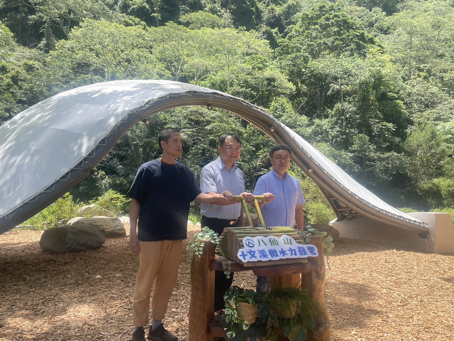 The Taichung Branch of the Forestry and Nature Conservation Agency (FANCA) has utilized the hydraulic head of the Shiwen River in the Basianshan Forest Recreation Area to build a micro-hydroelectric power plant with an annual power generation capacity of approximately 5,500 kWh. The power generated is used for public facilities such as the bamboo art toilets and eco-pond lighting, which will reduce carbon emissions by more than 2.7 tons annually, making it the first hydroelectric green energy demonstration site within a national forest recreation area in Taiwan.