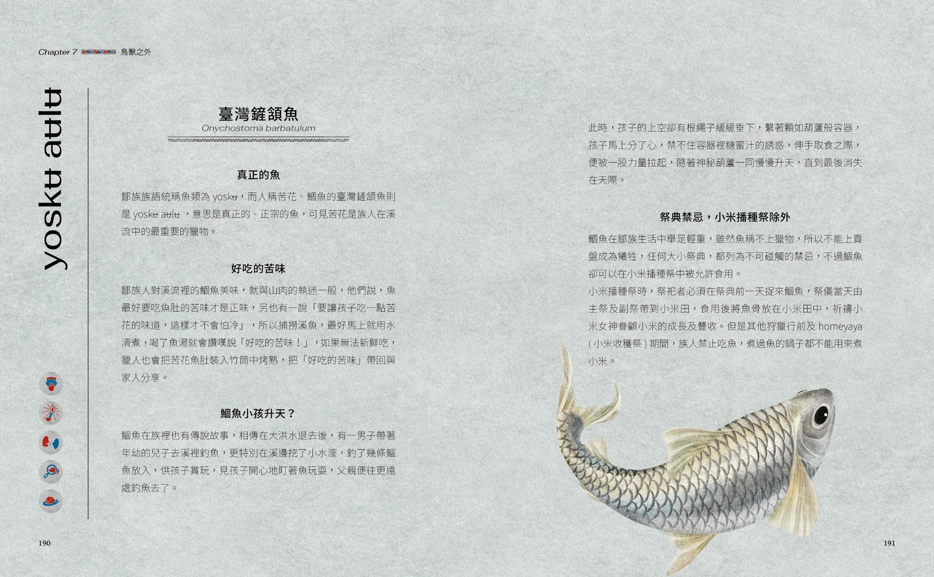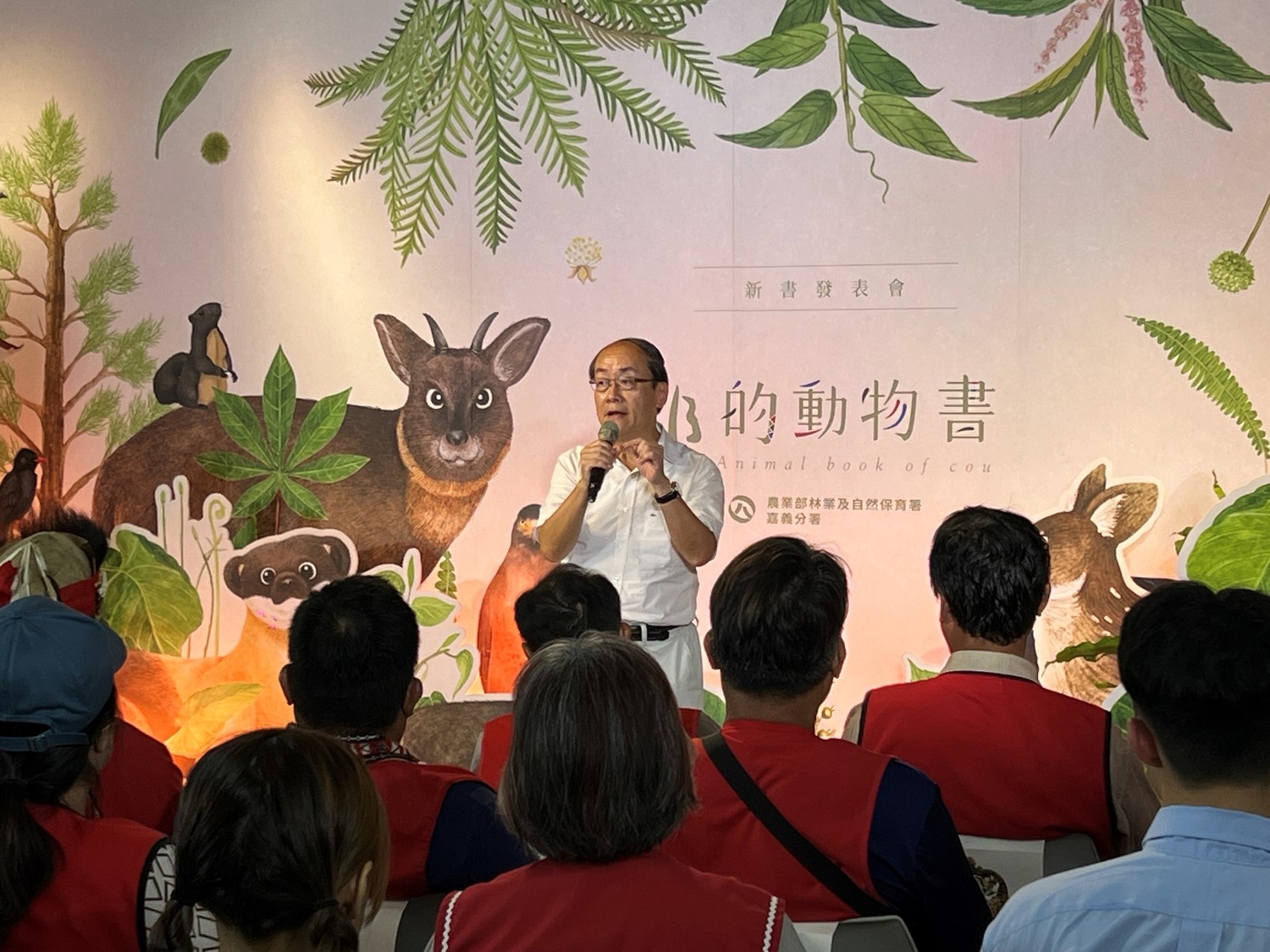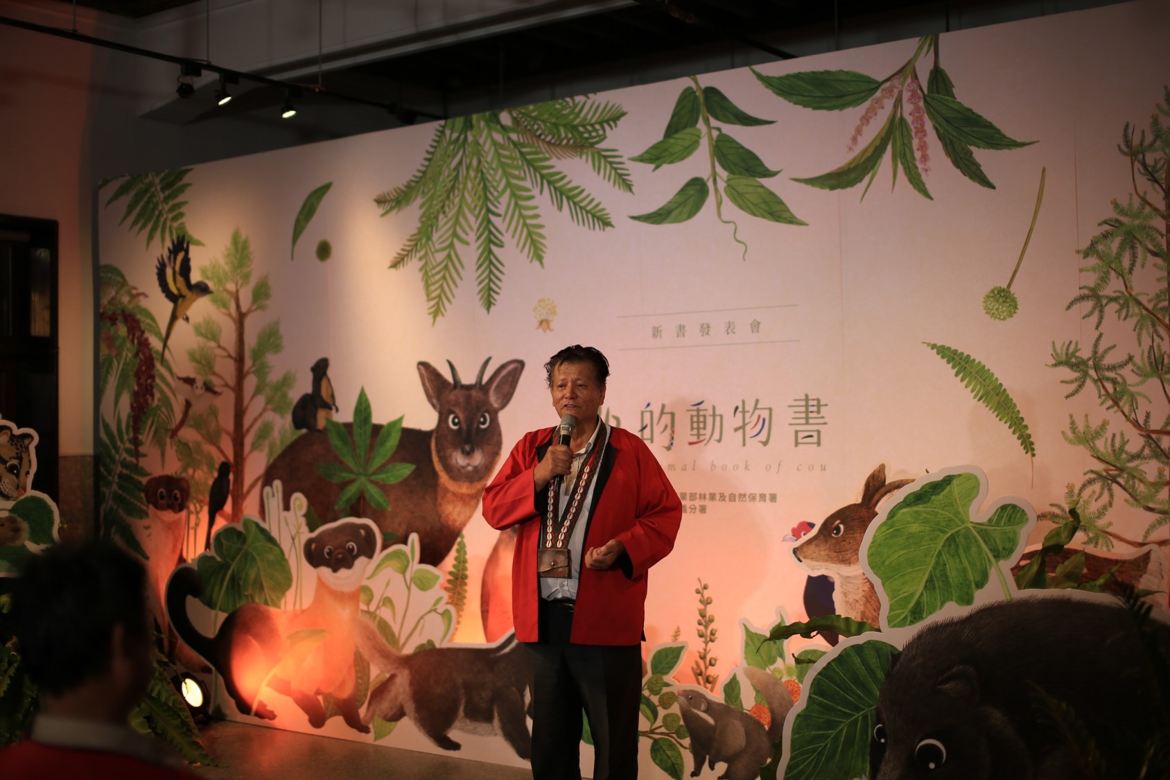 The Chiayi Branch of the Forestry and Nature Conservation Agency (FANCA) held a book launch for the Animal Book of Cou at the Creative Space of the Songshan Cultural and Creative Park. Following the Plant Book of Cou, this marks the release of another book in a book series that is passing down the Cou people’s legacy of traditional ecological wisdom. In addition to fascinating and vibrant animal myths and stories, the book’s exquisite illustrations and beautiful editorial design take readers deeper into the world of Cou ethnozoology to experience the Cou’s ecological wisdom of coexisting with animals in a sustainable manner. At the launch, Cou elder Avayi‧Yatauyagana shared his experience of data collection and conducting interviews, and described the animal stories through the detailed observation of the Cou. For example, the Cou know that the pangolin will curl up when frightened and should never be worn around the neck. The Chiayi Branch used this as a selling point to design a pangolin-patterned sports towel to symbolize the potential danger of not understanding animal behavior. To echo the wisdom of the Cou people who use the grey-cheeked fulvetta for bird divination, a bookmark with the Chinese character for “Fortune” centered around the grey-cheeked fulvetta was specially designed for the book launch ceremony to symbolize that reading the book will bring good fortune. The Chiayi Branch has continued to promote co-management collaboration with the Cou people. The Chiayi County Cou Hunter Association, established in 2018, regulates hunters through traditional hunting rituals and taboos. They also implement a hunting self-management program to imbue Cou hunters with the willingness to manage the hunting grounds and use animals without outside supervision. All of these are reflected in the Animal Book of Cou. At the launch, Cou singer Yinguyu Yatauyungana was invited to perform two songs, “The Hunting Ground” and “Encounters with a Boar”. The event catering was also inspired by the animals in the book, including creative dishes such as bird-feather shaped biscuits representing the hunter’s medals and savory cakes with boar, which linked the “animals of the Cou” to the dining experience. The Animal Book of Cou is the essence of Cou ethnozoology, reflecting the perceptions, understanding, and traditional wisdom of the Cou people in their interactions with animals. These include the sharing the culture of the iconic boar, the black-necklaced scimitar babbler that chimes the time, the hide-tanning legend related to the Formosan sambar deer and the nsoana fountain, and many other exciting Cou animal tales waiting to be discovered by the readers.