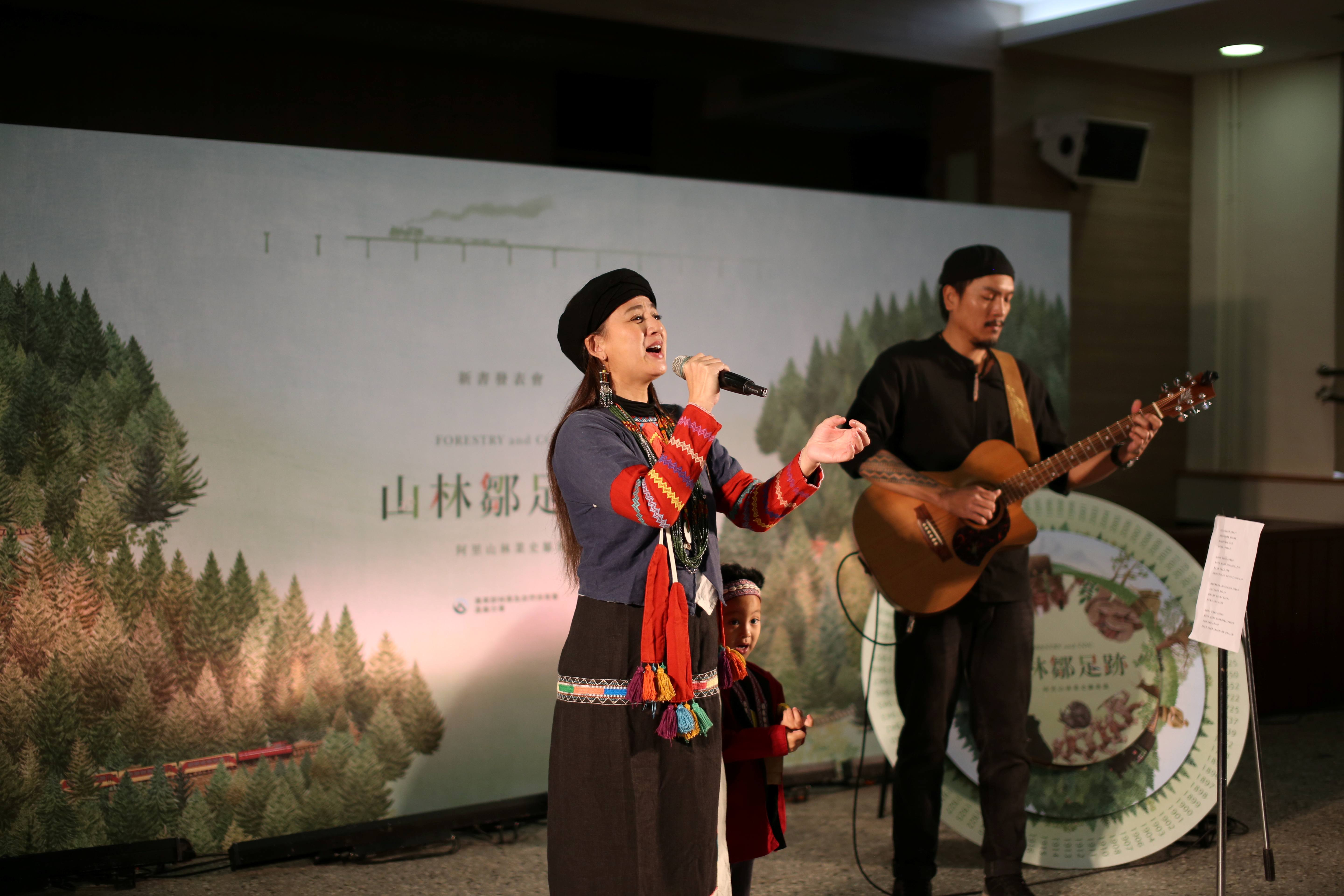 The book launch kicked off with a Tsou blessing ceremony, followed by a performance by Tsou singer Yinguyu Yatayungana of the ever-popular songs “Song of Tashan” and “Mountain Train.” Tsou Elder Avayi Yadauyungana talked about Alishan forestry and the Tsou based on the Tsou people’s perspectives and history, which offered an alternative angle from which to examine the past and the present. Creative cuisine dishes were also offered, where the designs of the dishes were inspired by the Tsou’s sacred flower - fiteu, the Tsou language, and plants mentioned in the book. These included the wooden tower representing the under-forest economy, the plant biscuits printed with the Tsou language, and the cake shaped like the fiteu. Culinary language was used to highlight the close relationship between the Alishan forestry and the Tsou people.
