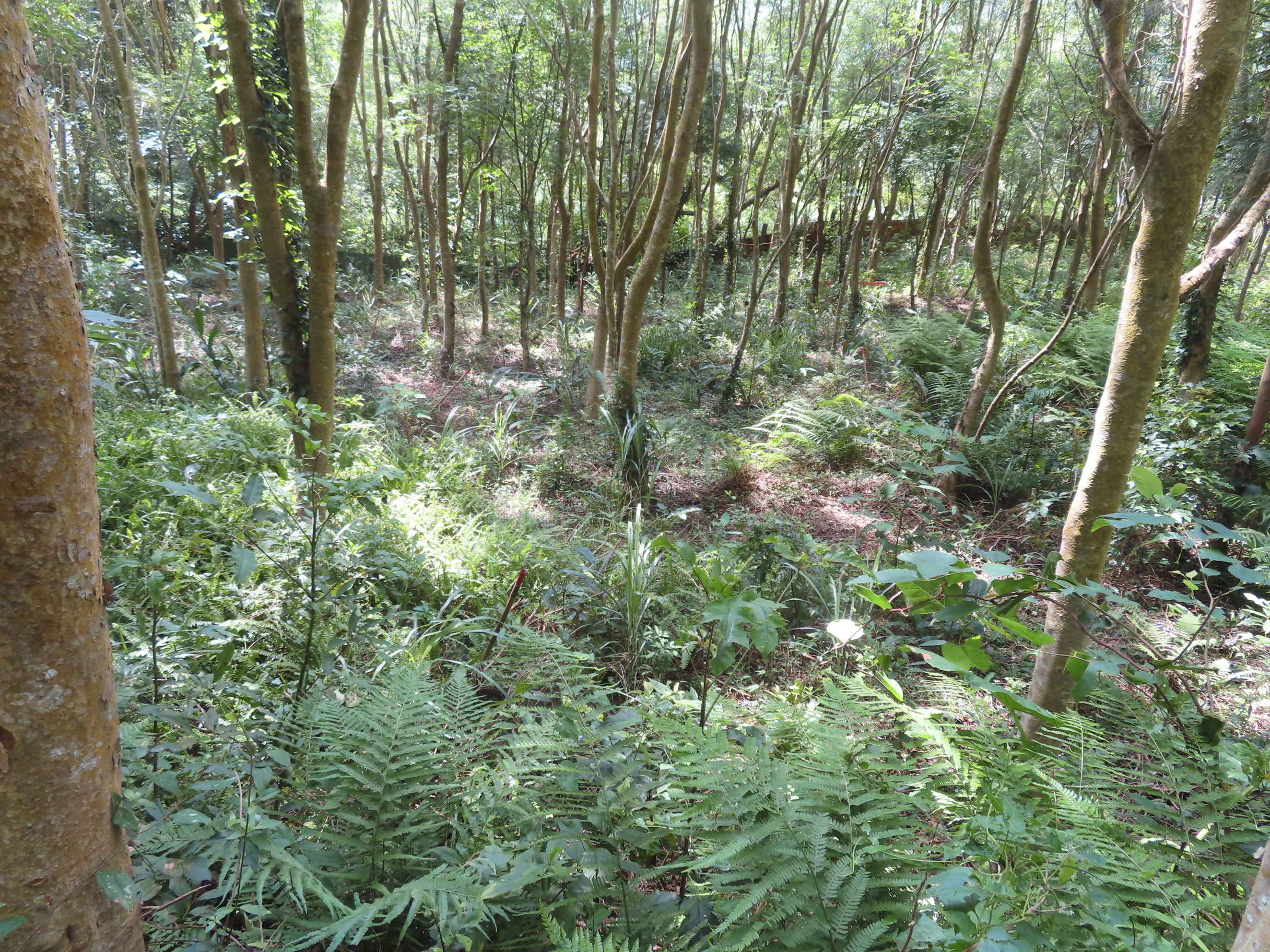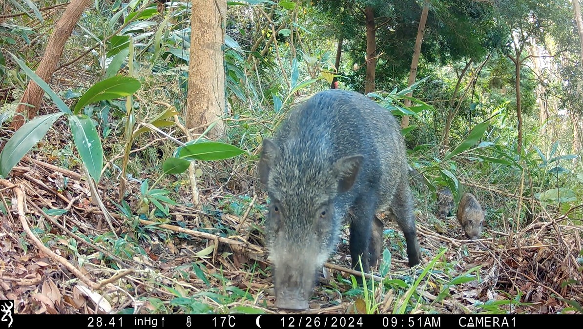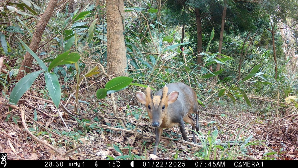 To enhance the ecological functions and biodiversity of plantation forests, the Hsinchu Branch of the Forestry and Nature Conservation Agency (FANCA Hsinchu) has actively promoted forest structure optimization and habitat enhancement for wildlife in recent years. Since 2023, efforts have been underway in the 6th forest compartment of the Da’an River Working Circle near Xingde Temple in Sanyi Township, Miaoli County. A strategy of vertical stratification and site-based planting has been adopted, incorporating a variety of native and ecologically functional plant species in the understory and canopy gaps. Through vertical stratification through multi-layered planting design, the forest’s heterogeneity and biodiversity have been comprehensively enhanced in terms of vegetation structure, food resources, shelter conditions, and breeding environment. It filled the structural gaps between the understory and open areas in the canopy or forest floor, gradually transforming the once biodiversity-depleted afforestation site into a more natural and vibrant forest, where wildlife is more likely to thrive. The FANCA Hsinchu stated that the site was originally an illegally occupied orchard, which was later reclaimed and converted into afforestation land, with reforestation efforts ongoing for over a decade. The main tree species planted are Formosan ash (Fraxinus griffithii), Taiwan incense cedar (Calocedrus formosana), and green maple (Acer oliverianum var. nakaharai). The trees grow well, gradually forming a dense forest. However, the understory vegetation is monotonous and sparse, and lacks shelter, food sources, and a diverse structure to effectively support the habitat and reproduction needs of a wide variety of wildlife. To address this, FANCA Hsinchu launched an “understory enrichment” initiative in 2023. In addition to retaining existing native tree species, native shade-tolerant shrubs such as cape jasmine (Gardenia jasminoides), orange jessamine (Murraya paniculata), and coralberry (Ardisia polysticta) were selected for planting in the understory space. The dense branches and leaves offer good shade and shelter, with two to three plants planted in clusters according to the actual local environment to quickly form shrubbery to act as a hiding space for wild animals. The aim is to create a suitable environment for ground-active mammals such as Formosan masked palm civets and Formosan ferret-badgers, or small birds such as Swinhoe’s white-eye, where they can forage, move around, and even build nests. The fruits of these colorful shrubs, whether berries or drupes, are favorites of birds. The sweet and tasty fruits of the orange jessamine and coralberry especially attract many frugivore birds and wildlife to stop and savor the fruits, which indirectly assists in seed dispersal and forest regeneration. In addition, the planting of small native trees, such as common elaeocarpus (Elaeocarpus sylvestris) and Formosan magnolia (Magnolia compressa), in the forest gaps also strengthens the vertical layers of the forest and forges pathways for tree-climbing animals like Pallas’s squirrels. The trees autumn and winter fruiting characteristics also provide a stable source of food for wildlife during the resource-scarce seasons. After more than a year of building and installation of automatic infrared cameras, a number of wildlife species have been recorded. These include groups of Formosan wild boars, as well as typical small carnivorous mammals found in low-elevation mountain areas, such as Formosan masked palm civets, Formosan crab-eating mongooses, and Formosan ferret-badgers; as well as medium and large-sized birds that prefer moving on the ground, such as Swinhoe’s pheasants, Taiwan bamboo partridges, and Malayan night herons. What’s more exciting, leopard cat excrement was also found at the site, indicating that this area is gradually becoming a safe habitat for wildlife. These creatures’ “homeward imprints” appearing on-site bear witness to changes in the forest—there are now fruits to eat, shade to hide in, and layers to live in. The structure of the forest has been enhanced in tandem with the diversity of resources. Such habitat optimization results bear great significance to wildlife conservation in the national forests connected to hills of low-elevation mountains. The FANCA Hsinchu stated that well-managed plantation forests not only function as carbon sinks, but also offer ecological value in the support of biodiversity through structural optimization and understory management, becoming a steady and vibrant green base in the mountains and forests. Contemporary forestry management is no longer limited to afforestation and timber production, but advances towards a new direction that places equal emphasis on ecological conservation and sustainable development. The FANCA Hsinchu continues to combine the scientific principle of “site-based suitability” with local experience to actively promote the improvement of forest habitat structure as an important strategy to enhance forest resilience and promote biodiversity conservation. The FANCA Hsinchu will also continue to review the current status of afforestation land within its jurisdiction, and adjust more flexible habitat creation plans based on previous implementation results and field feedback. It will also further expand the composition of supplementary plant species, including native tree species, such as Asiatic ardisia (Ardisia quinquegona), oriental white oak (Quercus aliena), dark-spotted cherry (Prunus phaeosticta), Formosan beauty-berry (Callicarpa formosana), thick-scaled oak (Quercus pachyloma), and ring-cupped oak (Quercus glauca). Through these ongoing and forward-looking efforts, FANCA Hsinchu aims to transform conventional plantations into multifunctional forests that integrate ecological, economic, and cultural values. These forests will not only provide safer, more stable habitats for wildlife but also fo