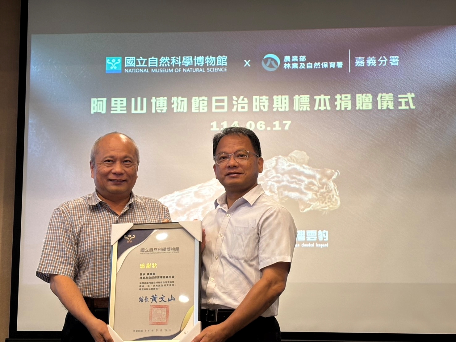 To promote academic research and specimen resource sharing, the Chiayi Branch of the Forestry and Nature Conservation Agency (FANCA Chiayi) officially donated a batch of precious specimens to the National Museum of Natural Science on June 17. A simple but stately donation ceremony was held at the National Museum of Natural Science, where the two parties signed a donation contract and a memorandum of cooperation, demonstrating the synergistic effects of joint academic research and maintenance of collections. Donation of Clouded Leopard Specimens: Exploring the Historical Literature of Alishan Director Lee Ting-Chung of FANCA Chiayi, said that these specimens were originally displayed as part of the collection of the Alishan Museum in the Alishan National Forest Recreation Area. However, due to the impact of the 1999 Chi-Chi earthquake, the collection was severely damaged. At the time, to properly preserve these valuable collections, some of the specimens were entrusted to the National Museum of Natural Science for preservation. Director Lee also mentioned that this event marked the formal donation of these specimens to the museum, which was not only significant due to their historical, scientific, and academic research value, but also because it represented the spirit of cross-institutional cooperation, adding that FANCA Chiayi looked forward to deepening the partnership with the National Museum of Natural Science through this donation, working together to explore the historical literature of Alishan. The National Museum of Natural Science also indicated that it will properly preserve and utilize these specimens to maximize their benefits, and continue to promote the sharing and application of specimen resources. The donated specimens include one clouded leopard, 114 birds, and 12 mammals. Among them, the clouded leopard is a special specimen among the few existing clouded leopard specimens in Taiwan and has considerable academic value. In the future, the National Museum of Natural Science will carry out 3D digital scanning of the clouded leopard specimen and create digital image data of the specimens to facilitate subsequent related professional research and exchanges on specimen preservation techniques. Through the donation contract and memorandum of cooperation signed by both parties, FANCA Chiayi and the National Museum of Natural Science will carry out long-term cooperation in the areas of specimen research and utilization, as well as conservation education and promotion in the future, creating a win-win situation.