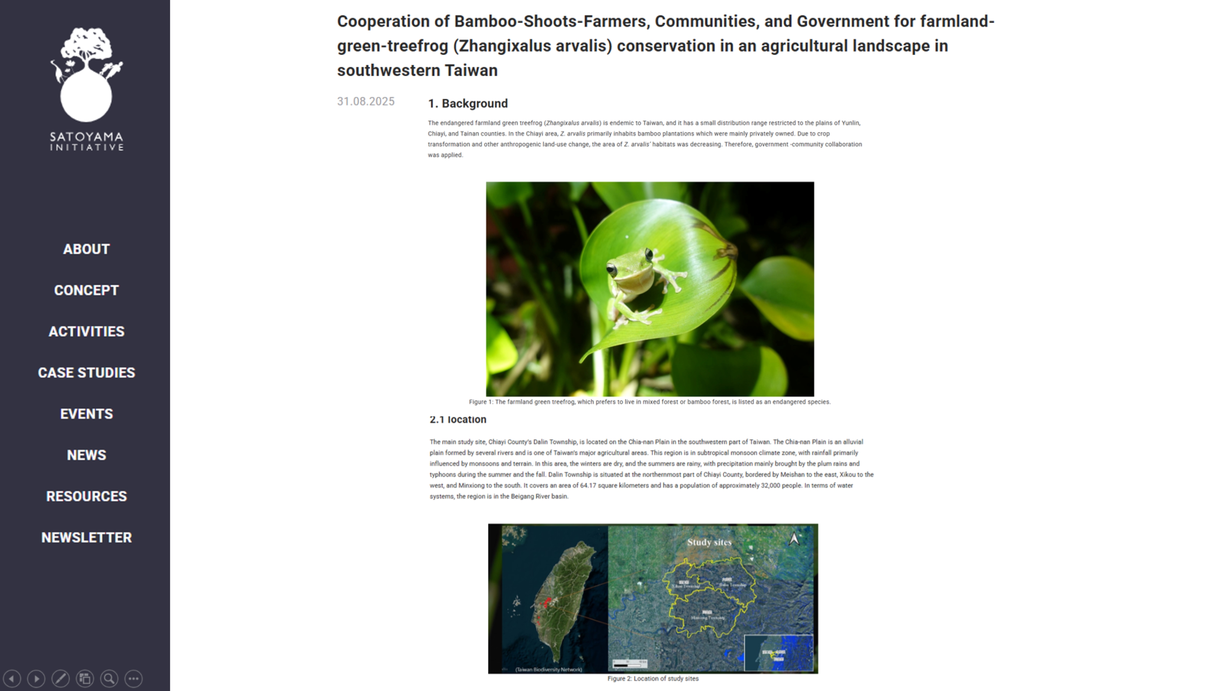 The Chiayi Branch of the Forestry and Nature Conservation Agency (FANCA Chiayi) has been actively promoting the conservation and habitat preservation of the farmland green treefrog (Zhangixalus arvalis), a species endemic to Taiwan. After years of dedicated work with local farmers and communities, as well as the launch of the “Farmland Green Treefrog Label” and assisting farmers to establish a cooperative, FANCA Chiayi submitted two case studies detailing this journey to two globally renowned ecological and sustainable development platforms for sharing case studies: Solutions for a Healthy Planet (PANORAMA) and International Partnership for the Satoyama Initiative (IPSI). Both submissions were published recently, successfully showcasing Taiwan’s endemic species conservation experience on the international stage. The story of the farmland green treefrog has not only moved the hearts of people in Taiwan but is now captivating audiences on the global stage. FANCA Chiayi explained that since 2018, it has been promoting habitat restoration and community conservation efforts for the rare endangered farmland green treefrog. As the farmland green treefrog is endemic to Taiwan and is also an ecological symbol of the Chiayi region, FANCA Chiayi has worked closely with local communities, farmers, and various agencies to introduce eco-friendly farming concepts and various conservation initiatives in areas such as Dalin, Xikou, and Minxiong of Chiayi County. FANCA Chiayi documented this journey into two thematic case studies and submitted them to two internationally renowned platforms. PANORAMA is a global platform jointly promoted by multiple multinational organizations such as the International Union for Conservation of Nature (IUCN) and the United Nations Environment Programme (UNEP). It is dedicated to collecting and promoting inspiring and actionable solutions for environmental and sustainable development. FANCA Chiayi’s case studies highlight the initial stages in the conservation of the farmland green treefrog in Dalin Township, Chiayi County. Through resilience assessment, they identified issues related to community sustainability and guided the community to utilize external or internal resources for improvement, while simultaneously protecting the farmland green treefrog, a species of concern to the community. The publication of this case study on the PANORAMA platform signifies that Taiwan’s local practices have gained international reference value, demonstrating a “from local action to global impact” model. The other case study, published on the IPSI platform, focused on the conservation of the farmland green treefrog on a broader agricultural landscape scale. Given the species’ high dependency on farmland, conservation efforts must incentivize farmers to continue planting bamboo shoots, linking fields into a green network, and then connecting farm to table through a human network. The bamboo shoots are sold to reward farmers for their efforts in conservation. FANCA Chiayi, together with bamboo shoot farmers in the Chiayi region, launched the “Farmland Green Treefrog Friendly Habitat Management Label.” Guidance was provided to the Chiayi County Farmland Green Treefrog Friendly Fruit and Vegetable Production Cooperative to market these high-quality and eco-friendly certified bamboo shoots to consumers. Through this approach that benefits both conservation and agricultural economy, the spirit of the Satoyama Initiative can be put into practice, embodying “harmony between man and nature.” IPSI is an important international partner network under the framework of the United Nations Convention on Biological Diversity (CBD), bringing together governments, research institutions, non-governmental organizations, and community groups around the world to jointly promote the Satoyama Initiative. The case studies collected by the platform emphasize local wisdom and multi-party cooperation. The case study of FANCA Chiayi demonstrates Taiwan’s concrete practices in promoting this initiative and allows its successful experiences to echo around the world. FANCA Chiayi stated that having the conservation efforts for the farmland green treefrog featured on the two major international platforms, PANORAMA and IPSI, signifies that Taiwan’s biodiversity management model has gained international recognition. It not only demonstrates the policy-driving force of government departments, but also reflects the achievements of community, farmers, and civil society participation. FANCA Chiayi will continue to deepen its partnerships with local communities, promote eco-friendly farming and habitat restoration, and maintain international connections to share Taiwan’s experience with the world. FANCA Chiayi also called on the public to support environmentally friendly agricultural products, becoming a part of conservation through consumption. By recognizing the bamboo shoots with the small Farmland Green Treefrog Label as a starting point, everyone can play a part in connecting the hard work of farmers, the enthusiasm of the community, and the sustainable future of the Earth.