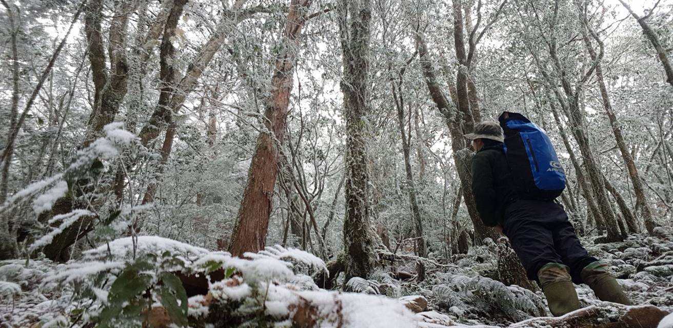 近日受強烈大陸冷氣團影響,全台明顯感受到低溫,海拔2,000公尺左右的宜蘭山區也於夜間到清晨降下瑞雪,林務局羅東林區管理處森林巡護人員於寒風中騎乘機車進行日常巡護工作,確保林地護管工作不間斷,雖然面對寒冷環境,仍堅守保護山林使命感,努力不懈怠。 林務局為保護國有林森林資源,由森林護管人員定期執行一般巡視工作,近日受強烈大陸冷氣團影響,宜蘭山區入夜零下氣溫偶降瑞雪,白天高溫也不超過攝氏5度,因山區水氣重,樹梢因凝結霧淞成銀白世界,森林巡護人員仍不畏寒冷,執行日常巡護工作。林務局羅東林區管理處負責太平山事業區巡護工作同仁李孝勤表示,因一般道路有多結冰,林道路面更為泥濘,於騎乘機車時需格外小心,要做好禦寒保暖準備,以確保執行勤務時自身及行車安全。 羅東林區管理處轄管19萬9千公頃林地,巡護人員每人需負責面積2000餘公頃林地,工作量極為吃重,即使面對寒凍氣候,風險性高的山林工作場域,因為一份熱愛山林、守護山林的神聖使命感,讓同仁都能勇敢面對自己工作中的困境,努力不懈怠。 本案聯絡人 羅東林區管理處林政課 課長 曾美英 (03)954-5114分機151