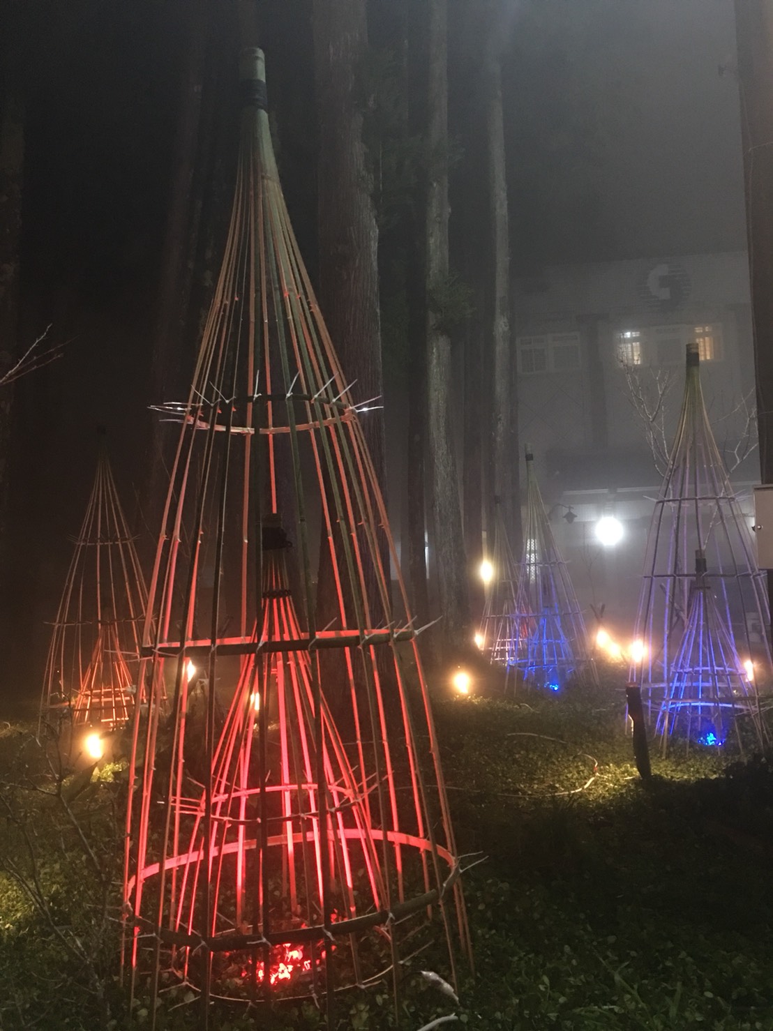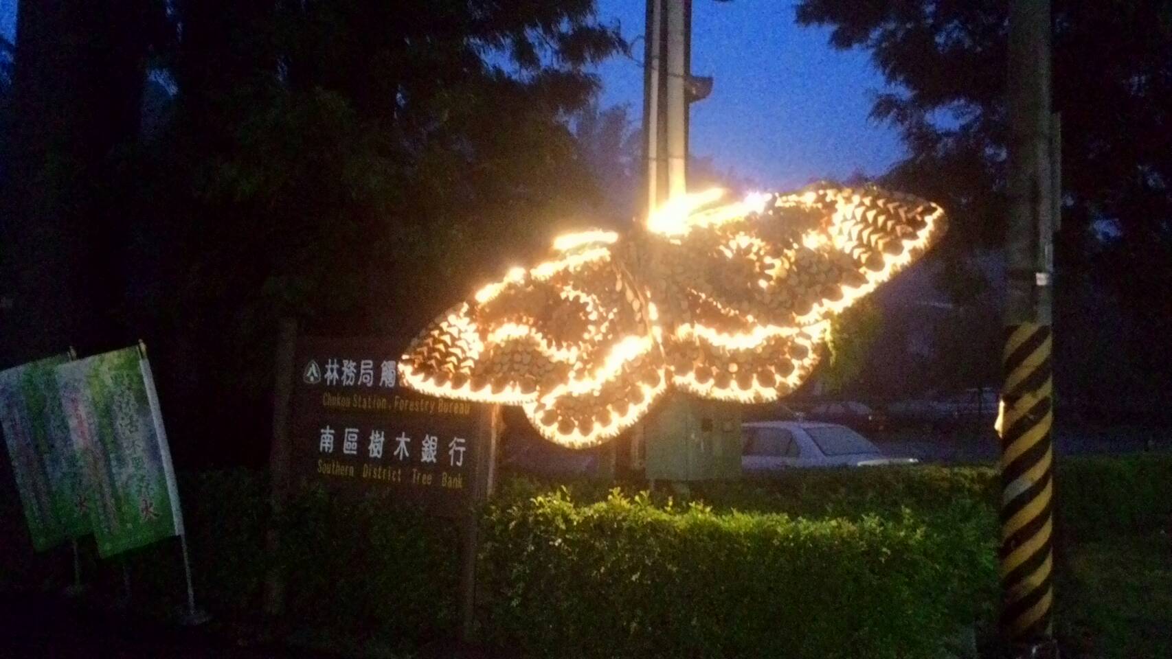 嘉義林區管理處於107年3月1日晚上6時在觸口樹木銀行大門前辦理點燈活動,邀請周邊社區及小學師生、國家森林志工參加,同時認識夜蛾森態。嘉義林區管理處配合2018臺灣燈會在嘉義,於107年3月1日至4月10日在觸口樹木銀行前及阿里山國家森林遊樂區旅客服務中心右前方的綠地、香林服務區展出利用國產竹木材製作的裝置藝術,並在當晚點燈活動利用臉書的直播功能,同步辦理點燈活動! 蛾來綠意閃發亮,嘉義處邀請社區與小學共同守護森林環境!! 今晚的點燈活動現場除了主要的「枯球蘿紋蛾」藝術裝置外,還有嘉南地區社區林業成果,讓觸口不僅是進入阿里山的門戶,更是社區和教育共同守護森林的平台。點燈活動由嘉義處國家森林志工的陶笛與口琴表演開場,由黃妙修處長、燈會藝術裝置製作人-鄧同敬總幹事、不舞˙阿古亞那、謝錦文、嘉義處國家森林解說導覽志工隊王森林隊長等人共同點燈,阿里山國家森林遊樂區透過臉書直播方式同步點燈,呼應嘉義縣燈會的科技嘉藝之主題。嘉義處並邀請觸口樹木銀行周邊小學35名師生和9個社區、來賓參加「夜訪蛾森態」森態的觀察活動,讓小朋友度過一個不一樣的元宵活動。 國產材神蛾,觸口自然教育中心帶您認識樹木與昆蟲!! 觸口自然教育中心綠意館位於台18線29K處,是進入阿里山地區的入口,嘉義林管處觸口工作站設置於此,兩旁分別為樹木銀行及觸口自然教育中心,是社區及小學進行生態學習的好去處。今年初春,有隻利用在地香杉、肖楠、菊花木、黃藤及五節芒花製成的枯球蘿紋蛾悄悄的停在入口的牌誌上囉! 除了枯球蘿紋蛾外,觸口樹木銀行門口左右的綠籬有30座同樣利用在地轎篙竹及木材製作的立燈,上面有阿里山低海拔環境會出現的蝴蝶、蜻蜓、松鼠、貓頭鷹及鳥類的圖案,並由嘉義縣番路鄉公興社區的竹編達人編織的轎篙竹燈罩,讓大家白天可以認識阿里山的木材及生態,晚上可以欣賞國產竹材的藝術之美! 燈耀香林滿山花,到阿里山國家森林遊樂區體驗不一樣的花季!! 阿里山國家森林遊樂區除了在香林服務區設置枯球蘿紋蛾意象的木材燈會裝置外,還同時集結嘉南地區社區林業社區的自然材料及手工藝品,呈現山林森活間的多元族群文化!在旅客服務中心右前方的綠地上,由來吉部落利用轎篙竹製成的大魚簍及小魚簍的組合展現鄒族8個部落生活在山林裡的鄒族部落意象和山豬王帶領各種動物活動的故事。香林服務區的樓梯有來自阿里山茶山社區的月桃編織、台南新化礁坑社區的錫蘭橄欖樹枝、十字社區的轎篙竹、箭竹、麻竹、孟宗竹、綠竹、桂竹,展現阿里山的聚落風貌及伐木時期各路人馬聚集的歷史過往。 嘉義林區管理處訂於107年3月1日下午6時,假觸口樹木銀行前辦理點燈活動,更多詳情請至「嘉南森活綠保寶家族」粉絲專頁(https://www.facebook.com/Greenforestry/)查詢!