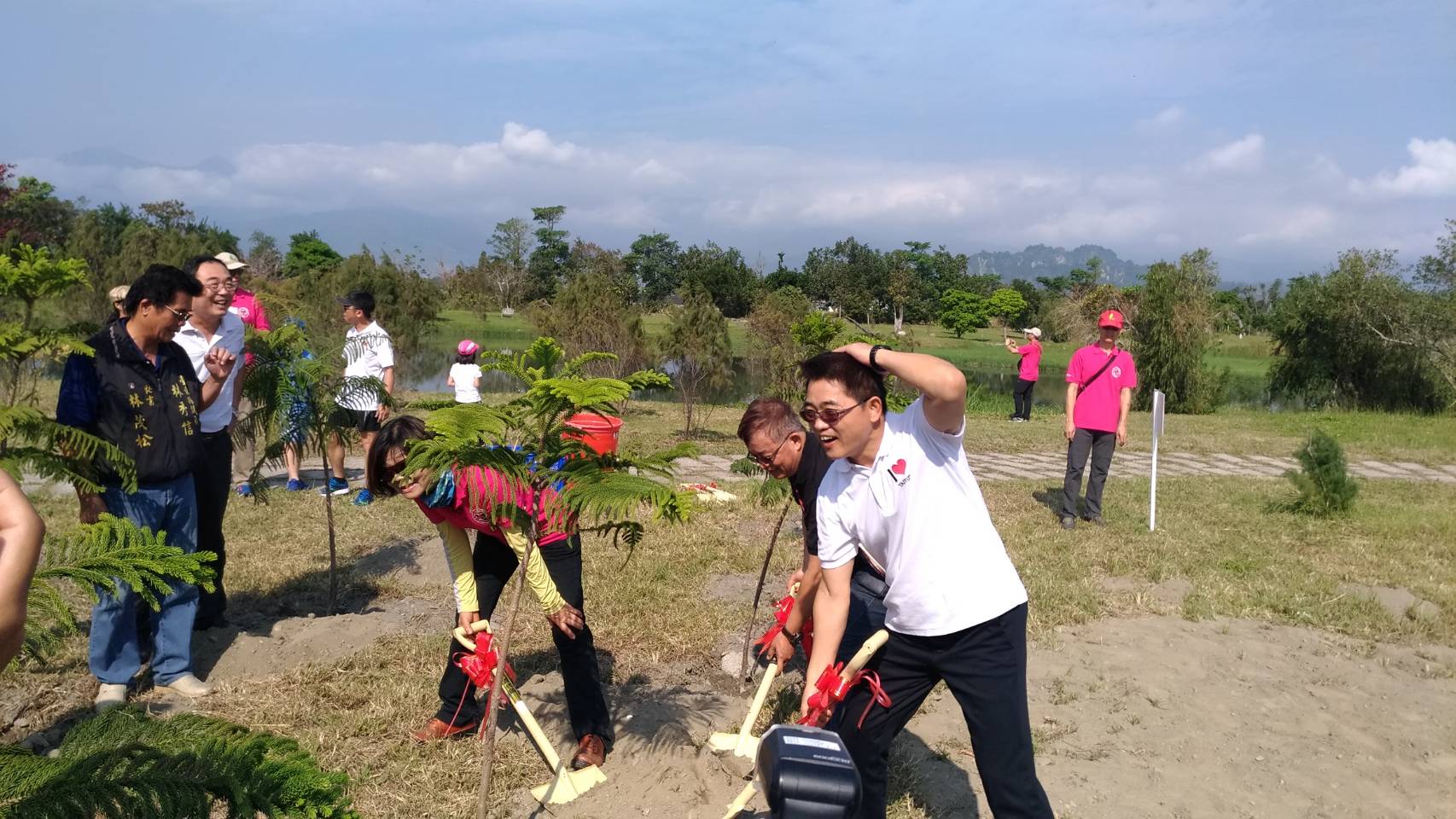 由於卑南溪守護著臺東市,所以今年的植樹護樹活動依然在臺東森林公園內舉辦,在臺東縣黃健庭縣長、臺東林管處劉瓊蓮處長、立法委員劉櫂豪委員、臺東縣議會饒慶鈴議長的共同帶領下,臺東西區扶輪社與現場大小朋友們共同種植小葉南洋杉、洋紅風鈴木、瓊崖海棠、白千層及白水木等5種共200棵林木,這些都是臺灣地區很重要的海岸種及景觀林木。此外,為讓林木生長良好,對林木照顧是非常重要的,因此主辦單位也針對106年植樹區的苗木邀請民眾架設防風支架、簡單修枝、除草和施肥等護樹工作,好讓苗木可以長得更健康,樹木才會茁壯成林,讓臺東森林公園這個在地重要的休閒地區更加綠意盎然,同時發揮森林公園治沙防塵能力,持續維持臺東居住品質。