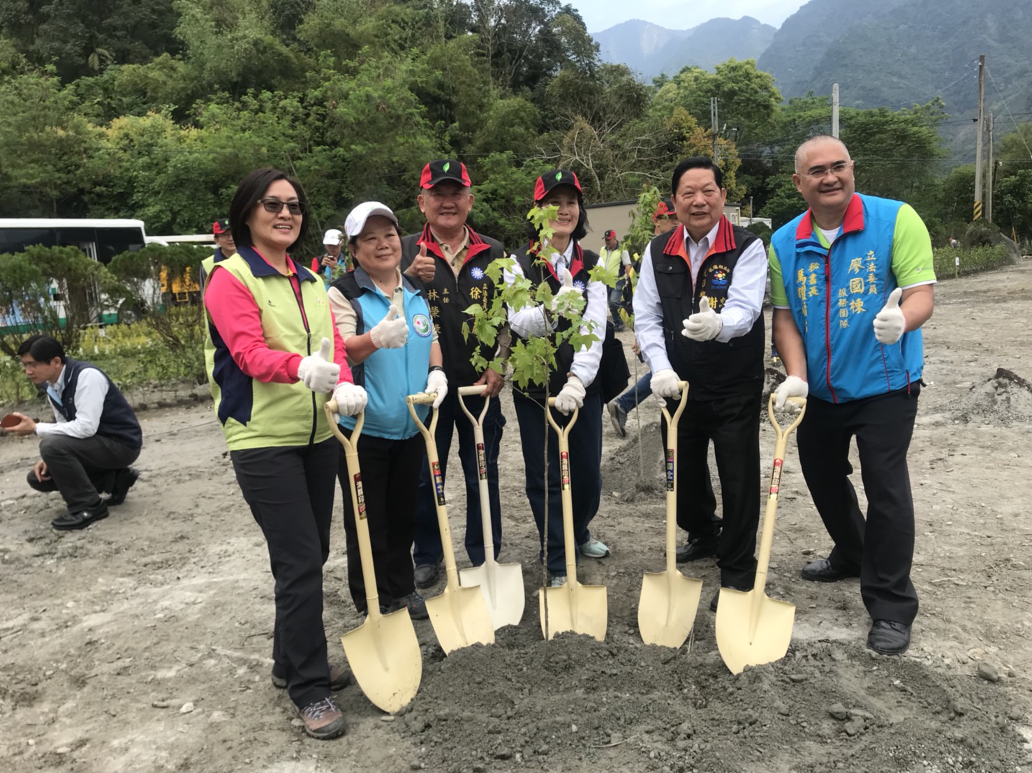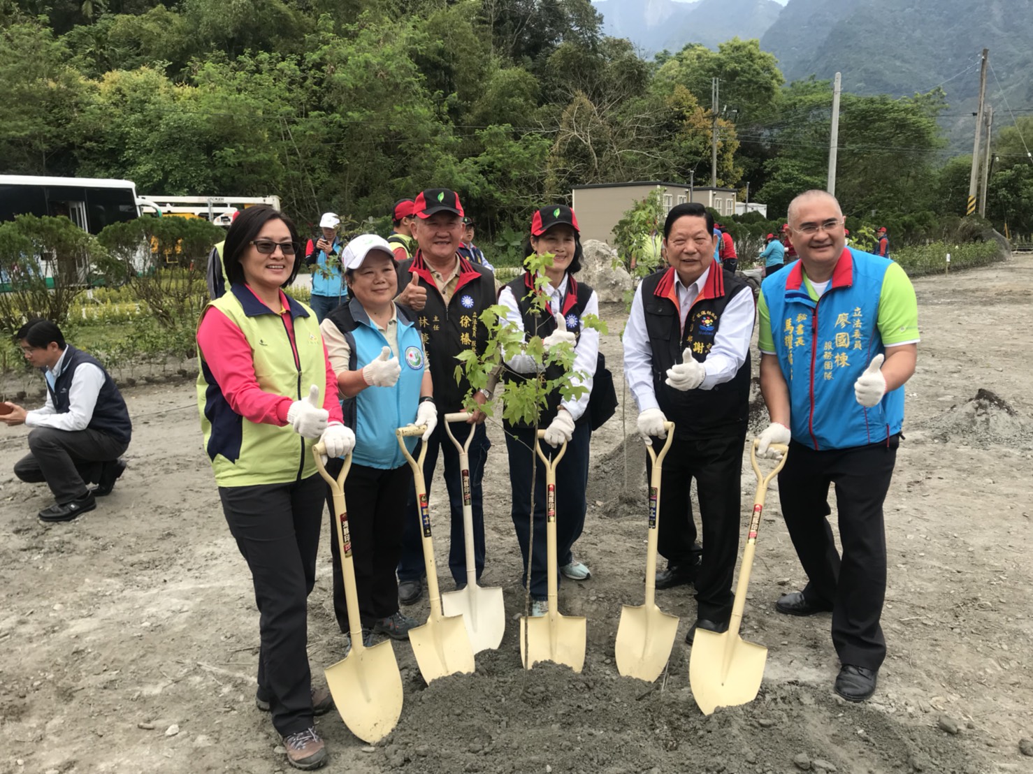 3月14日10時在光復鄉新興人氣景點—吉利潭,花蓮林區管理處與光復鄉公所聯合舉辦植樹綠美化活動,活動由林區管理處處長楊瑞芬主持,參與貴賓踴躍有徐榛蔚立委服務處主任林榮祿、孫春玉、蕭美琴立委服務處主任劉福英、谷辣斯尤達卡立委辦公室主任陳秀蘭、廖國楝立委秘書長馬耀福佑、張峻副議長服務處主任徐振雄、謝忠淵鄉長、水保局花蓮分局長陳淑媛、自強外役監典獄長吳信彥、台糖花東區處經理林样禎及光復地區各村長、高、國中小校長等,現場由貴賓及學生、社區及民眾約300人一起參與。 活動開始由婦聯會光復分會及馬可認協會的舞蹈表演中熱鬧展開,楊處長感謝水保局花蓮分局多年來投入經費改善吉利潭整體景觀,也感謝謝鄉長為光復鄉極力配合推動打造光復鄉「中糖廠、西馬太鞍、南森林園區、東拉索埃、北吉利潭」五顆珍珠景點。活動場地「吉利潭」是馬太鞍溪上游的天然湖泊,也是部落舉辦祈雨祭的地方,日據時代曾為儲木池,風景秀麗。近年來經水土保持局花蓮分局與光復鄉公所共同打造成為一個生態及景觀兼具的休憩景點。鄉長謝忠淵與水保局分局長陳淑媛感謝林管處用心規劃植栽美化,改善吉利潭環境景觀,大家一起成就共好。 每年3月是植樹月,花蓮林管處特別選在最適合種樹的季節,邀請民眾共同來植樹,林木種植於吉利潭二處,配合現地環境及景觀,規劃種植原生、蜜源及景觀植物,包括油桐、台灣欒樹、楓香、青楓、落雨松、含笑花、梔子花、樹蘭等,總計種植1,234株林木,面積約0.46公頃。現場由貴賓帶領學生及民眾親手栽種,讓吉利潭除具生態及友善環境景觀外,更增添四季景觀的色彩變化。林管處特別準備深受民眾喜愛,象徵長壽及富貴的茶花及桂花各300株送給參與活動的民眾,把長壽富貴帶回美化家園,並希望大家常回到吉利潭來看看自己所種下的樹種一起養護,讓馬錫山下的明珠有了四季色彩變化後能更閃亮。