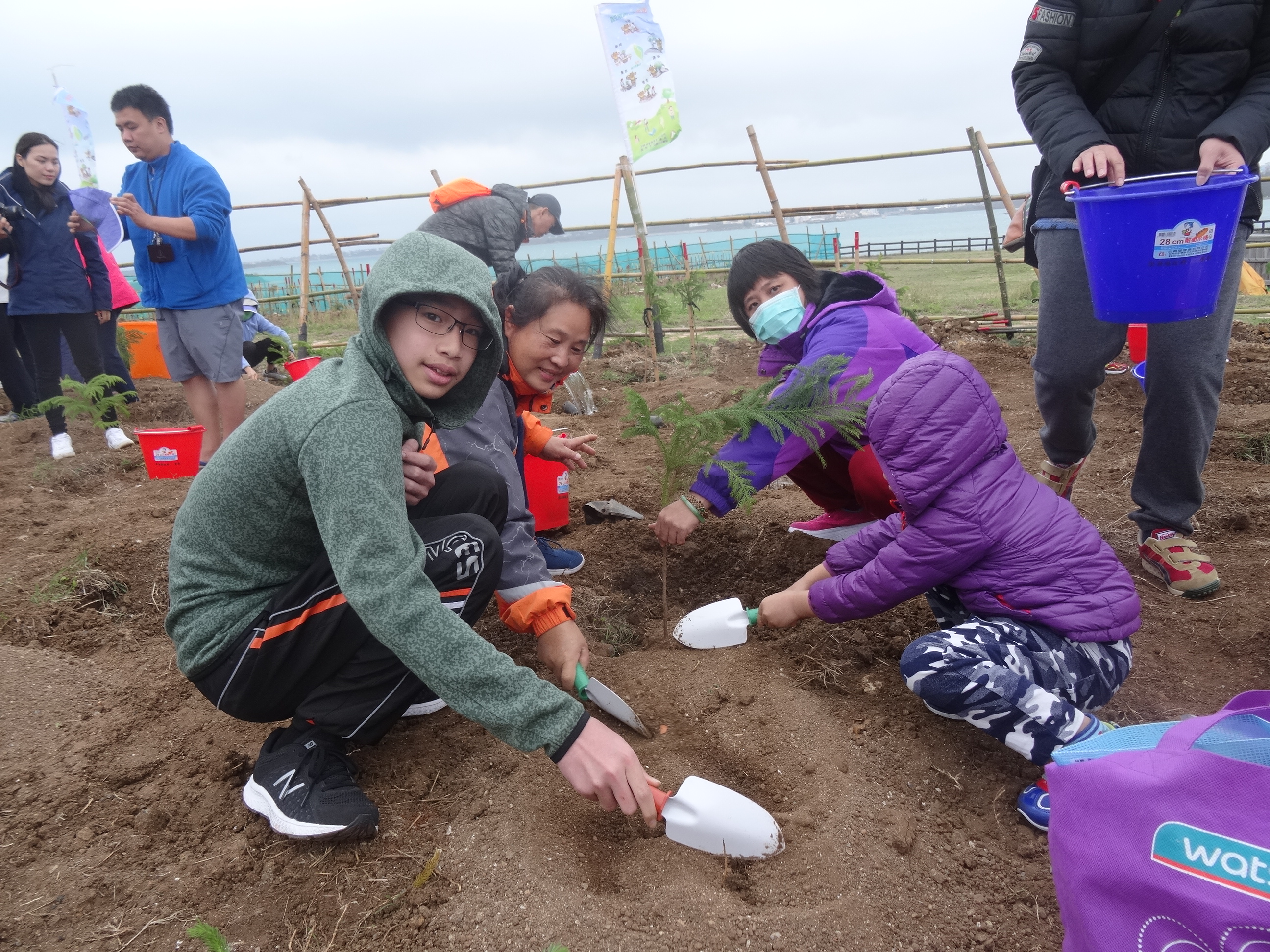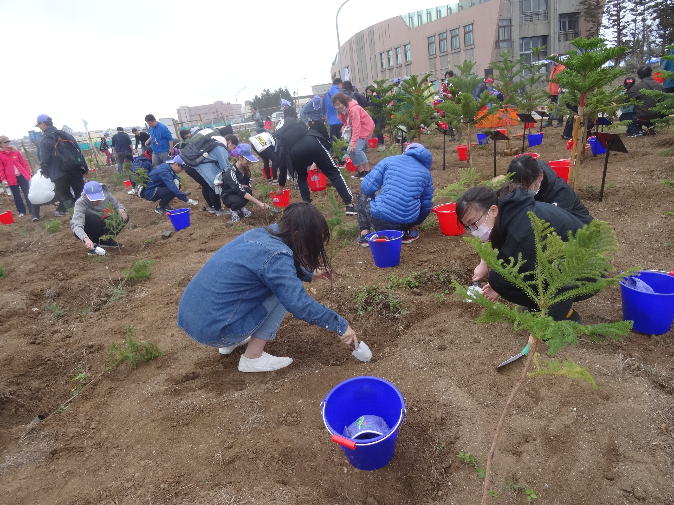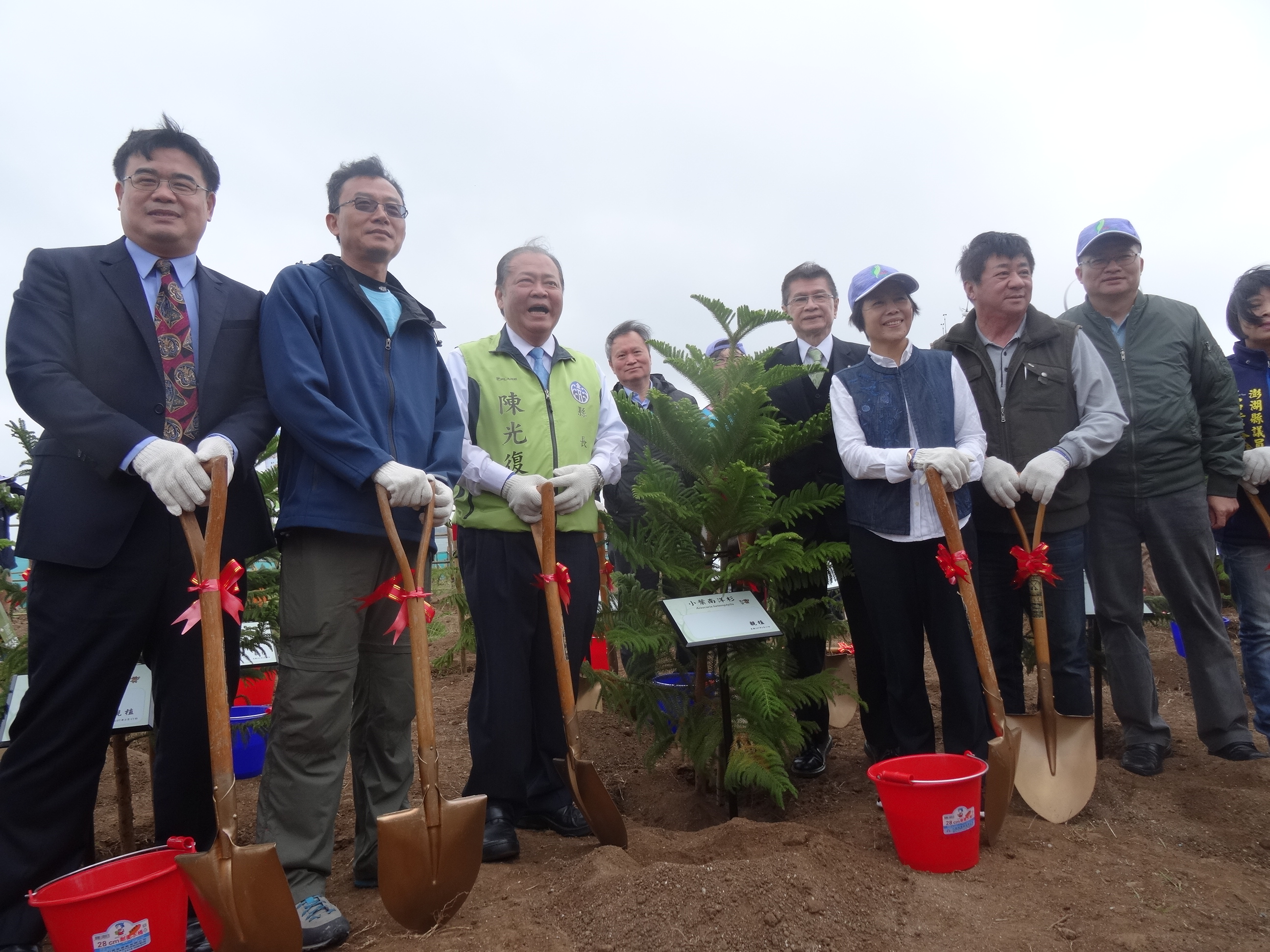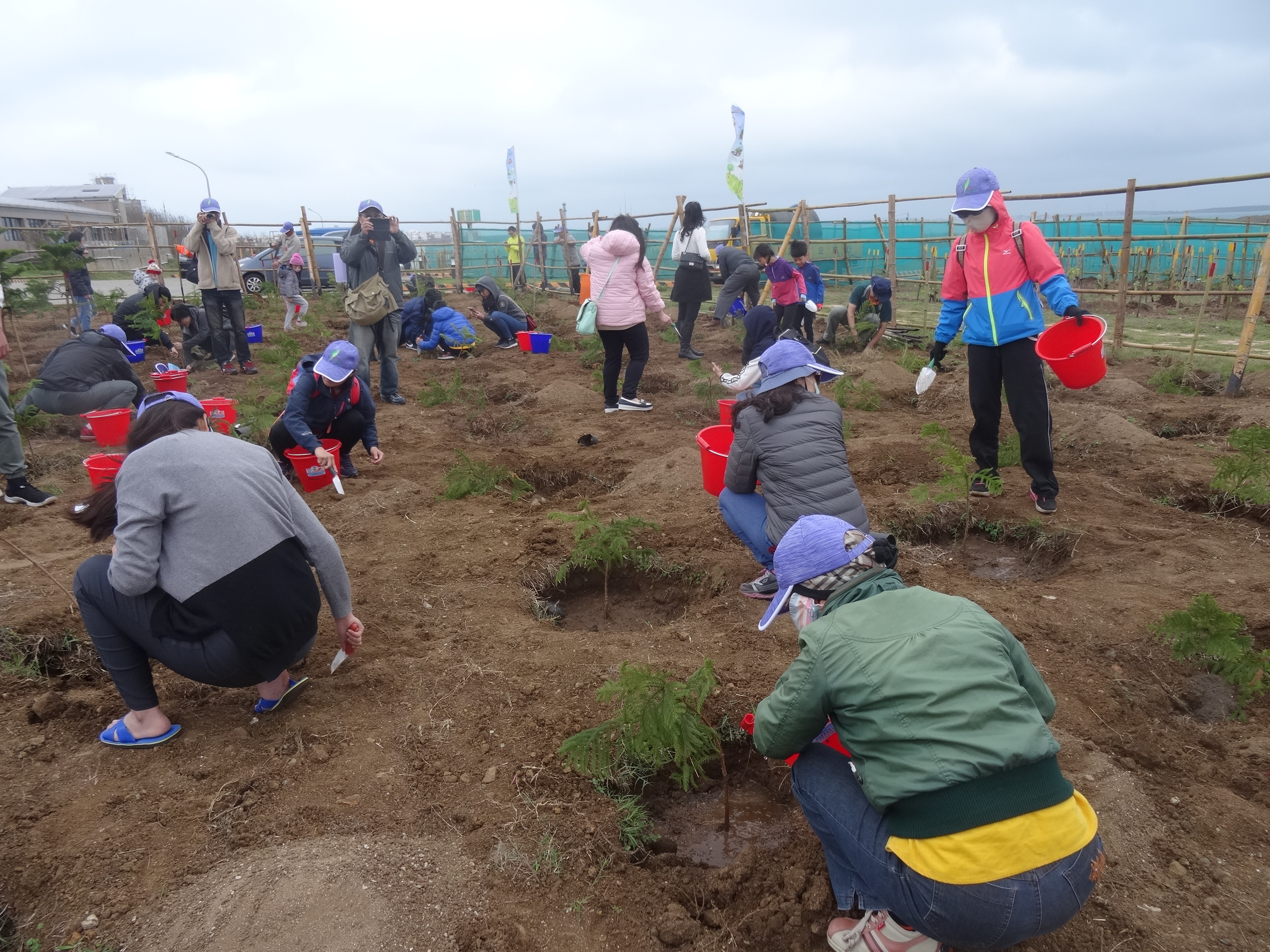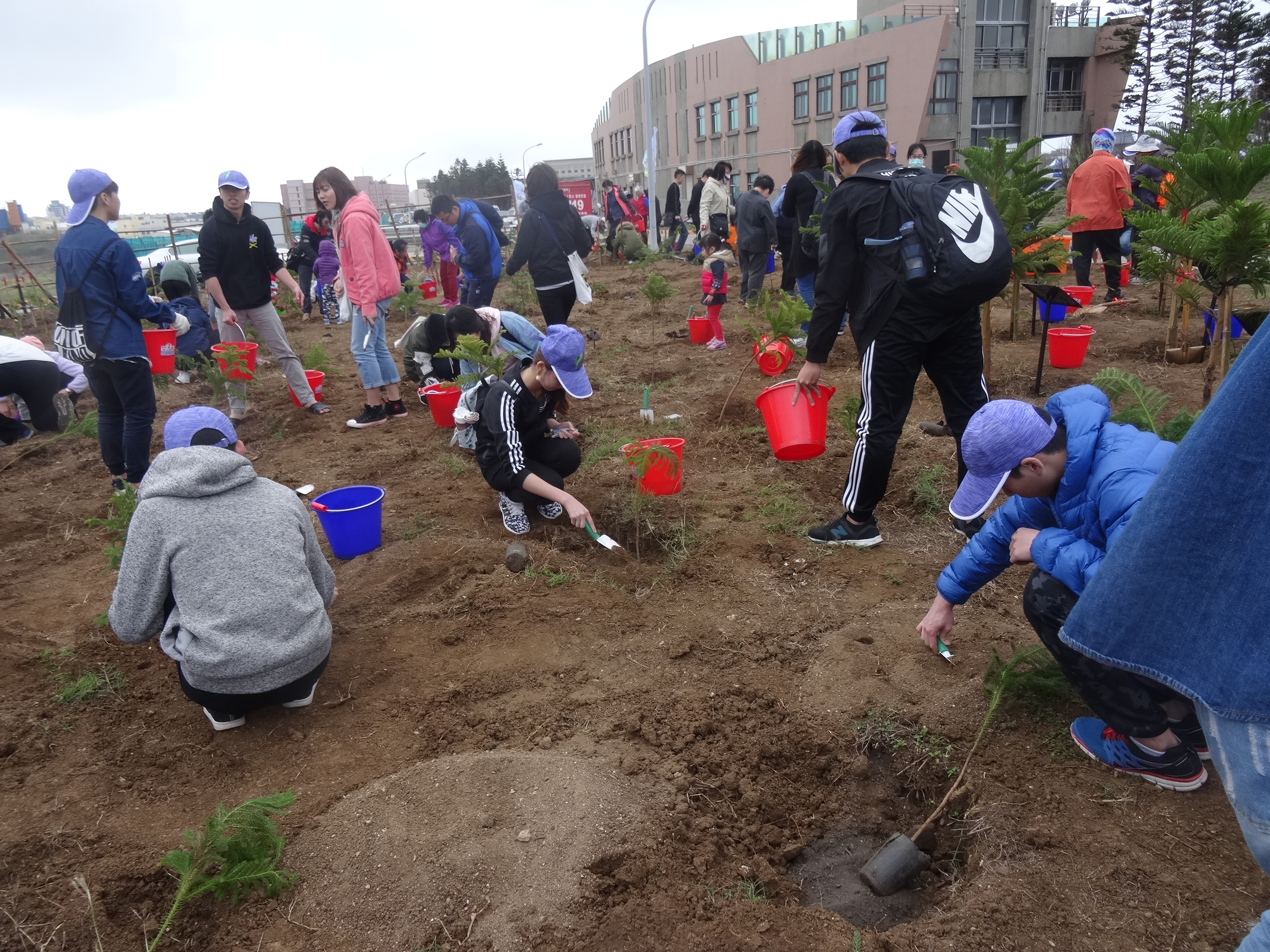 國立澎湖科技大學是離島地區第一所科技大學,為了營造校園綠帶及海岸複層林,屏東林區管理處與澎湖縣政府3月17日在澎湖科技大學共同舉辦的「再現台灣原生綠 共創澎湖零碳島」植樹活動,活動超過千人參與,種下小葉南洋杉、大葉欖仁、木麻黃、白水木、草海桐5種共11,770株樹苗,增加了1.33公頃的綠地。 林務局屏東林區管理處處長張偉顗說,今年植樹月主題「再現台灣原生綠」,就是希望透過執行國土綠網計畫,從中央山脈的保育軸,串聯淺山地區的東西向河川及生態造林綠帶,到海岸邊的海岸林及溼地,構築全方位台灣國土生態綠色網絡,恢復台灣原生動植物棲息環境。現在碳排放量增加是造成氣候變遷的重要因素,台灣二氧化碳排出量約270百萬公噸,高居世界第20位,而造林就是減碳最有效的方式之一。林務局從81~106年,在澎湖已完成造林及綠美化面積2,227公頃,再加上澎湖縣政府101~106年綠美化面積35公頃,總共完成2,260公頃左右的綠化面積,未來也會繼續在澎湖造林,增加碳吸存量,共創澎湖零碳島。在澎科大這個地方,林務局曾在94及96年植樹2.2公頃、17,540株,今天更要種下1.33公頃、11,770株的苗木,希望能把澎科大打造成一個優質的遊憩場地,及重要的漁業保安林。另外,今天準備8,500株的苗木要贈送民眾,希望大家領回家後能好好種下它,讓居住的環境更美好,最後並感謝澎科大和澎湖縣政府的協助,讓今天植樹活動圓滿成功。 陳光復縣長除了感謝林管處協助在澎湖種下了2,270公頃的林木外,並提到1棵10年生的林木所產生的樹蔭,相當於1台1噸冷氣所產生的降溫效益,這樣的效益對整個地球村來說都很重要,希望未來繼續植樹,共同打造澎湖2018年世界最美麗海灣。 劉陳昭玲議長表示,30年前澎科大的風沙很大,謝謝國軍及林務局澎湖造林工作隊長期對造林的貢獻,讓澎湖的環境、空氣都變好,也希望每位鄉親都能種1株樹,好好照顧它,共同改善澎湖環境。 澎科大翁進坪校長指出,他的目標第1是希望學生能考到各種執照3,000張,第2就是希望學校能綠化,第3是希望學校藝術化,打造綠化、藝術化、社區化的綠色森林校園,感謝縣政府及林務局的協助,讓校園的綠化目標提早達成,讓澎科大成為社區居民的後花園。 除了參與植樹的民眾外,法院、地檢署、國稅局及澎湖縣政府各局處等機關,也藉機向民眾宣導相關業務,各單位使出渾身數,小遊戲、有獎徵答等活動,讓攤位前湧現排隊的人潮,大家玩得不亦樂乎,除了種樹外,也對各機關的業務有所瞭解。 活動現場許多民眾都是全家動員,一起參加植樹活動,高先生一家5口,帶著2歲及4歲的小朋友第一次參加,家長表示希望透過植樹活動,讓小朋友體驗種樹的樂趣,並可以為環境盡一份心力。黃姓一家4口則是參加過約3次的植樹活動,從小朋友2歲就開始植樹,黃小妹興奮的表示她最愛植樹及挖土。另外,也有一家3代的洪姓一家人,在縣政府官網看到消息後,第1次報名參加,非常期待等一下可以去種樹。 除了植樹之外,現場林務局和澎湖縣政府也共同準備了小葉南洋杉5,000株、變葉木1,000株,羅漢松、矮仙丹、日本女貞、金露華、七里香各500株,共8,500株的苗木贈送給參加的民眾,希望大家一起種下林木,「再現台灣原生綠 共創澎湖零碳島」,使森林綠地與藍天碧海相呼應,讓今年來參加世界最美麗海灣組織國際年會的160多個國家的訪客們,都能看到澎湖最美麗的海岸線。