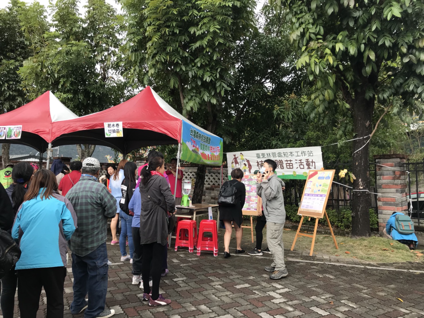 臺東林管處知本工作站3月21日上午9時30分於站前停車場舉辦今(107)年度第二場贈苗活動,一早8:00不到在地鄉親就扶老攜幼帶著發票及廢電池到場排隊等候兌換樹苗。活動前由知本工作站吳主任文雄對久候的鄉親先致詞歡迎及感謝大家想為環境綠化貢獻的心力,並邀約由利嘉社區林村長肯毅帶領族人以歡樂山地舞熱鬧展開活動序幕。 贈苗在9點30分正式開始,站前廣場擠進了約200人次的鄉親,民眾自動自發井然有序的排隊,贈苗活動除了民眾喜歡的花卉、喬灌木及香草植物1300餘株外,現場還備有茶水及專人解說苗木種植方法,讓參與贈苗活動的民眾除領到自己喜愛苗木外,也了解回家後如何培育這棵小苗,讓它茁壯成長成美化家園、遮風避雨的大樹。 今日活動在上午10:00不到就圓滿結束,在當地民眾熱情參與下,苗木花卉全數兌換完畢。臺東林管處期望透過每年別出心裁的贈苗活動與民眾一起「植樹護林、守護台灣」,同時也能增加家園綠美化空間,營造綠意盎然的環境,提供居民更美好的生活品質。