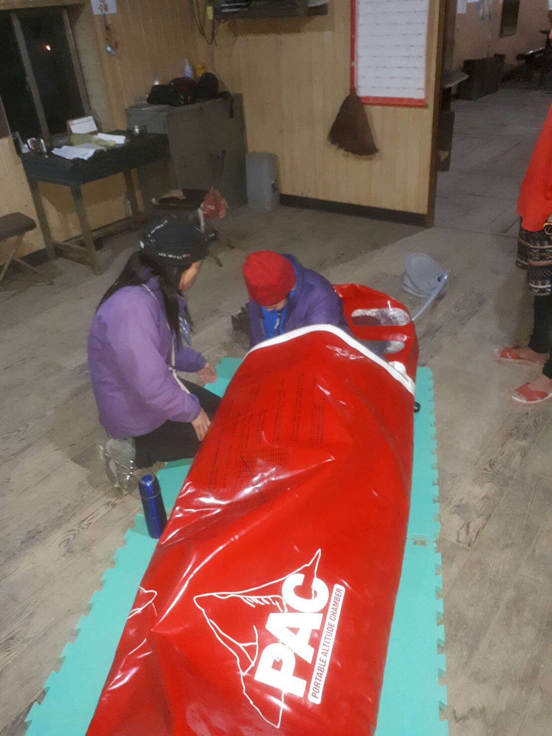 新竹林區管理處九九山莊人員范世賢,昨日(3月28日下午4時50分)接獲通報,有台中游姓山友攀登大霸尖山,於大霸尖山登山步道約6公里途中,疑似發生高山症情形,無法行走,請求協助。范員立即前往將患者背負至九九山莊,並以攜帶型加壓袋(PAC)實施2次減壓,減輕患者高山不適症狀。並於今日(3月29日上午8時30分)由空勤總隊調派黑鷹直升機後送就醫。