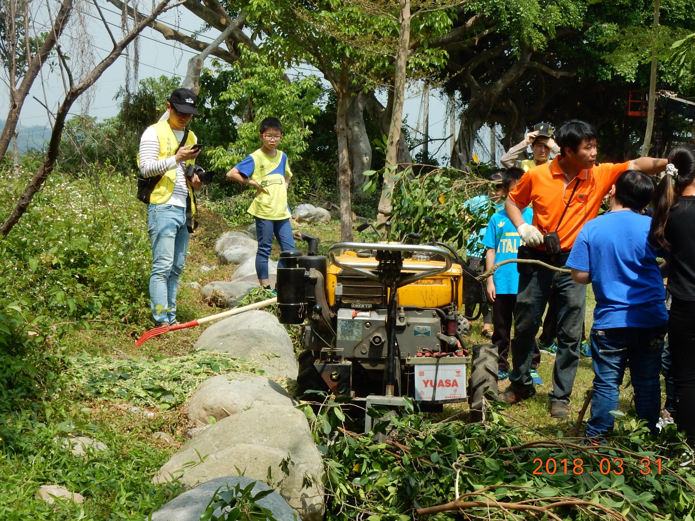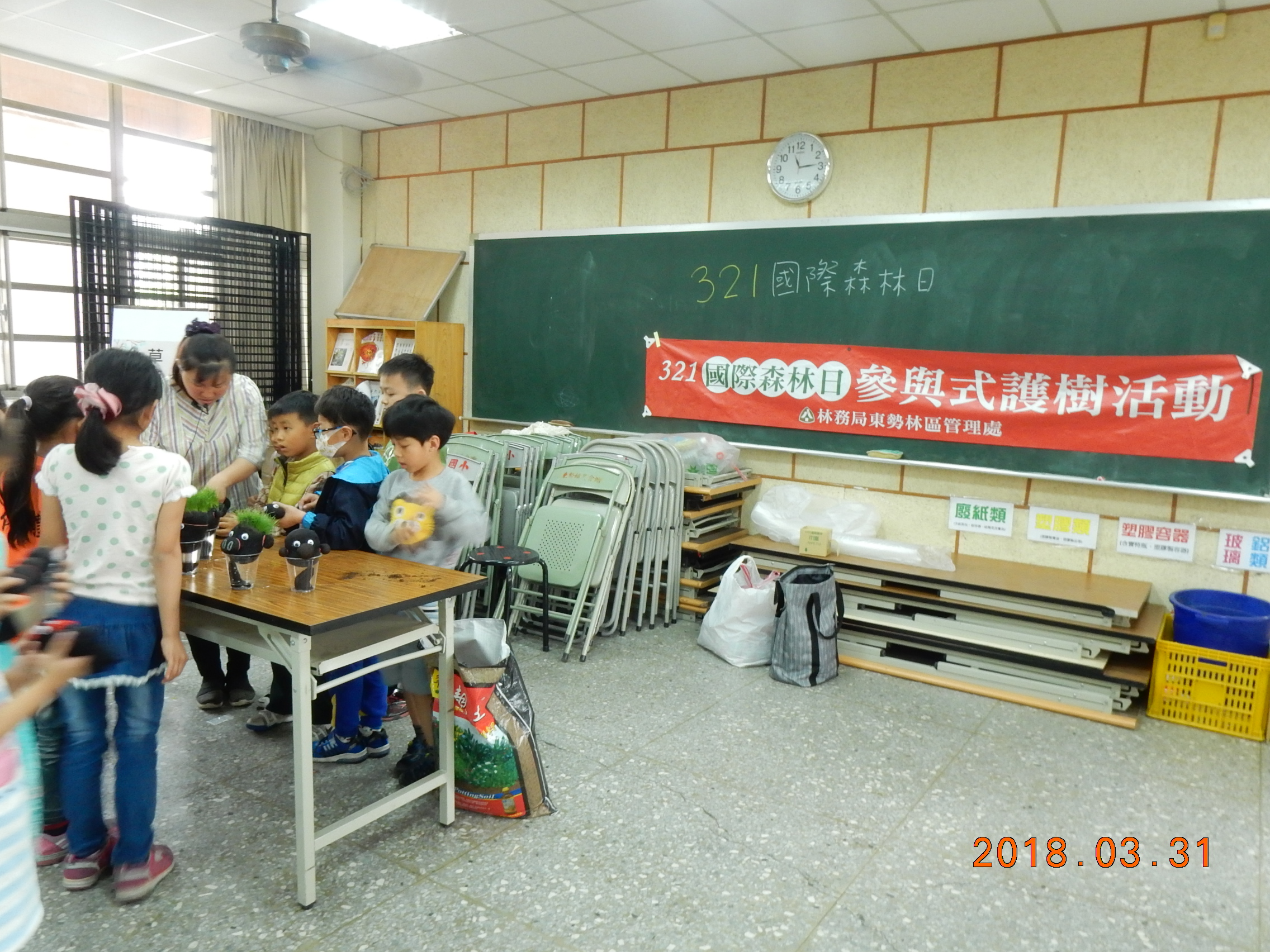 林務局東勢林區管理處於107年3月31日(星期六)臺中市東勢區新盛國民小學辦理「107年度321國際森林日護樹活動」,在四百餘位學校師生、家長與外賓的熱情參與下圓滿結束,培養護樹小尖兵。 東勢林區管理處處長蕭崇仁表示透過參與式護樹行動,藉由尋找校園樹木現況問題,帶領新盛國小大、小朋友發現樹木管理缺失,經由七星環境綠化基金會專業講師說明及改善示範,有助於校園樹木管理觀念的落實;並利用校園現地殘留若干枝條,讓小朋友協助使用枝葉粉碎機具,並將粉碎物覆蓋於校園周邊空地,營造昆蟲生態棲息環境,以豐富校園生態。另帶領學童分組製作草頭娃娃栽培,利用栽培介質混合種子,包裹浸潤後令其自然發芽,可觀察發芽生長狀態,寓教於樂。 東勢林區管理處藉由護樹活動帶領新盛國小師生一起改善校園樹木生長狀況,讓知識翻轉活用,實踐護樹教育理念。活動尾聲加碼贈送杜鵑及桂花共計400株苗木,近百位民眾踴躍捐發票換苗木,護樹綠美化兼公益,活動圓滿成功。
