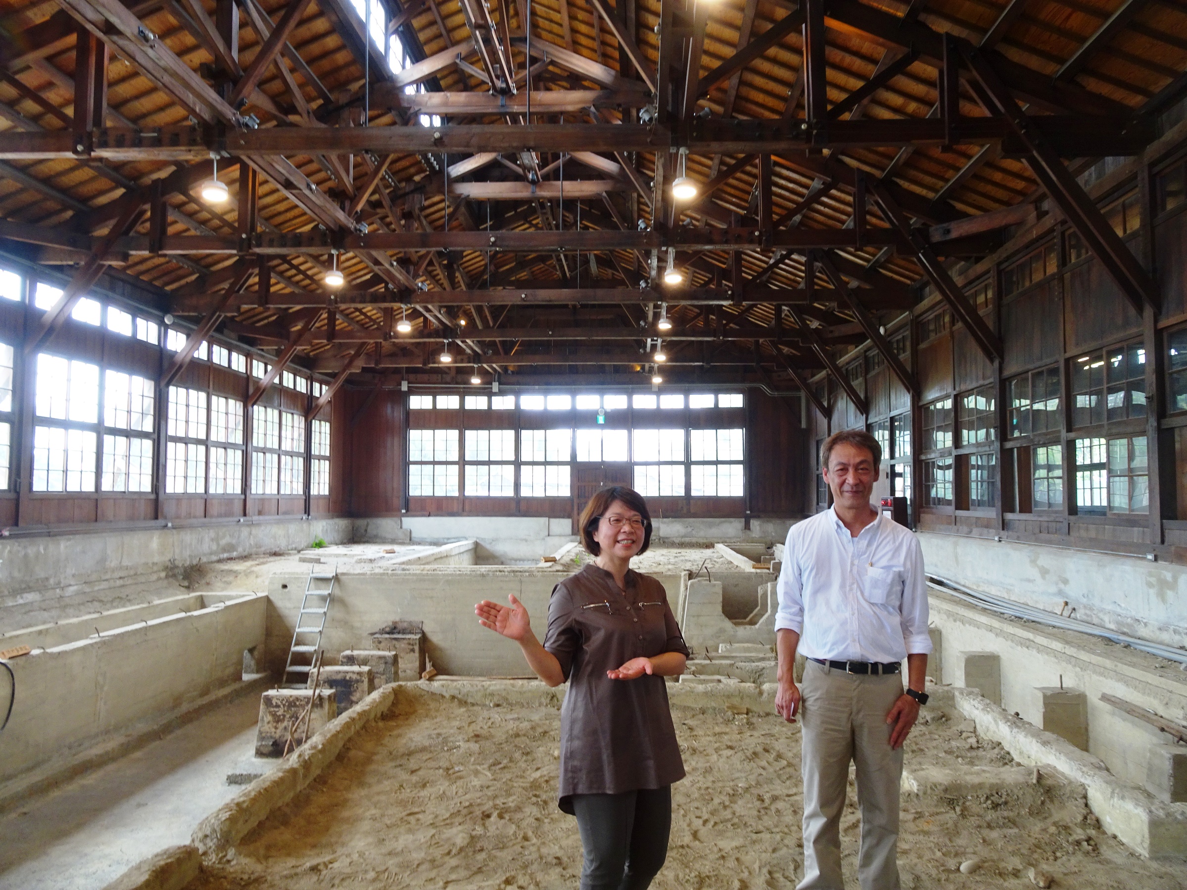 1913年興建完成的嘉義製材所,在阿里山林業開發中扮演木材集散及加工地重要角色,第一代嘉義製材工場1941年地震損毀,1942年於基地東北方興建了大跨距木構造製材工場。2016年4月完成整修, 12月賡續再利用工程,於開工整備時,依據1945年繪製內部配置圖的數條虛線、現場地板龜裂,及文獻記載「木造平屋建地下動力設備」,大膽假設地底下應有掩埋遺構,進行金屬探勘、人工試掘,果然發現極其珍貴的林業文化遺址,讓底藏半世紀的地下動力遺構重現,觸發阿里山林業文化新時代。