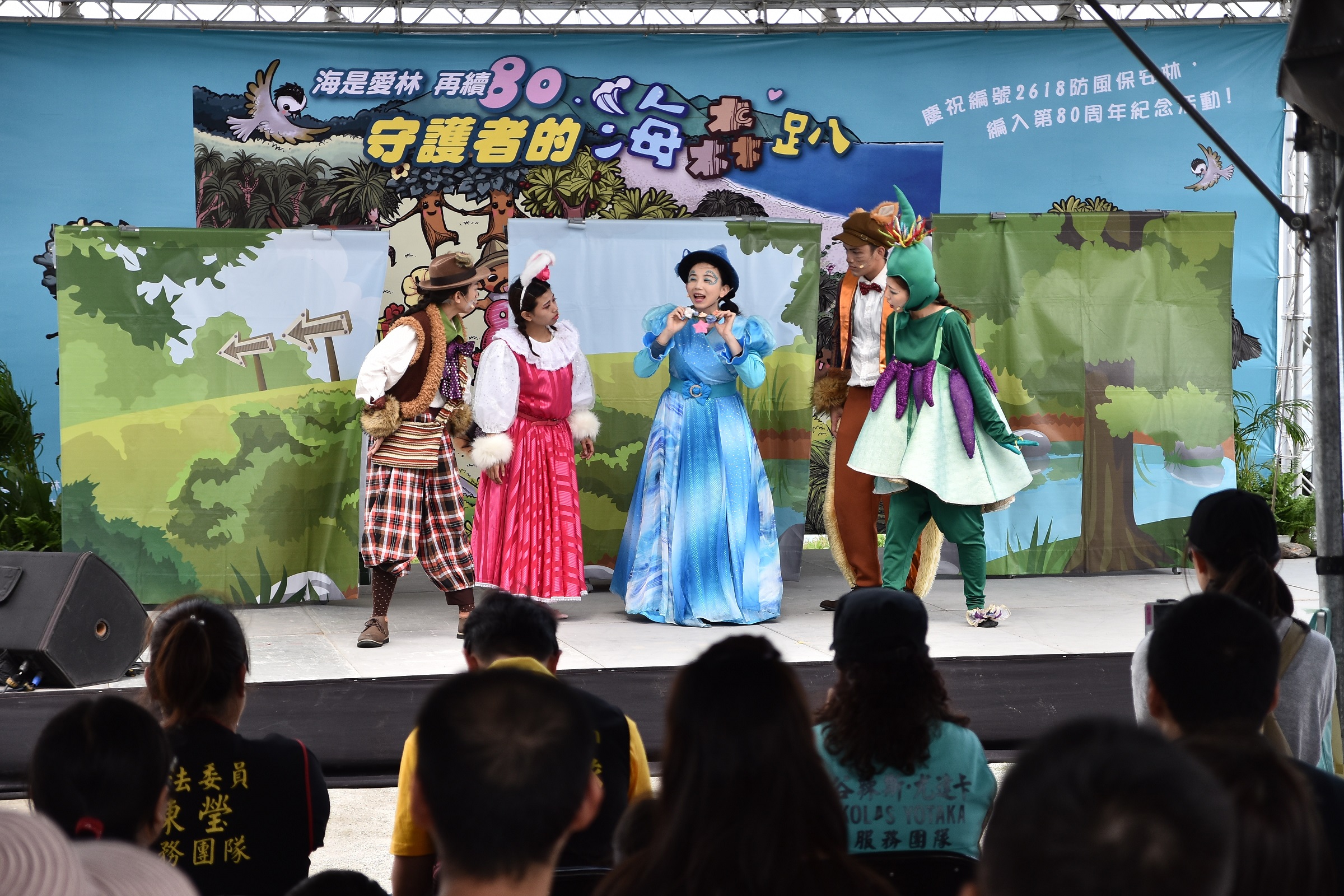 林務局花蓮林區管理處本日(6)於七星潭北側編號2618號防風保安林旁的德燕濱海植物園區舉辦「守護者的海森趴 海是愛林 再續80」系列活動,許多關心海岸保安林的貴賓都到場共同參與,包括蕭美琴立委、徐榛蔚立委服務處辦公室主任張治華、陳瑩立委辦公室執行長林一郎、谷辣斯.尤達卡立委服務處主任陳秀蘭、高路.以用立委服務處助理莊建葳、花蓮縣政府秘書柏江生、水保局花蓮分局副分局長郭瑞民、東華大學教授戴興盛及李光中、新城鄉國中小校長,以及黑潮海洋文教基金會、地球公民基金會、幸福193聯盟、七星潭曼波魚發展協會、七星潭社區發展協會等民間團體,現場吸引近千人一起同樂,場面吸睛又歡樂! 活動由北埔國小透過崇敬大自然的噶瑪蘭族舞蹈揭開序幕,接著由蘋果劇團帶來壓軸精彩歌舞劇,共同譜出發生在海岸保安林的故事,林務局朱懿千科長及楊瑞芬處長更一同化身劇中角色,期許藉由本活動傳遞海岸保安林的重要性以及環境問題的迫切性,楊處長表示,未來將致力搭建公私協力平台,讓海岸保安林獲得更全面的保護;立委蕭美琴也肯定今天的活動讓更多人了解海岸保安林的功能,未來這片森林會繼續提供民眾安心安全安康的生活環境。七星潭一帶海岸保安林守護在地民眾滿80年,未來換我們成為海岸保安林的守護者! 活動中壓軸演出的蘋果劇團運用海岸保安林的特色量身打造角色,馬鞍藤姊姊、鼴鼠阿姨攜手演出「嬌滴滴與髒兮兮-海岸林版本」,戲劇中將生活與環境議題結合,並與台下觀眾熱烈互動,在輕鬆有趣的氛圍下聆聽海岸林的故事。現場參與民眾表示:「從小住在花蓮,從來都不知道原來這片森林肩負這麼重要的任務,也遇到這麼棘手的難題!」海灘上則由藝術家帶領民眾利用全自然的素材進行創作,傳遞對海岸林的祝福與感謝,取之環境的素材也將留在此地還給大自然;也有不少民眾沿著木棧道跟隨故事劇情親身走入海岸林,留下深刻印象。此外話題性最高的海森變裝秀也讓現場民眾發揮無限的想像力,裝扮成各式海岸林動植物,在舞台上表達出對海岸保安林的印象。 活動在北濱國小烏克麗麗與孩童的歌聲中圓滿結束。花蓮林區管理處也表示,2618防風保安林不僅是生物繁衍存續的場域,也是守護在地居民防風砂的屏障,更是守護海洋資源生生不息的重要連結。花蓮林區管理處一直以來透過公部門和在地民間團體之間的合作認養,進行花蓮縣境內海岸林的巡視、監測和環境管理,如在地的花蓮縣七星潭社區發展協會、花蓮縣七星潭曼波魚發展協會、黑潮海洋文教基金會等組織也都在本次活動中共襄盛舉,而今年暑假起也將開啟海岸保安林的系列環境教育課程,期盼更多人一起將守護海岸保安林的信念延續下去。 精彩花絮將陸續刊登於花蓮林區管理處官方臉書粉絲專頁,並在5月16日展開海森變裝秀人氣票選活動。詳情敬請鎖定「林務局花蓮林區管理處」臉書粉絲專頁(https://www.facebook.com/hualien.forest.gov.tw/)。