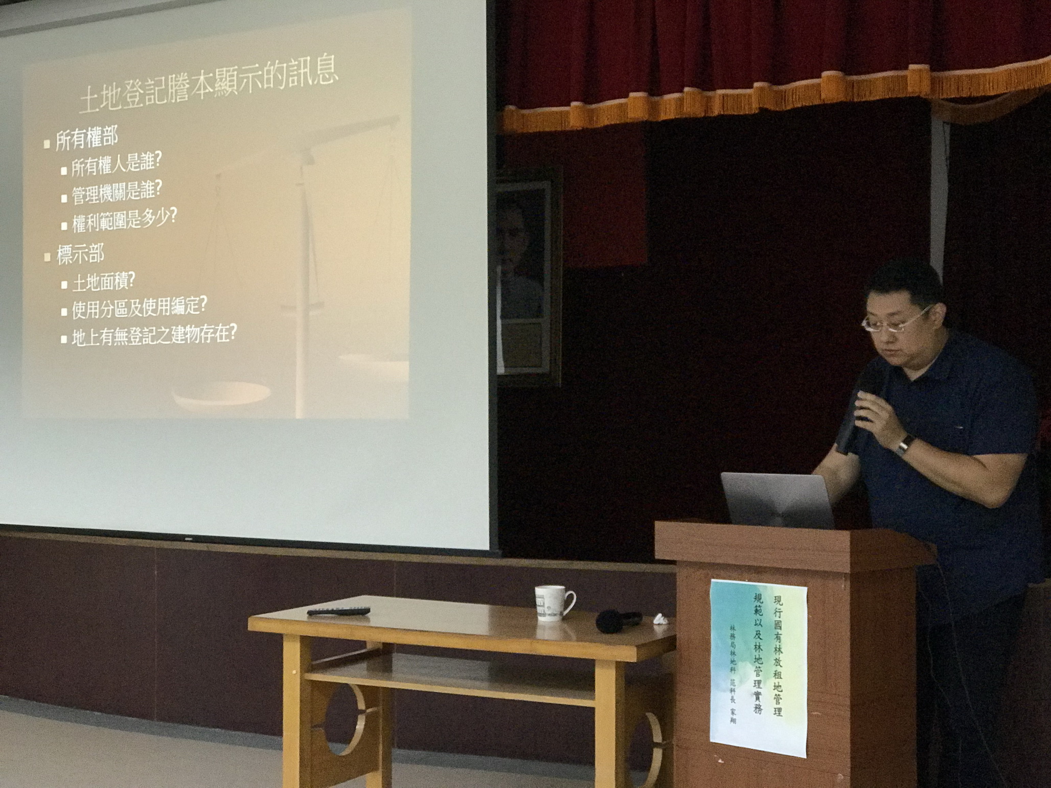 當日講授內容除引述現行國有林出租造林地管理要點、民法繼承篇、臺灣地區與大陸地區人民關係條例等相關法令規定;講師另外引用電影大法師內人物角色關係,讓同仁動動腦,課程生動活潑、堂上討論不斷反應熱烈。