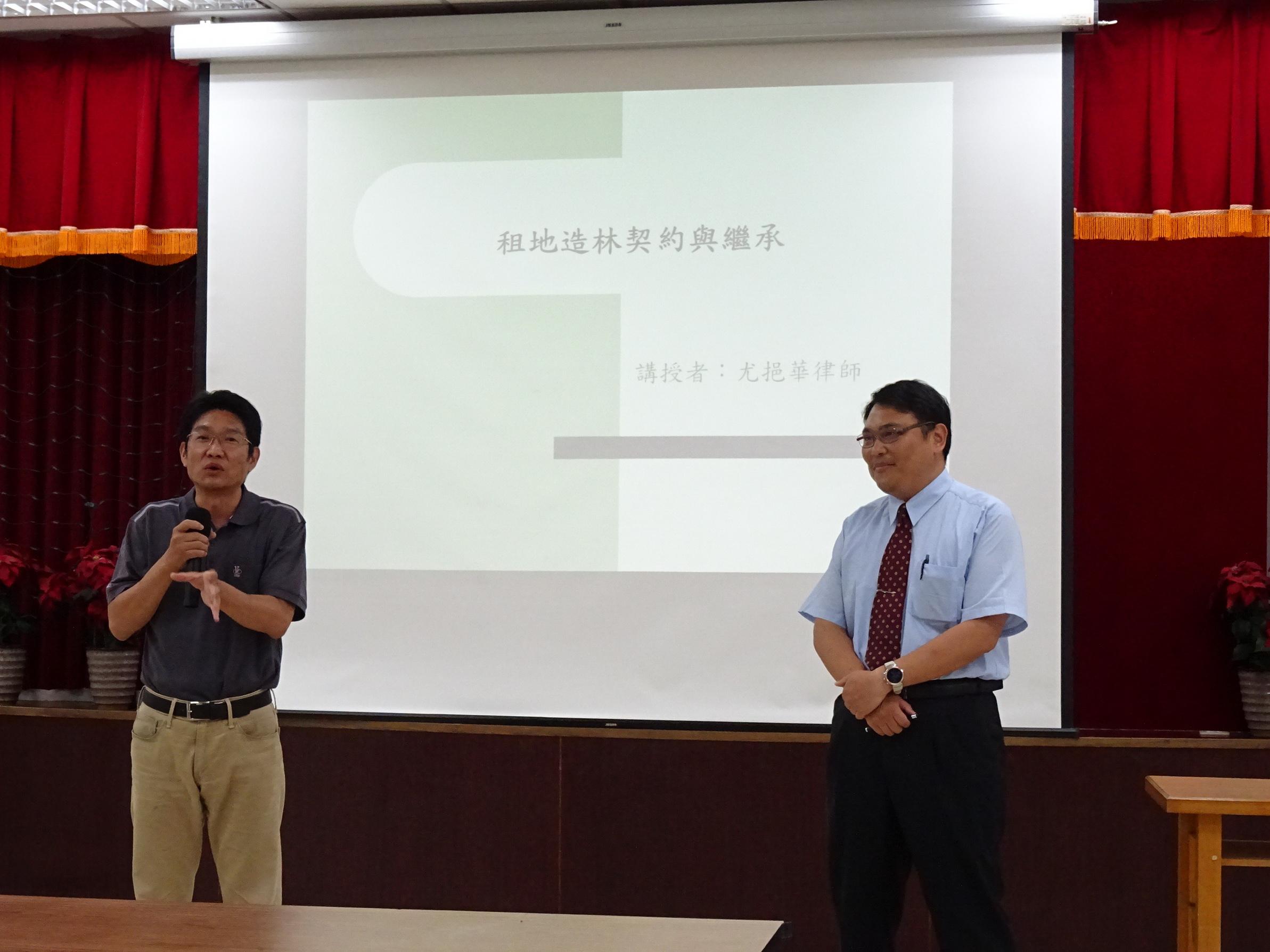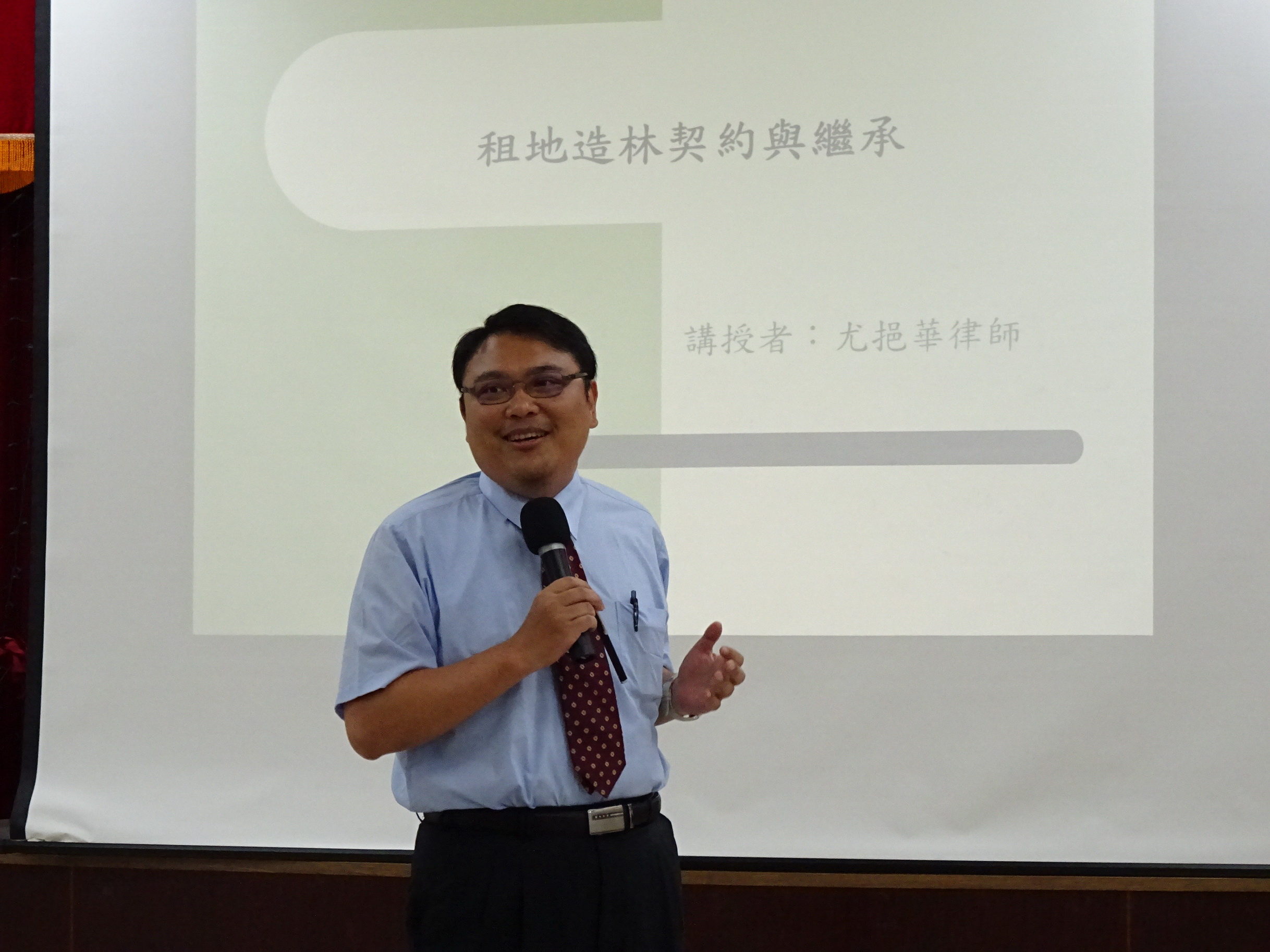 基於林野巡護皆側重第一線巡視人員,他們也是林務局與林農溝通的第一線傳聲筒,特邀請林務局長官以及在法界執業24年及學界任教也近20年的尤挹華律師,於107年5月9日親臨林管處講授林地管理實務課程,以及民法繼承篇如何運用在林地租約管理上。期望同仁有更精進的法律與實務知識認知,好為廣大林農服務。